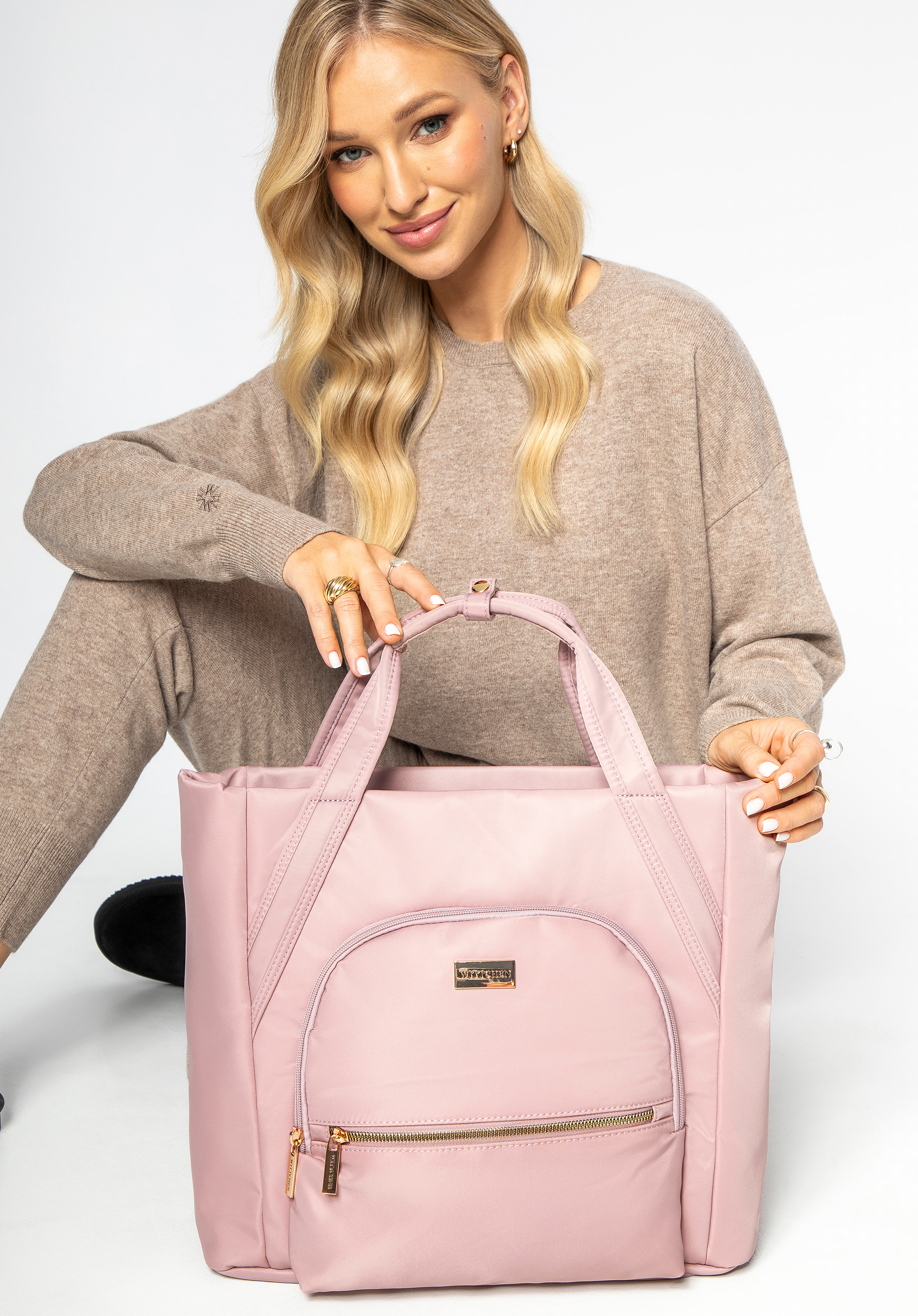 - Hordozási kényelem: A levehető, állítható logóval ellátott pánt az Ön igényeihez igazítja a táskát, a két fogantyú pedig kényelmes kézben vagy csuklón való hordozást tesz lehetővé.