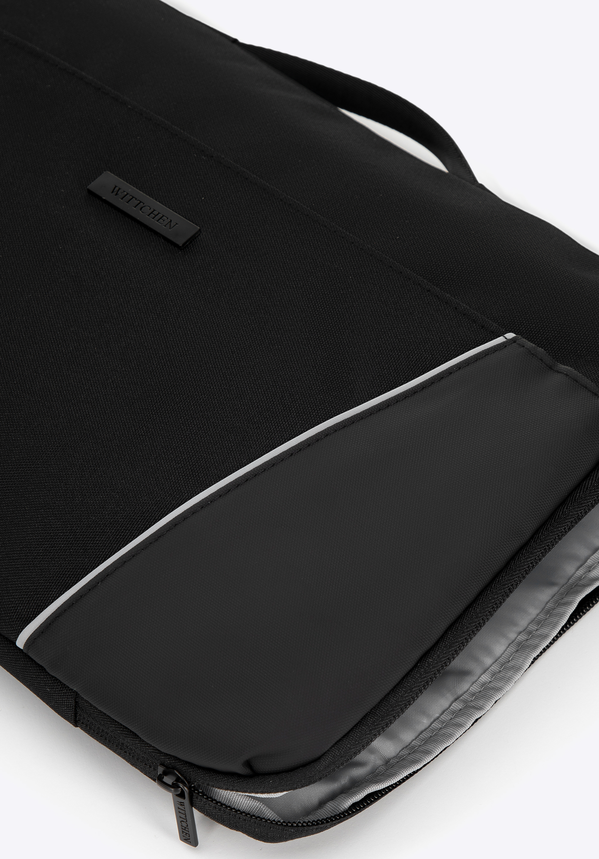 - Belső : A tok tágas fő rekesszel rendelkezik, amelyet cipzár rögzít.