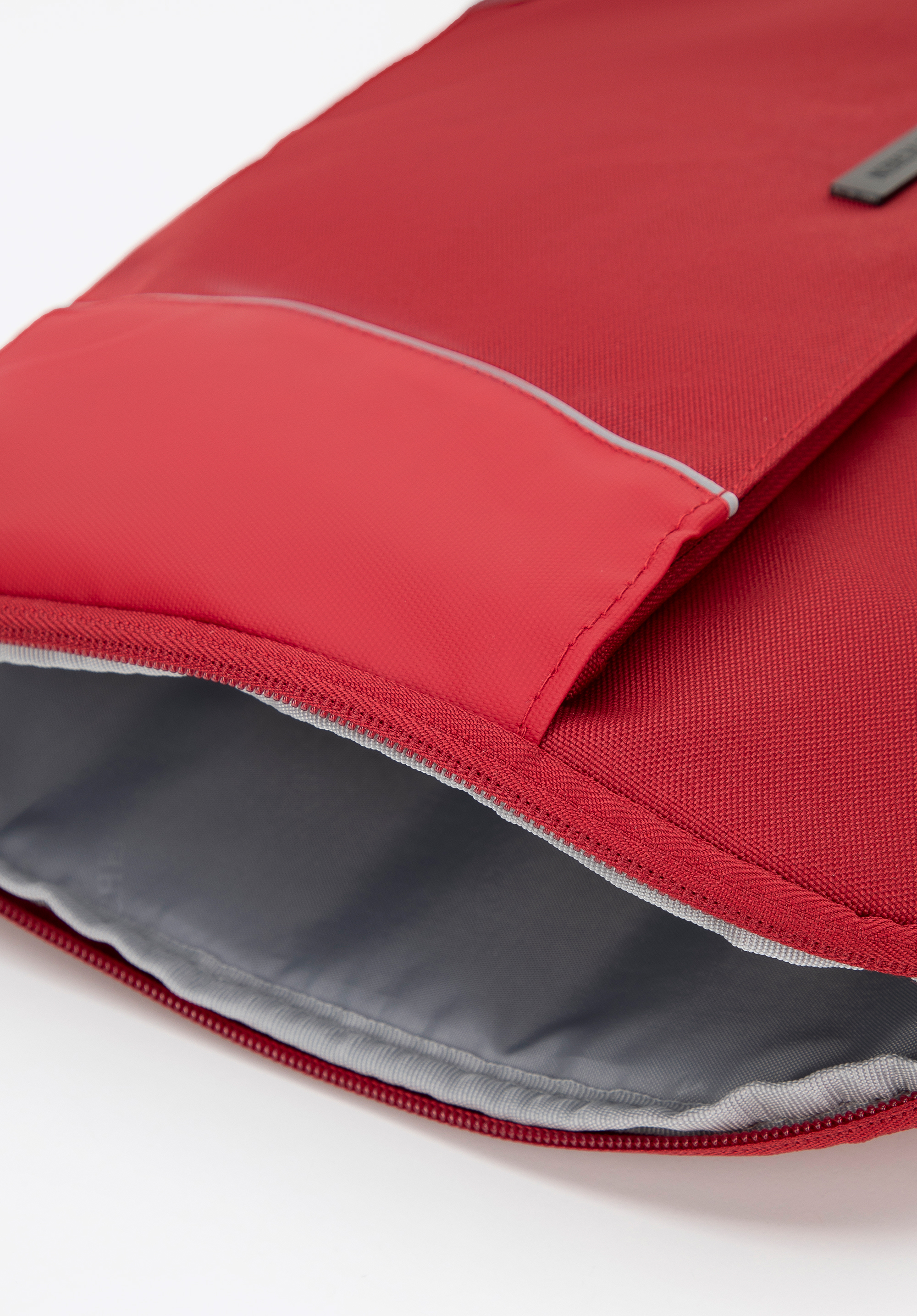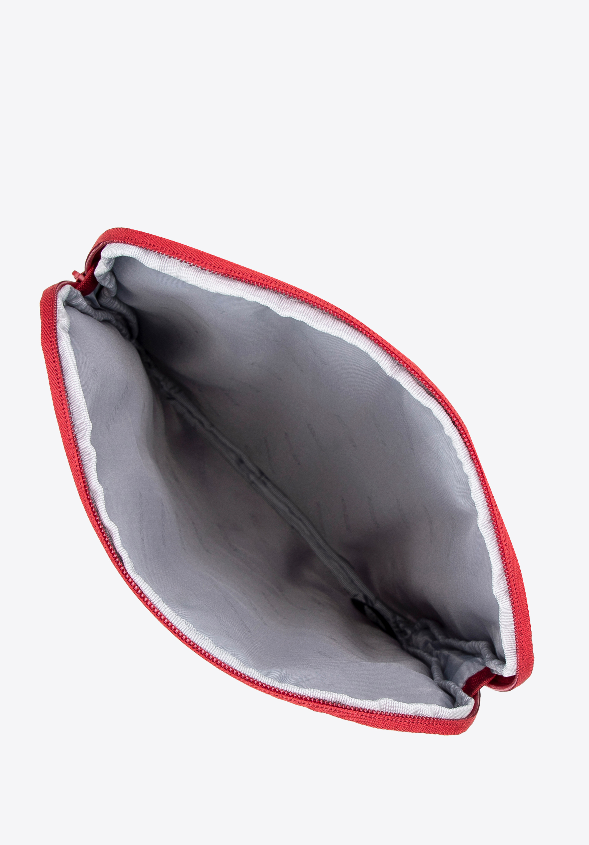 - Belső : A tok tágas fő rekesszel rendelkezik, amelyet cipzár rögzít.