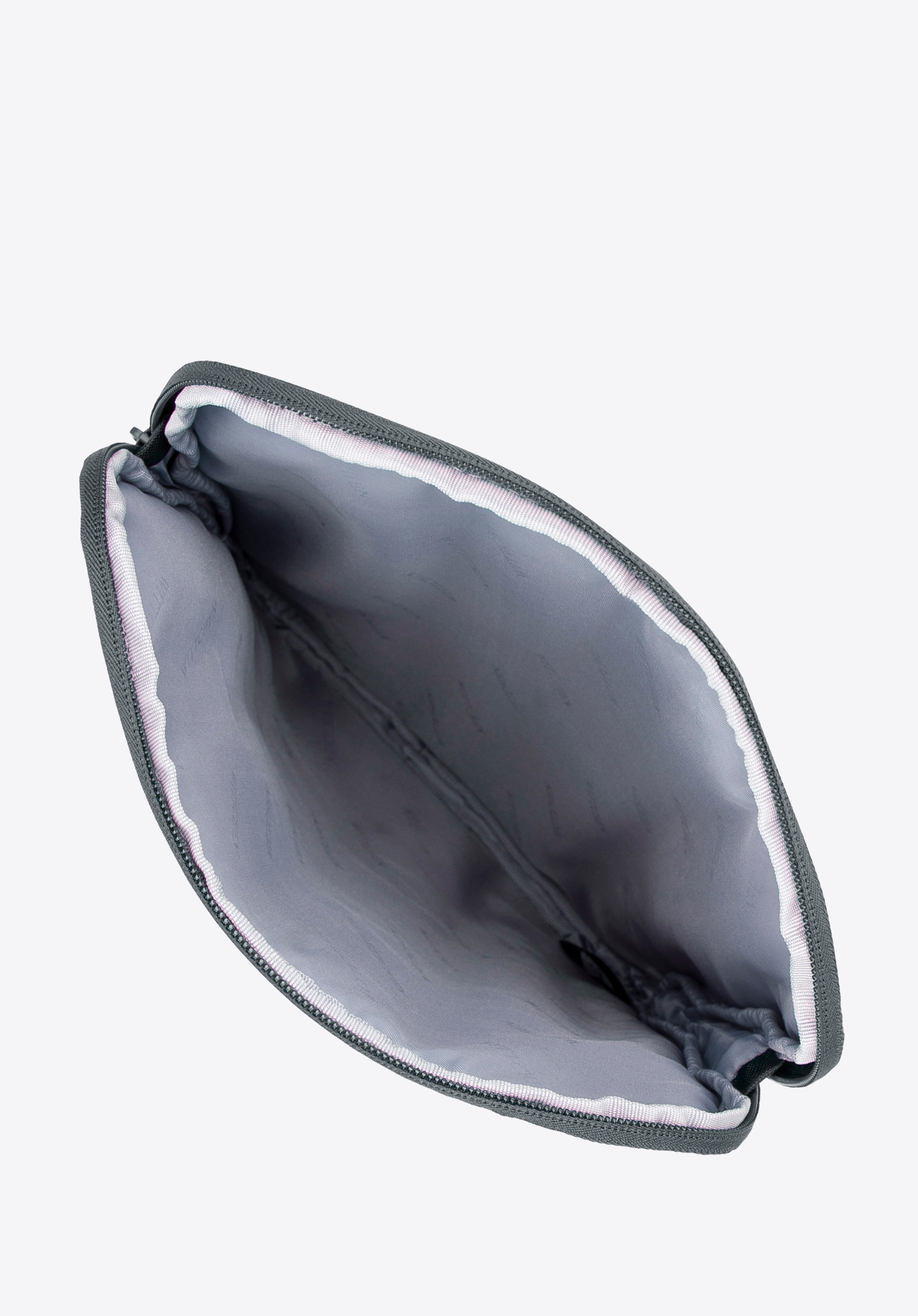 - Belső : A tok tágas fő rekesszel rendelkezik, amelyet cipzár rögzít.