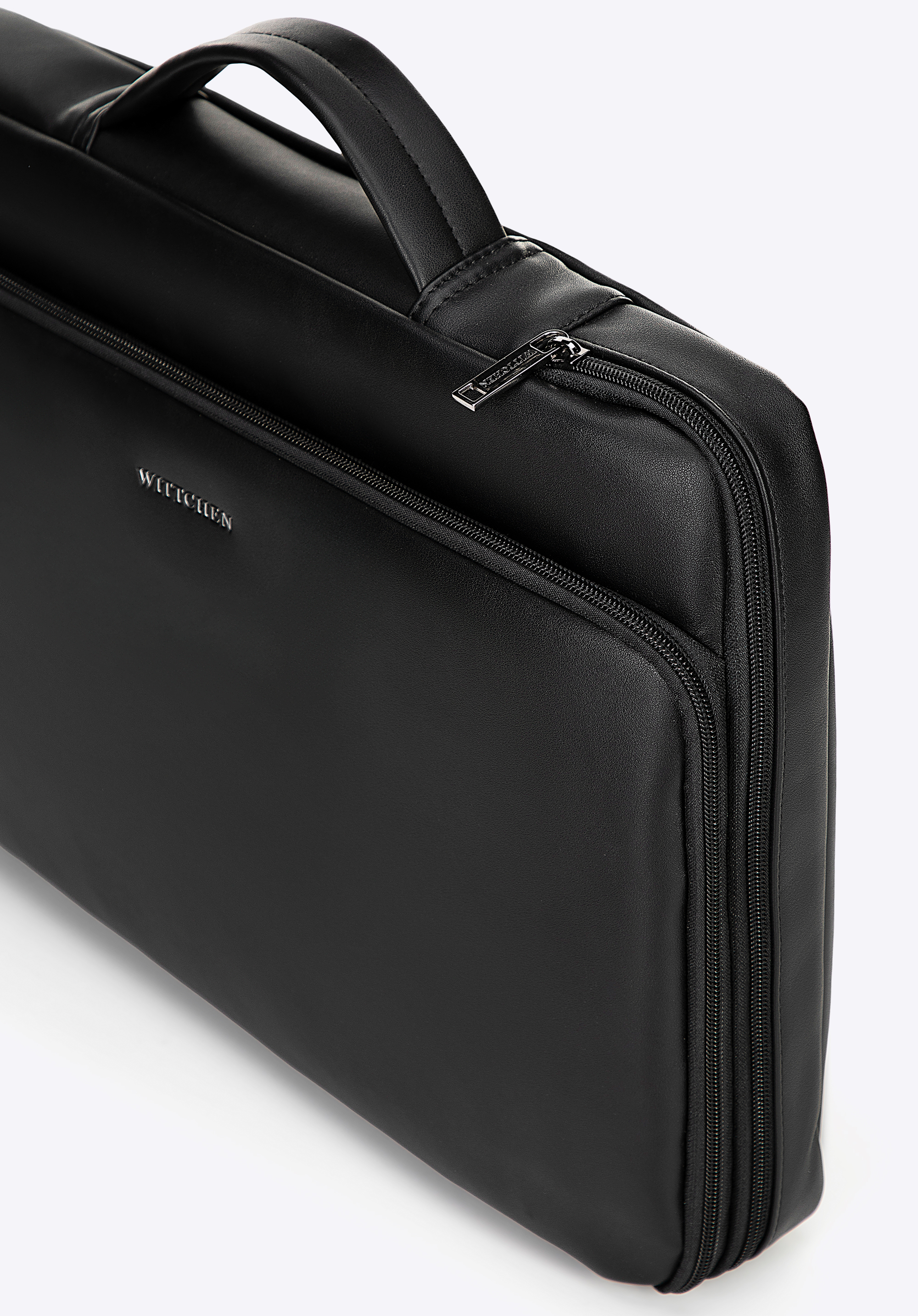Minimalista forma, átgondolt részletek és mindennapi kényelem – ezt a laptoptáskát azok számára tervezték, akik a praktikum és az elegancia tökéletes keverékét keresik. Ökobőrből készült és praktikus oldalsó cipzárral van rögzítve, így kivételesen jól teljesít a zsúfolt napi rutinban. Az előlapon finom márkalogó található, a további cipzáras zseb pedig kéznél tartja a legfontosabb dolgokat. A tágas belső térben akár 24 × 35 cm-es (16") laptopok is elférnek, így biztonságos és stílusos tárolást biztosítanak.