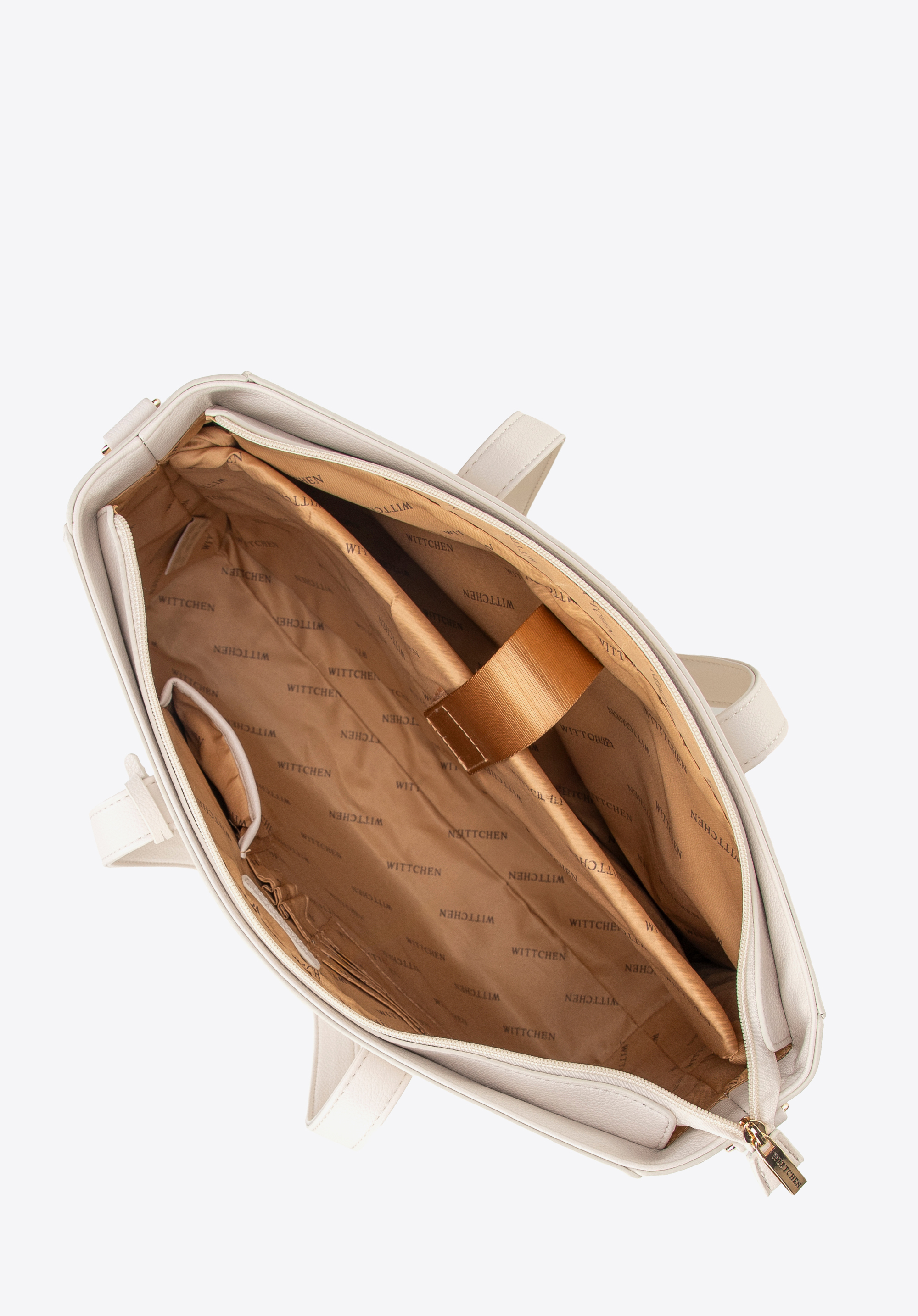 16"-os laptoptáskánk tökéletesen ötvözi a klasszikus dizájnt a nőies eleganciával. Műbőrből készült, kifinomult sziluettel és finom díszítésekkel, például a fogantyún lévő levehető bojttal büszkélkedhet. A cipzáras rekesz funkcionális belső térben egy párnázott zsebbel rendelkezik egy 16" laptop (23 × 38 cm) számára, valamint rekeszekkel az apró tárgyak és dokumentumok számára - minden a helyén, mindig kéznél van.