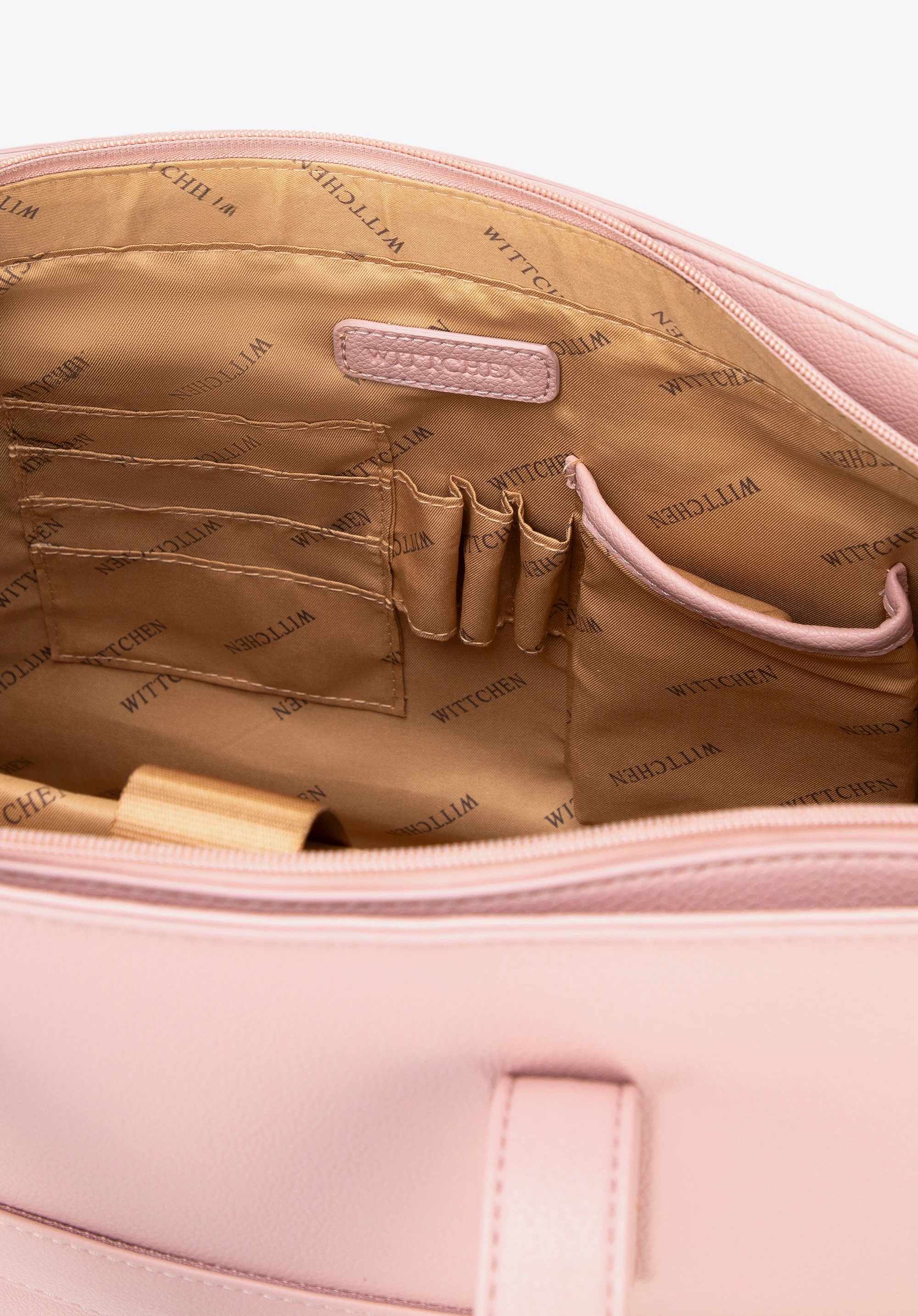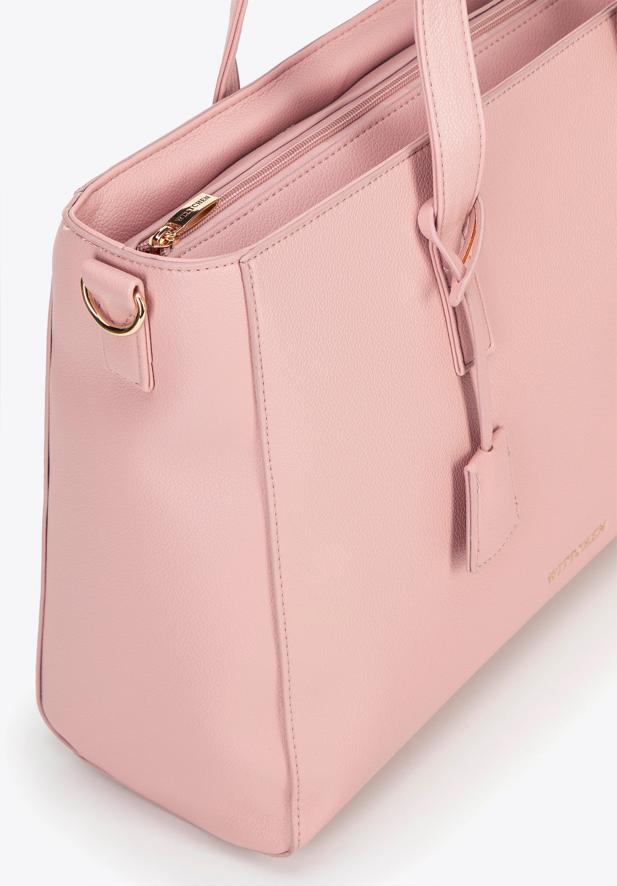 16"-os laptoptáskánk tökéletesen ötvözi a klasszikus dizájnt a nőies eleganciával. Műbőrből készült, kifinomult sziluettel és finom díszítésekkel, például a fogantyún lévő levehető bojttal büszkélkedhet. A cipzáras rekesz funkcionális belső térben egy párnázott zsebbel rendelkezik egy 16" laptop (23 × 38 cm) számára, valamint rekeszekkel az apró tárgyak és dokumentumok számára - minden a helyén, mindig kéznél van.