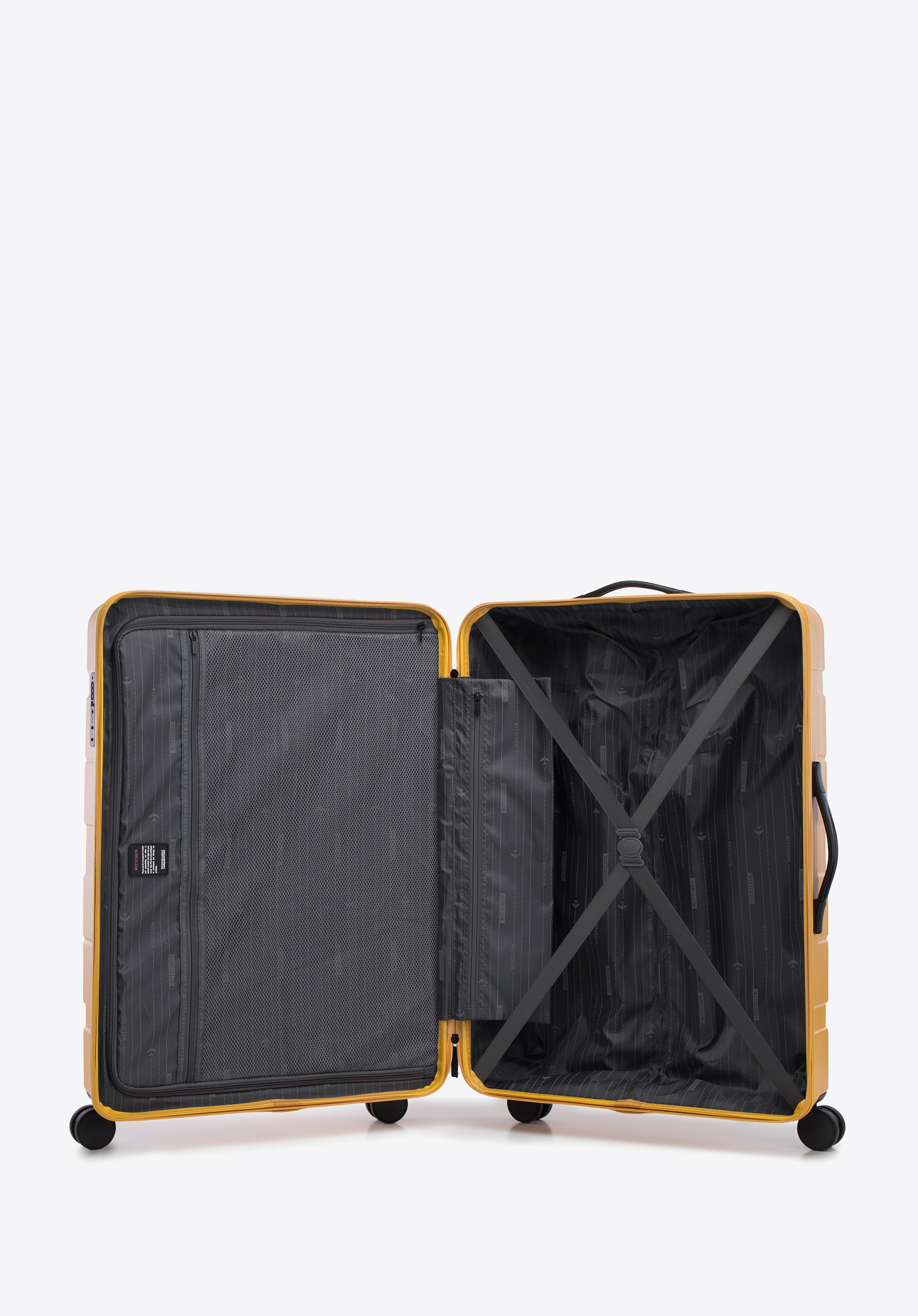 - teleszkópos, visszahúzható kerékfogantyú és rugalmas gumi emelő fogantyú;