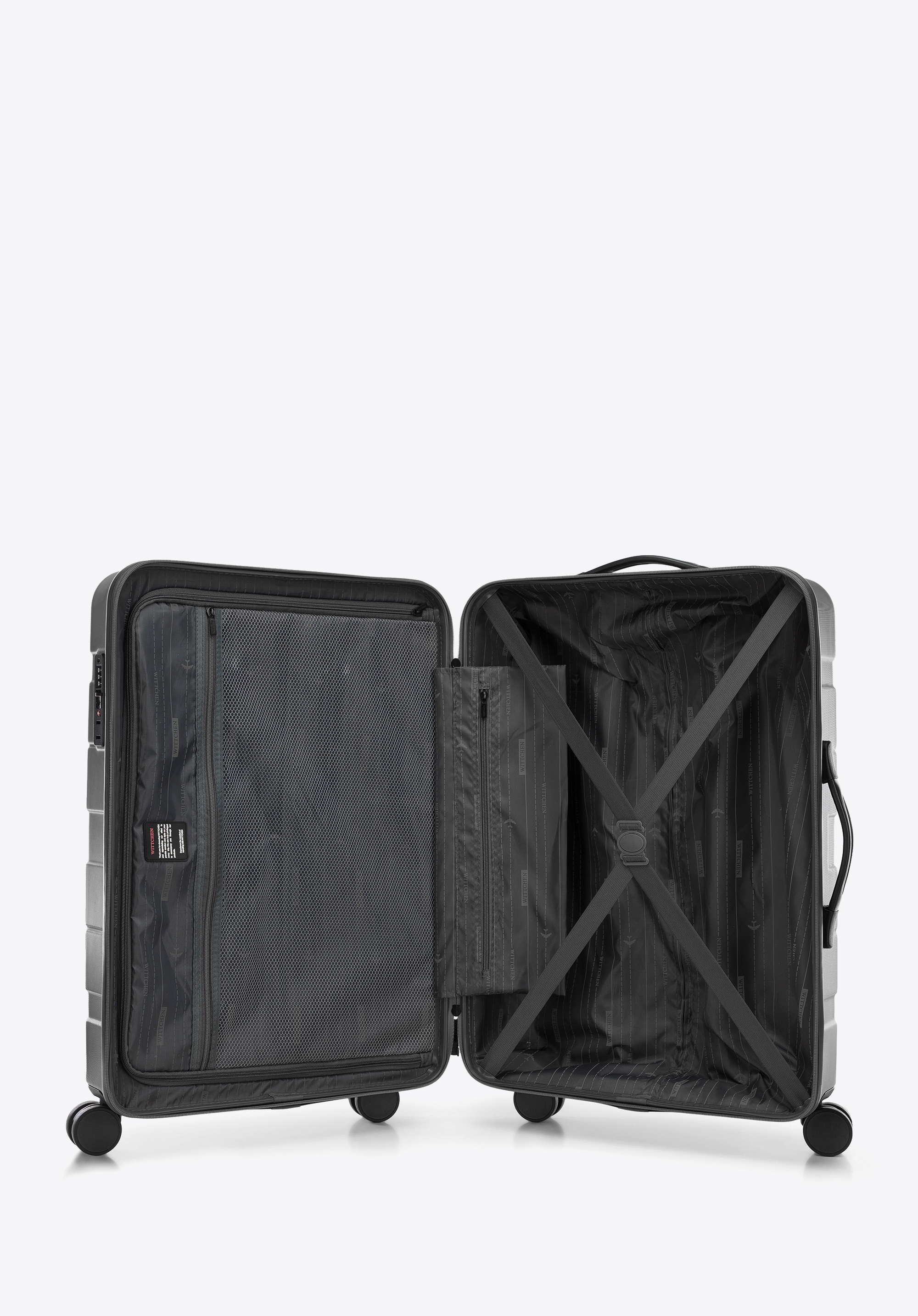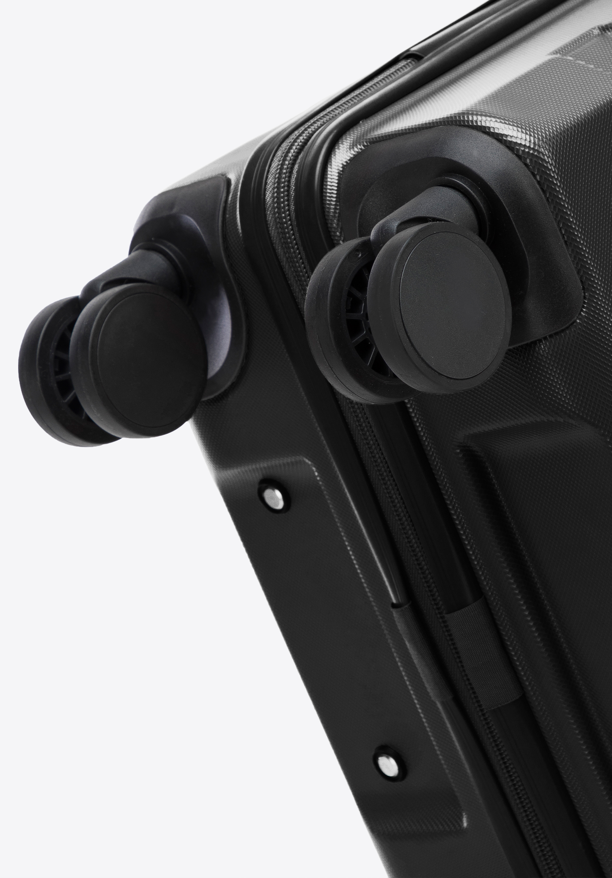 Ez a készlet tökéletes választás mindazok számára, akik nem csak praktikus, hanem stílusos utazási megoldást is keresnek. Biztosítja a megbízhatóságot és az eleganciát , így kiváló társ minden utazó számára. A három különböző méretű bőrönd mellett egy elegáns kozmetikai tokot is tartalmaz, amely ideális a kéznél tartani kívánt kisebb tárgyak számára. Minden bőrönd négy dupla kerékkel és egy teleszkópos fogantyúval van felszerelve zárral , ami garantálja a sima és könnyű manőverezést a rakománytól függetlenül. Az ergonomikus gumi fogantyúk kényelmes szállítást biztosítanak , a vízszintes csíkok pedig modern dizájnt kölcsönöznek a bőröndöknek. Ezenkívül minden bőrönd TSA kombinációs zárral van rögzítve, amely megvédi csomagjait az illetéktelen hozzáféréstől.