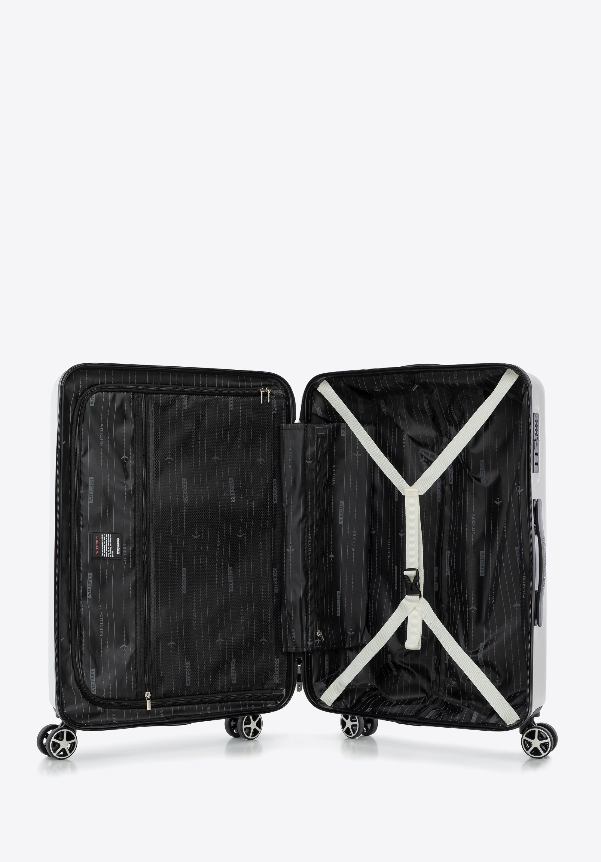 A WITTCHEN bőröndök a modern dizájnt ötvözik a funkcionalitással, kényelmet és stílust kínálva minden utazáshoz. ABS-ből készültek, dombornyomott logóval és függőleges barázdákkal rendelkeznek, amelyek egyedi karaktert adnak nekik. Négy 360°-ban forgatható dupla kerék biztosítja a könnyű manőverezhetőséget, míg a teleszkópos fogantyú kényelmes használatot biztosít.
