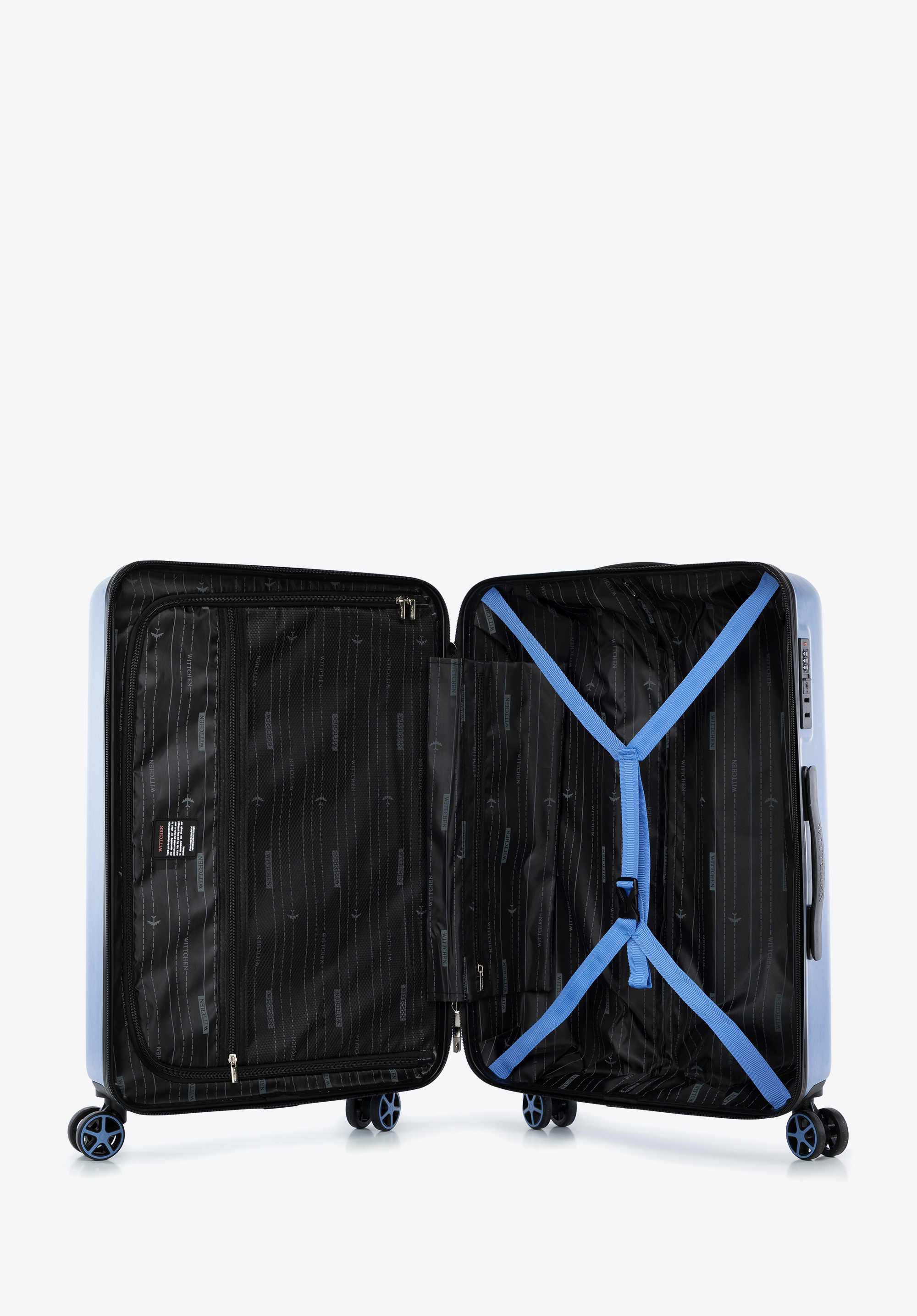 A WITTCHEN bőröndök a modern dizájnt ötvözik a funkcionalitással, kényelmet és stílust kínálva minden utazáshoz. ABS-ből készültek, dombornyomott logóval és függőleges barázdákkal rendelkeznek, amelyek egyedi karaktert adnak nekik. Négy 360°-ban forgatható dupla kerék biztosítja a könnyű manőverezhetőséget, míg a teleszkópos fogantyú kényelmes használatot biztosít.