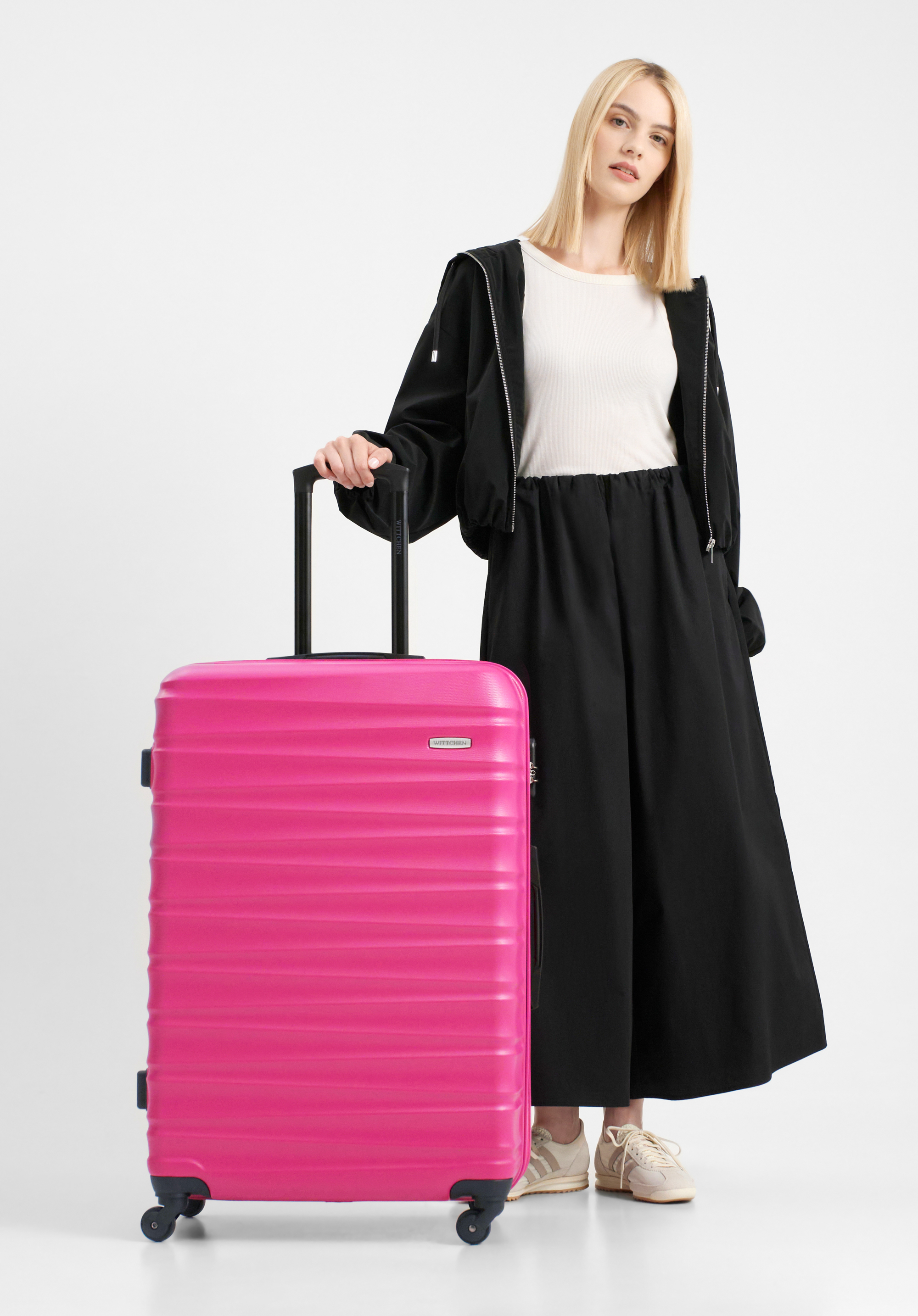ABS bordázott nagy bőrönd rózsaszín