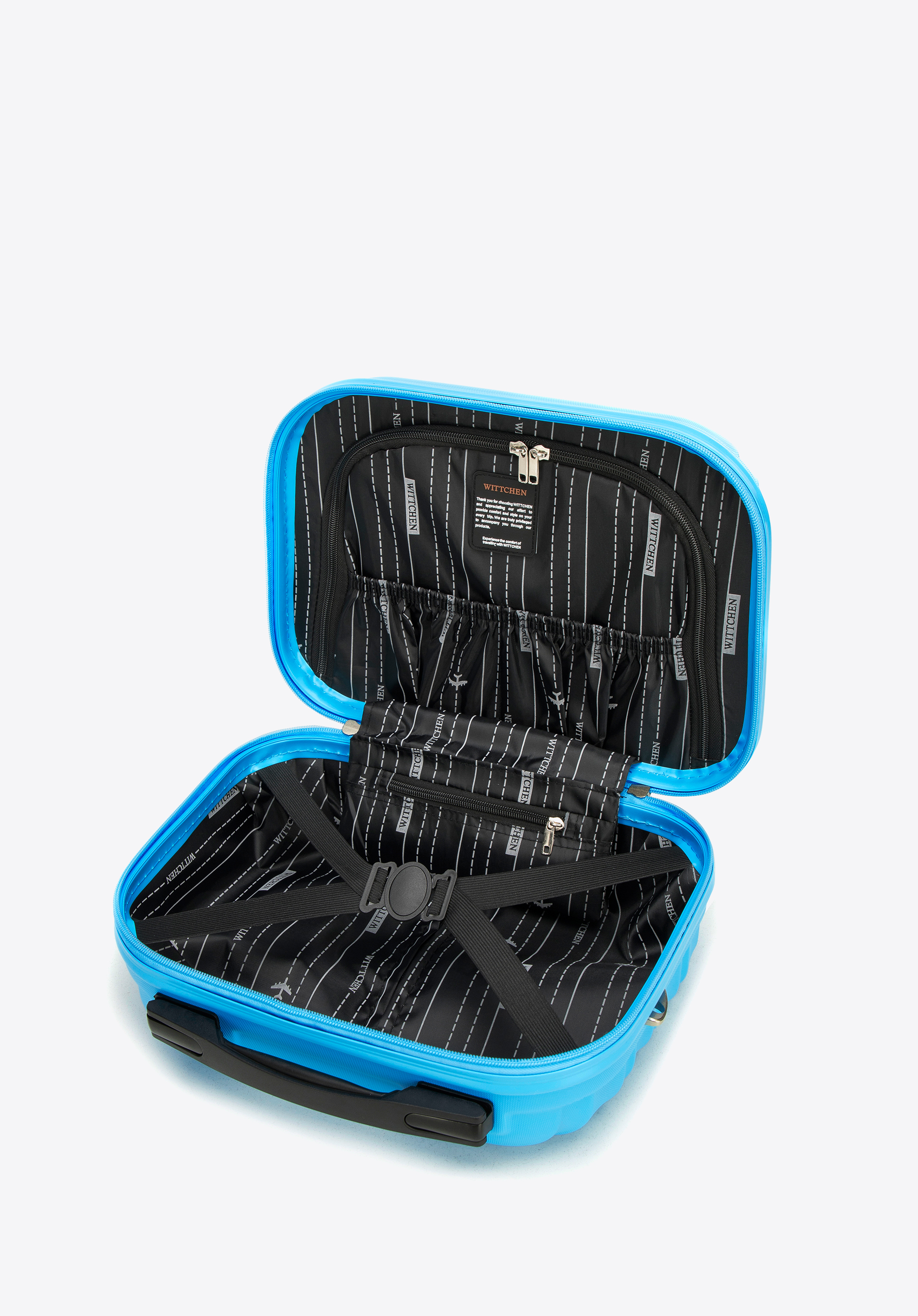 - Biztonság: A számkombinációs zár védi a bőröndök tartalmát, míg a cipzáras neszesszer táska védelmet és kényelmes hozzáférést biztosít a piperecikkekhez.