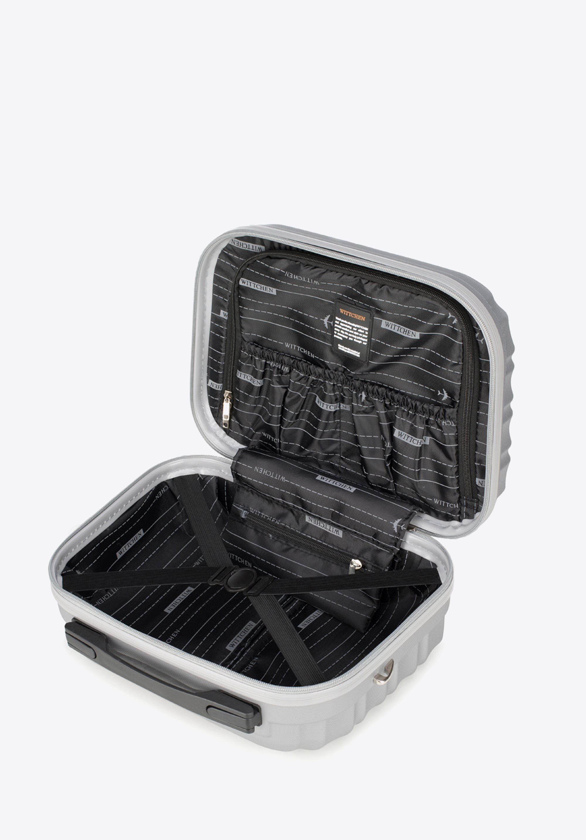 - A kozmetikai táska praktikus belső tere: Egy további cipzáras rekesszel és két nyitott zsebbel ellátva garantálja a tökéletes rendszerezést és a legszükségesebb tárgyakhoz való könnyű hozzáférést.