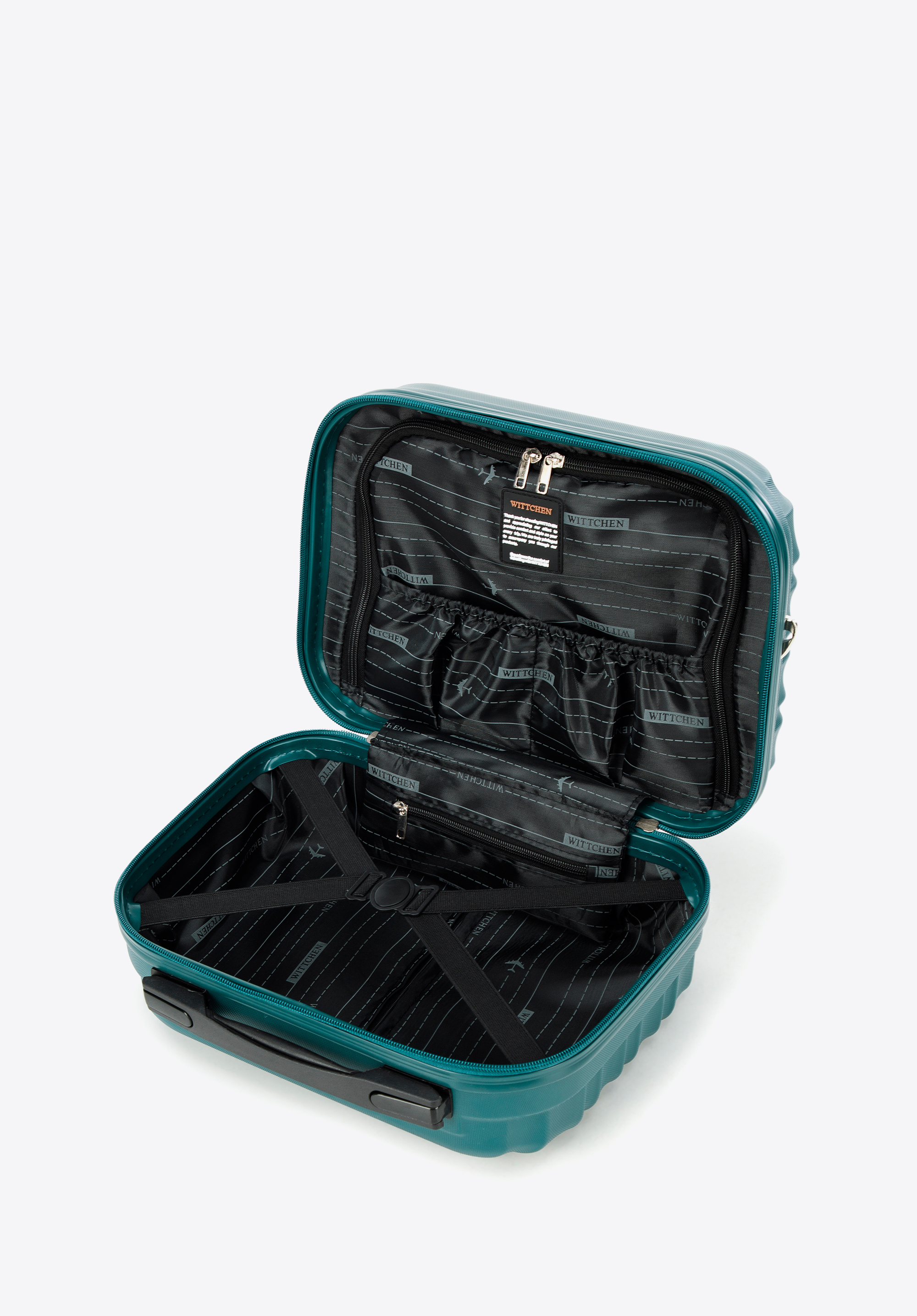- A kozmetikai táska praktikus belső tere: Egy további cipzáras rekesszel és két nyitott zsebbel ellátva garantálja a tökéletes rendszerezést és a legszükségesebb tárgyakhoz való könnyű hozzáférést.