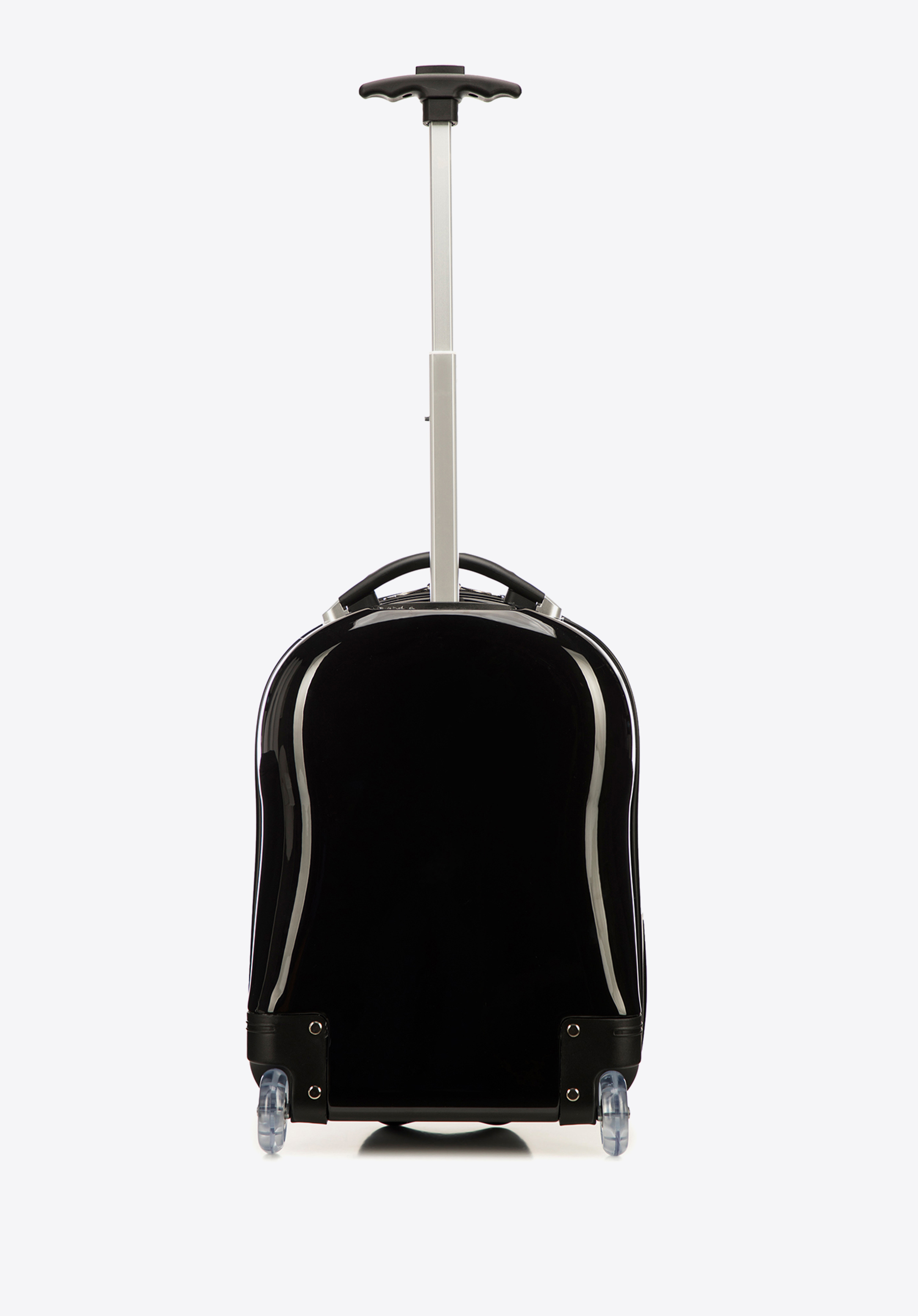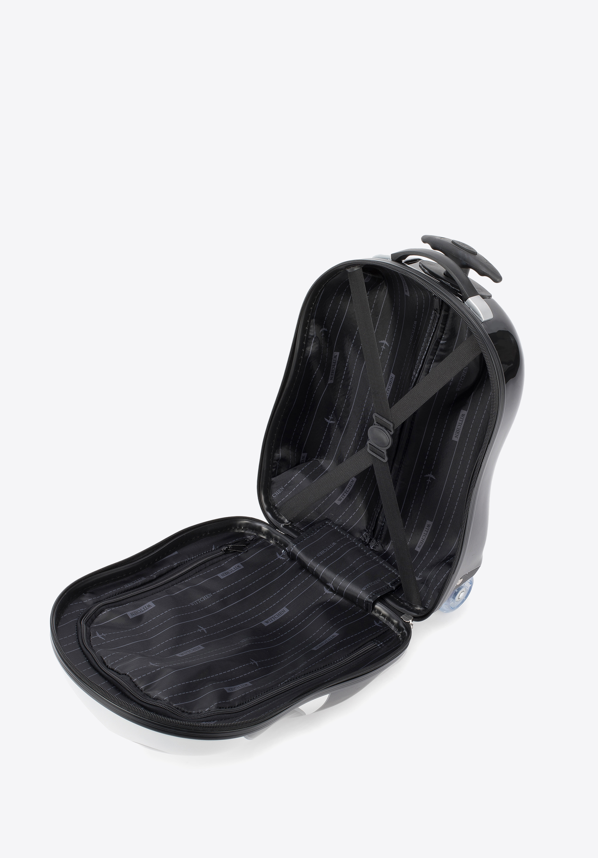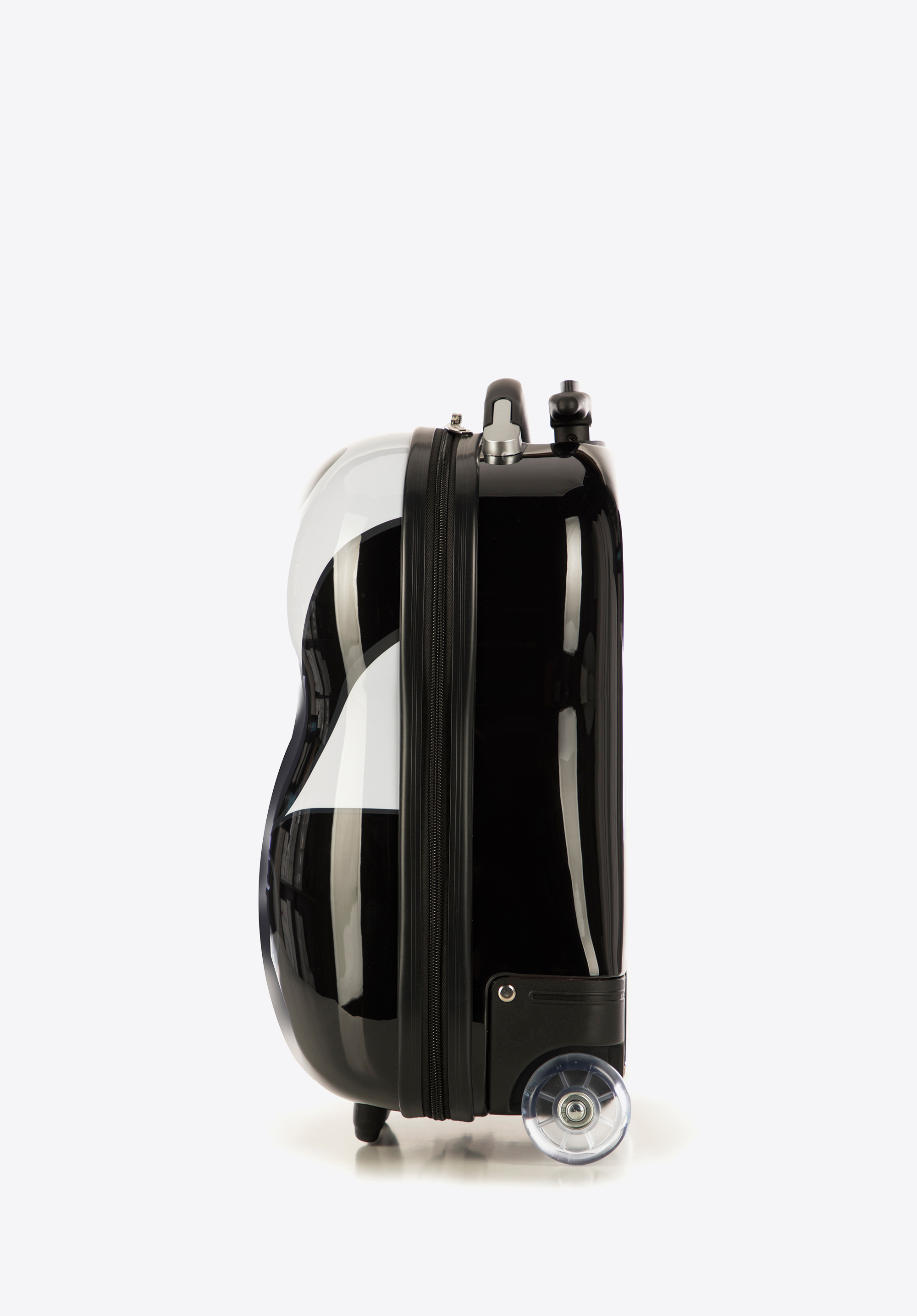ABS anyagból készült kis bőrönd gyerekeknek. A modell két, nagyon tartós görgőkkel van felszerelve, amelyek lehetővé teszik a könnyű szállítását. A bőrönd visszahúzható fogantyúval rendelkezik. Az előlapon található gyermekmotívumok minden utat még vonzóbbá tesznek a legfiatalabbak számára.