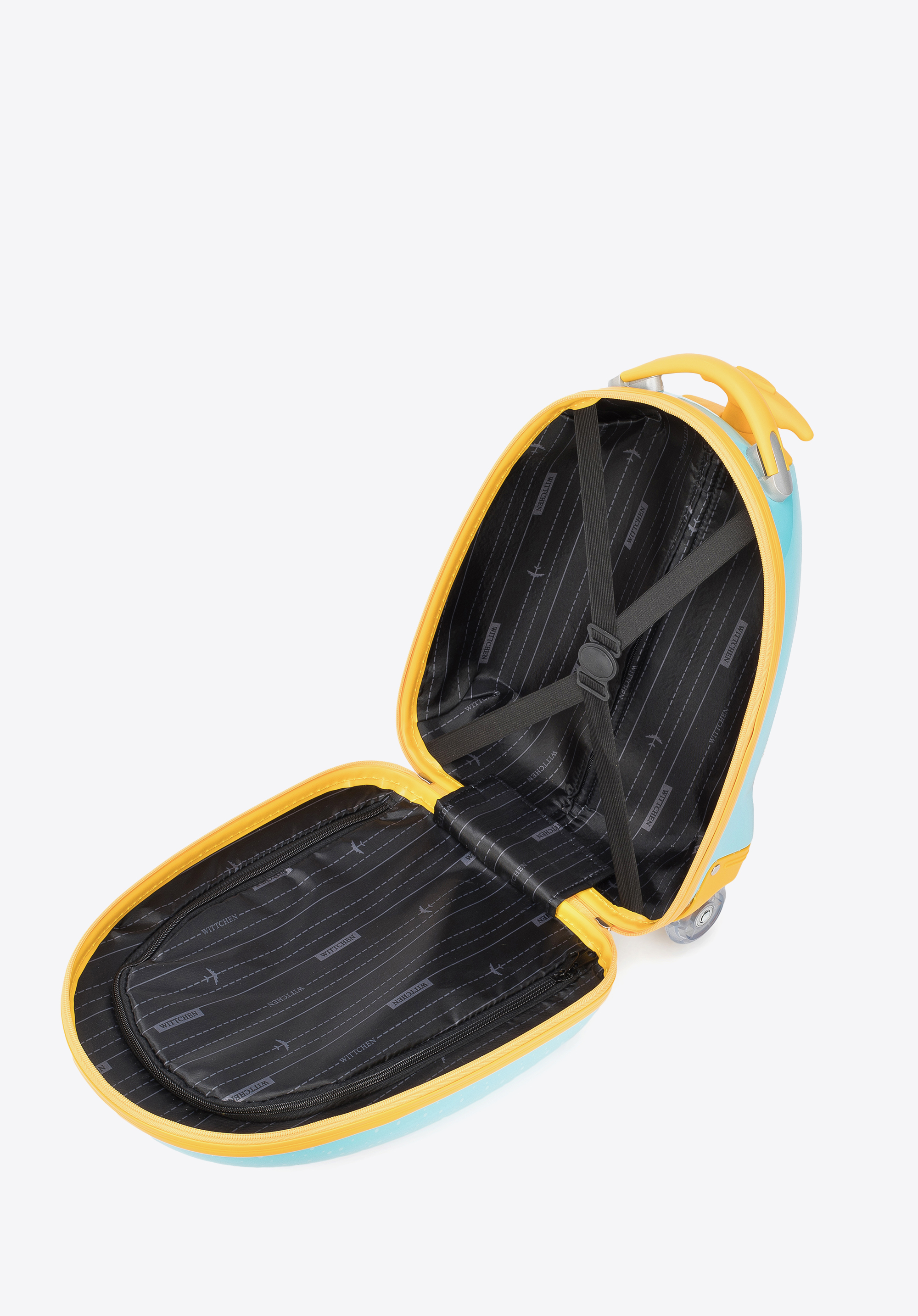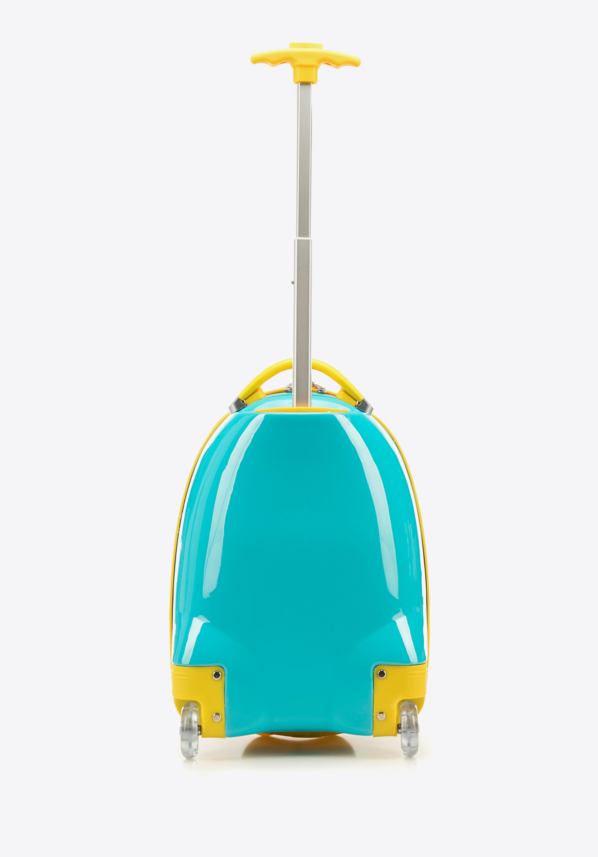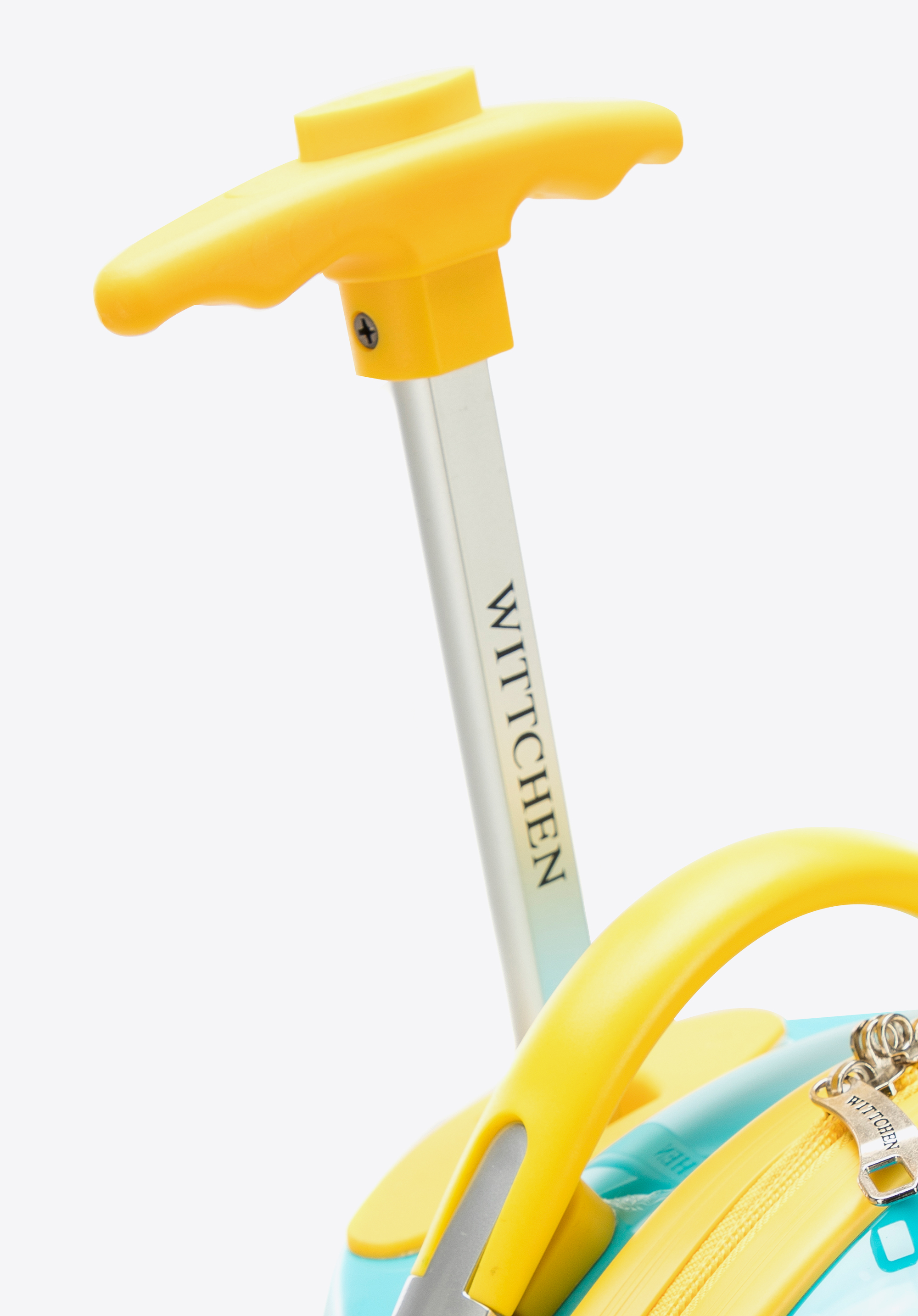 ABS anyagból készült kis bőrönd gyerekeknek. A modell két, nagyon tartós görgőkkel van felszerelve, amelyek lehetővé teszik a könnyű szállítását. A bőrönd visszahúzható fogantyúval rendelkezik. Az előlapon található gyermekmotívumok minden utat még vonzóbbá tesznek a legfiatalabbak számára.