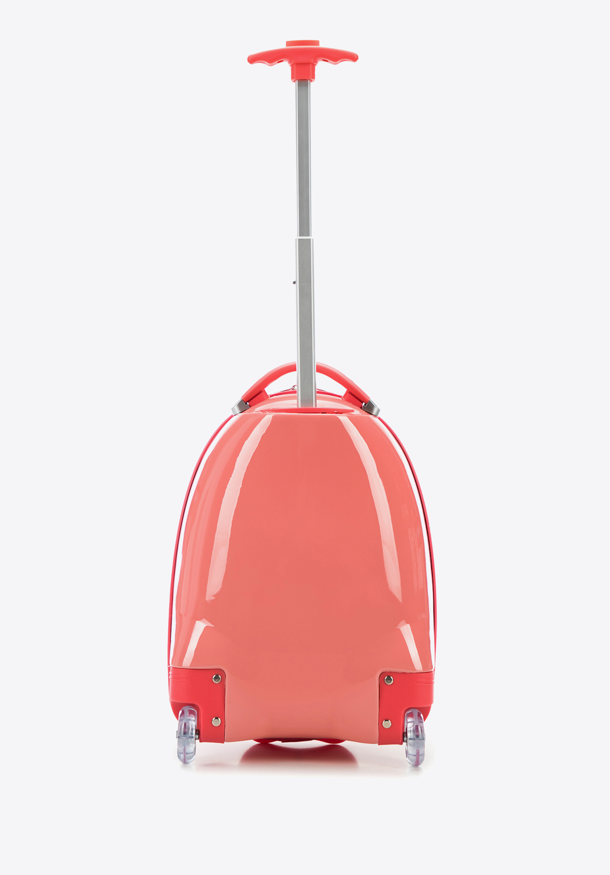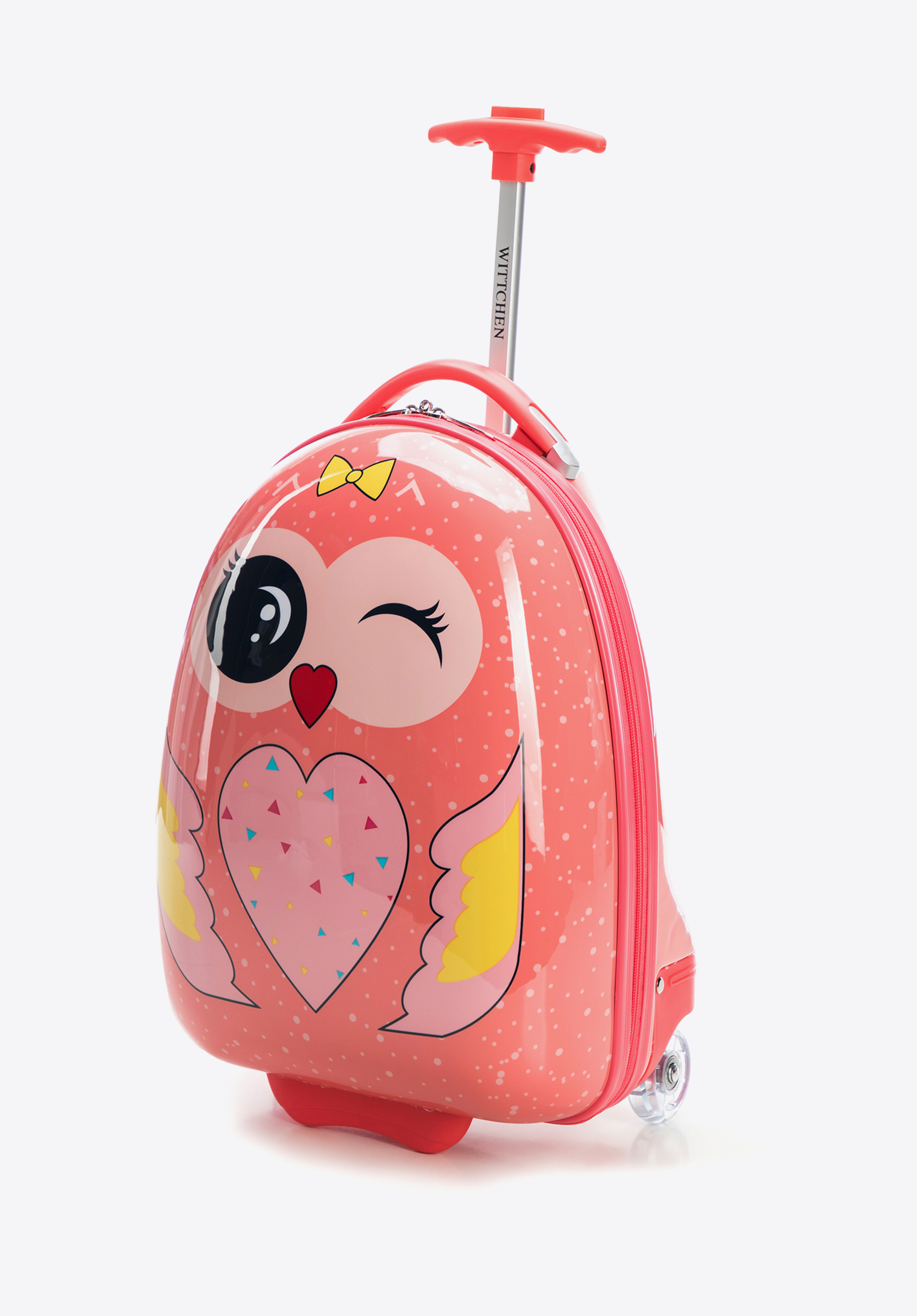 ABS anyagból készült kis bőrönd gyerekeknek. A modell két, nagyon tartós görgőkkel van felszerelve, amelyek lehetővé teszik a könnyű szállítását. A bőrönd visszahúzható fogantyúval rendelkezik. Az előlapon található gyermekmotívumok minden utat még vonzóbbá tesznek a legfiatalabbak számára.