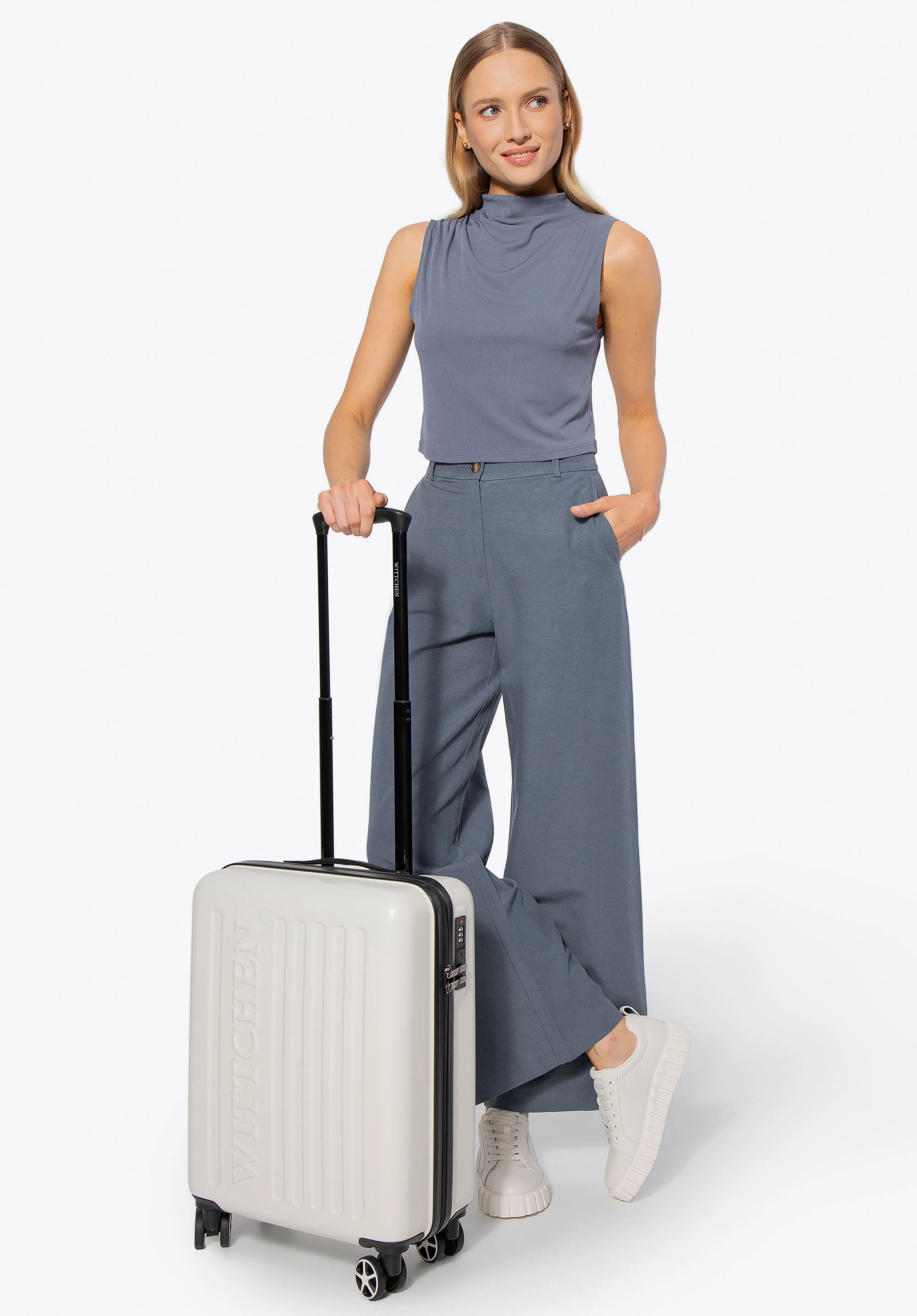 Fedezd fel a tartós ABS anyagból készült WITTCHEN kabinbőrönd eleganciáját, amely zökkenőmentesen ötvözi a stílust a praktikummal. Modern dizájnját dombornyomott logó és letisztult függőleges csíkok emelik ki a külső részén, amelyek jellegzetes és kifinomult hatást ad. A négy dupla kerék 360°-ban forgatható, így sima és kényelmes manőverezést biztosít, míg az acél záras teleszkópos fogantyú lehetővé teszi a magasság beállítását a Te igényeid szerint.