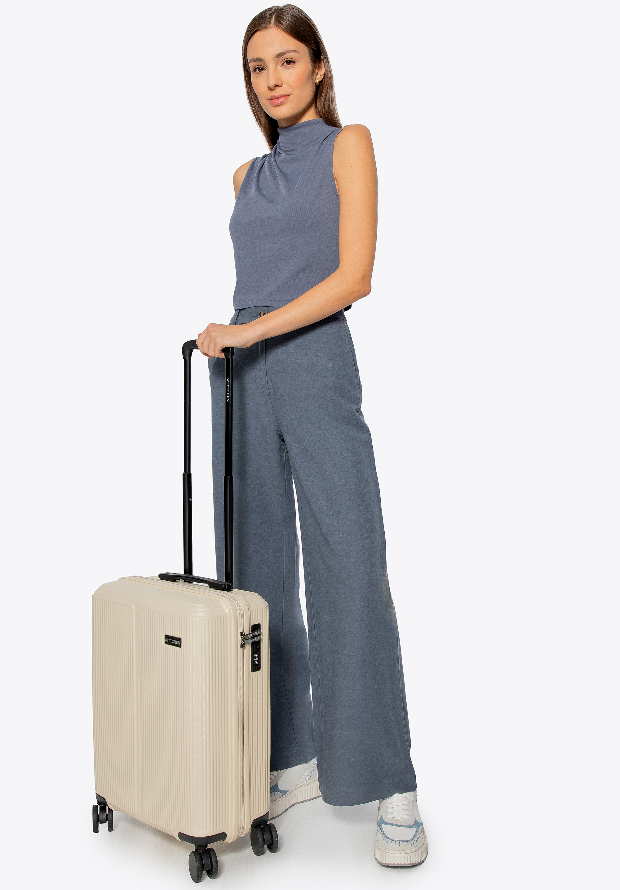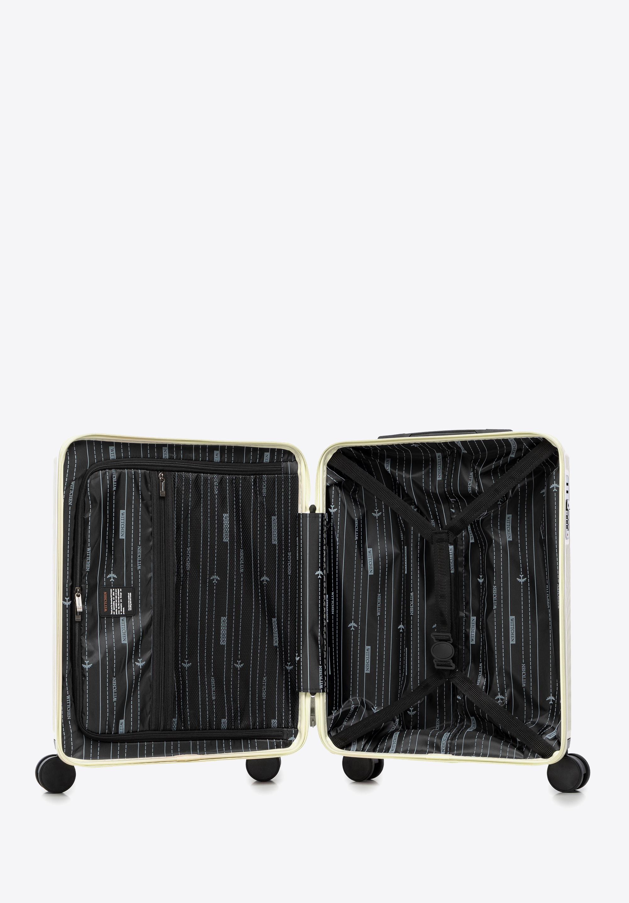 - Dizájn : A héj modern függőleges dombornyomása és a fekete részletek elegáns, időtlen megjelenést kölcsönöznek a bőröndnek.