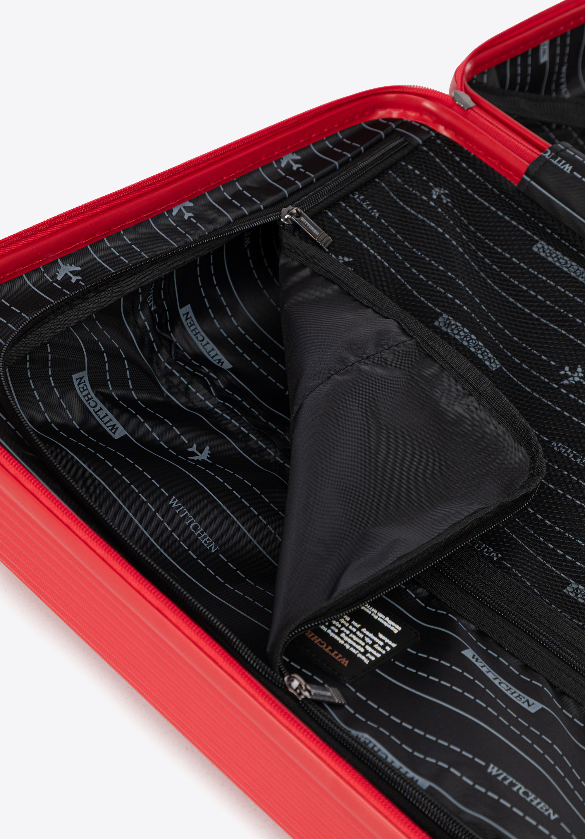 - Funkcionális belső tér : A fő rekesz állítható pántokkal rögzíthető a ruházat, valamint egy cipzáras rekesszel és hálós zsebbel a kisebb holmiknak.