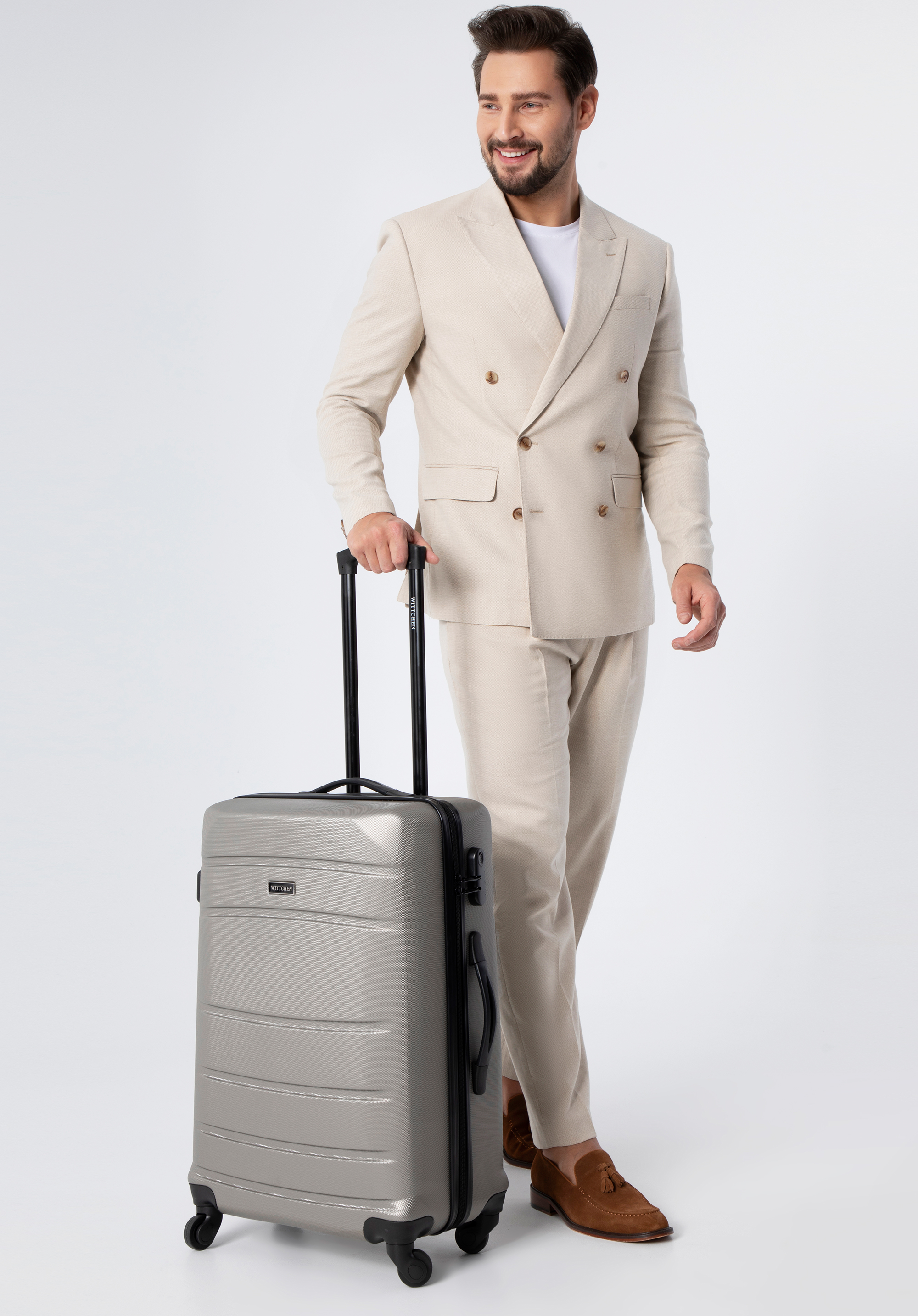 A texturált megjelenés és az ABS anyag külső része révén ez a bőrönd élménnyé teszi az utazást. Számkombinációs zárral, teleszkópos fogantyúval és gumis emelőfogantyúval rendelkezik. A bőrönd széles színválasztékban kapható: sötétkék, rózsaszín, pezsgő, szürke és fekete.