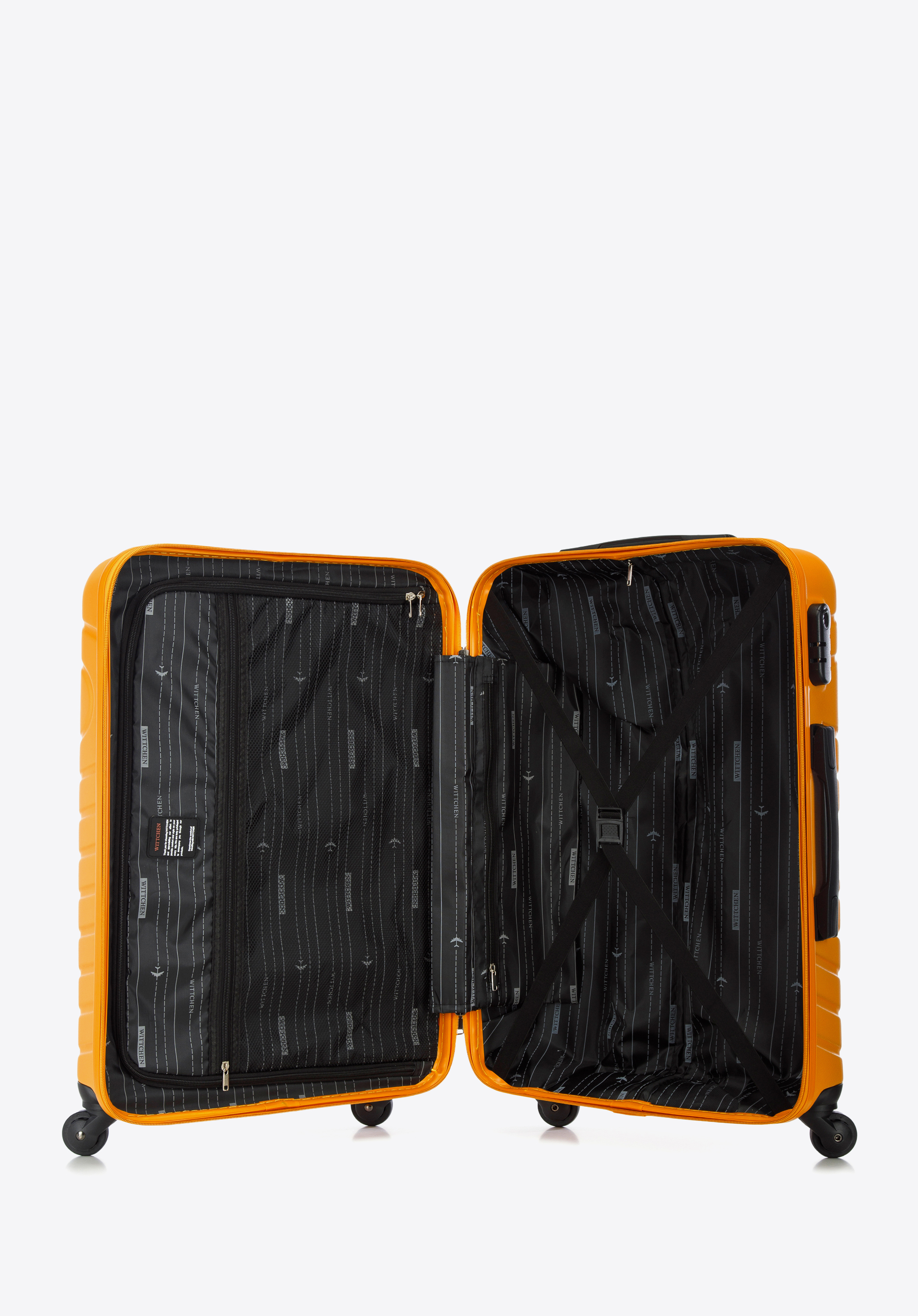 Ez a modern bőrönd sok utazás során hasznos lesz. Durva textúrájú ABS-ből készült. Az egyszerű, geometrikus dombornyomás karaktert ad. Ez a modell négy szimpla kerékkel és egy kihúzható fogantyúval rendelkezik, amellyel kényelmes lesz tolni. A két belső rekeszben könnyedén tarthatsz rendet és mindent bepakolhatsz, ami egy pár napos utazáshoz szükséges. Ez a geometrikus dombornyomású közepes ABS bőrönd egy modern és praktikus kiegészítő, amelyet érdemes magadénak tudnod.