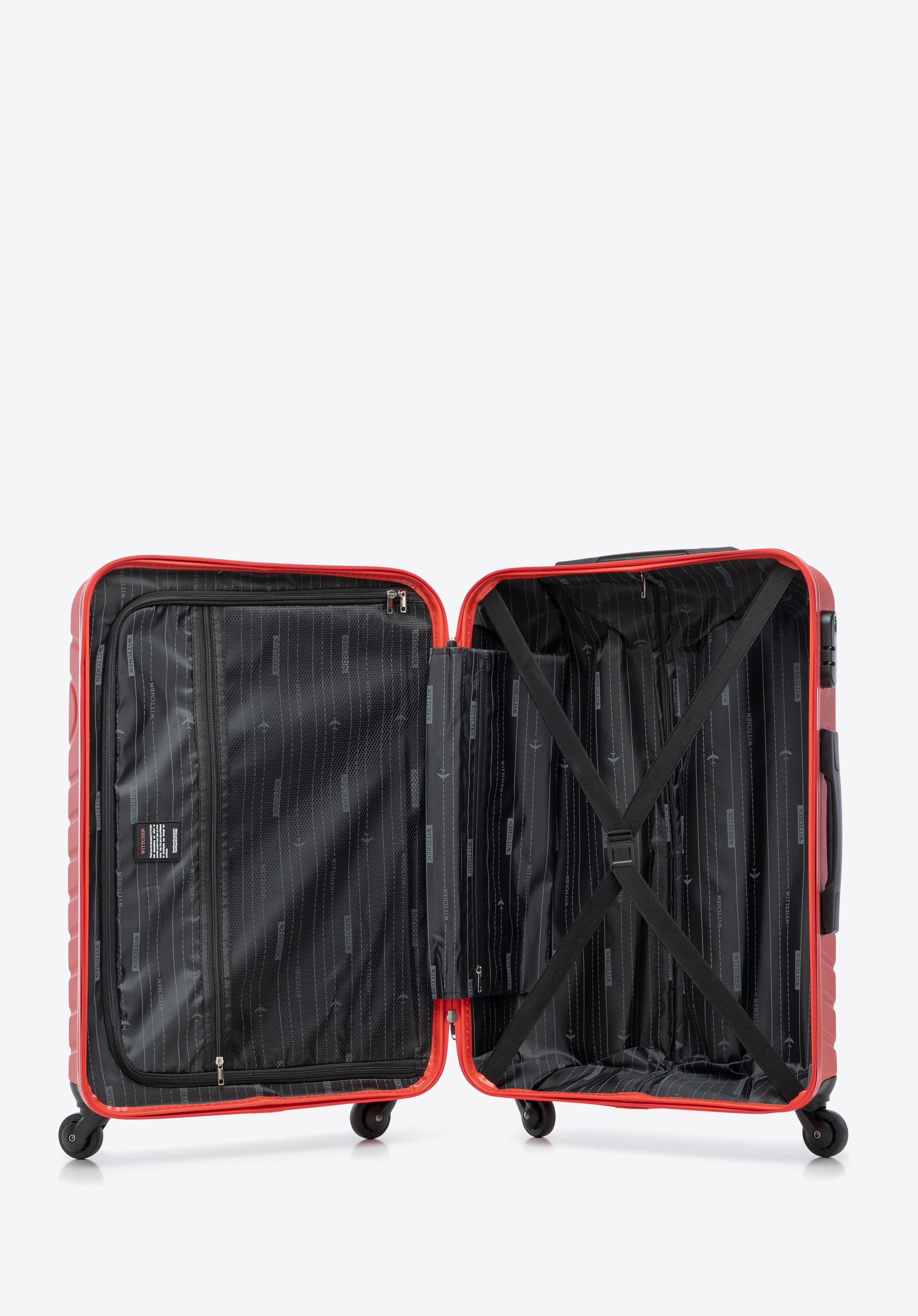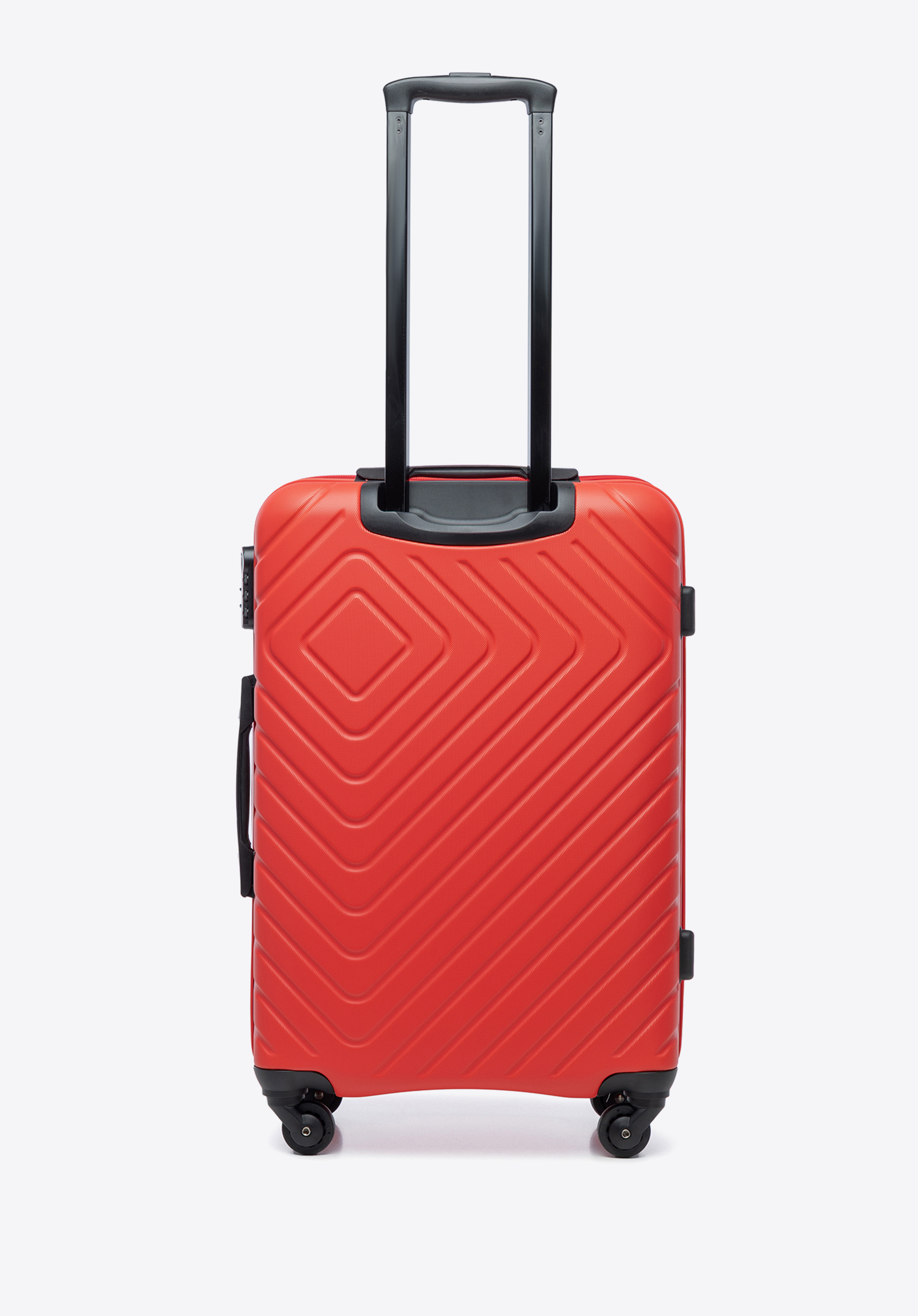 Ez a modern bőrönd sok utazás során hasznos lesz. Durva textúrájú ABS-ből készült. Az egyszerű, geometrikus dombornyomás karaktert ad. Ez a modell négy szimpla kerékkel és egy kihúzható fogantyúval rendelkezik, amellyel kényelmes lesz tolni. A két belső rekeszben könnyedén tarthatsz rendet és mindent bepakolhatsz, ami egy pár napos utazáshoz szükséges. Ez a geometrikus dombornyomású közepes ABS bőrönd egy modern és praktikus kiegészítő, amelyet érdemes magadénak tudnod.
