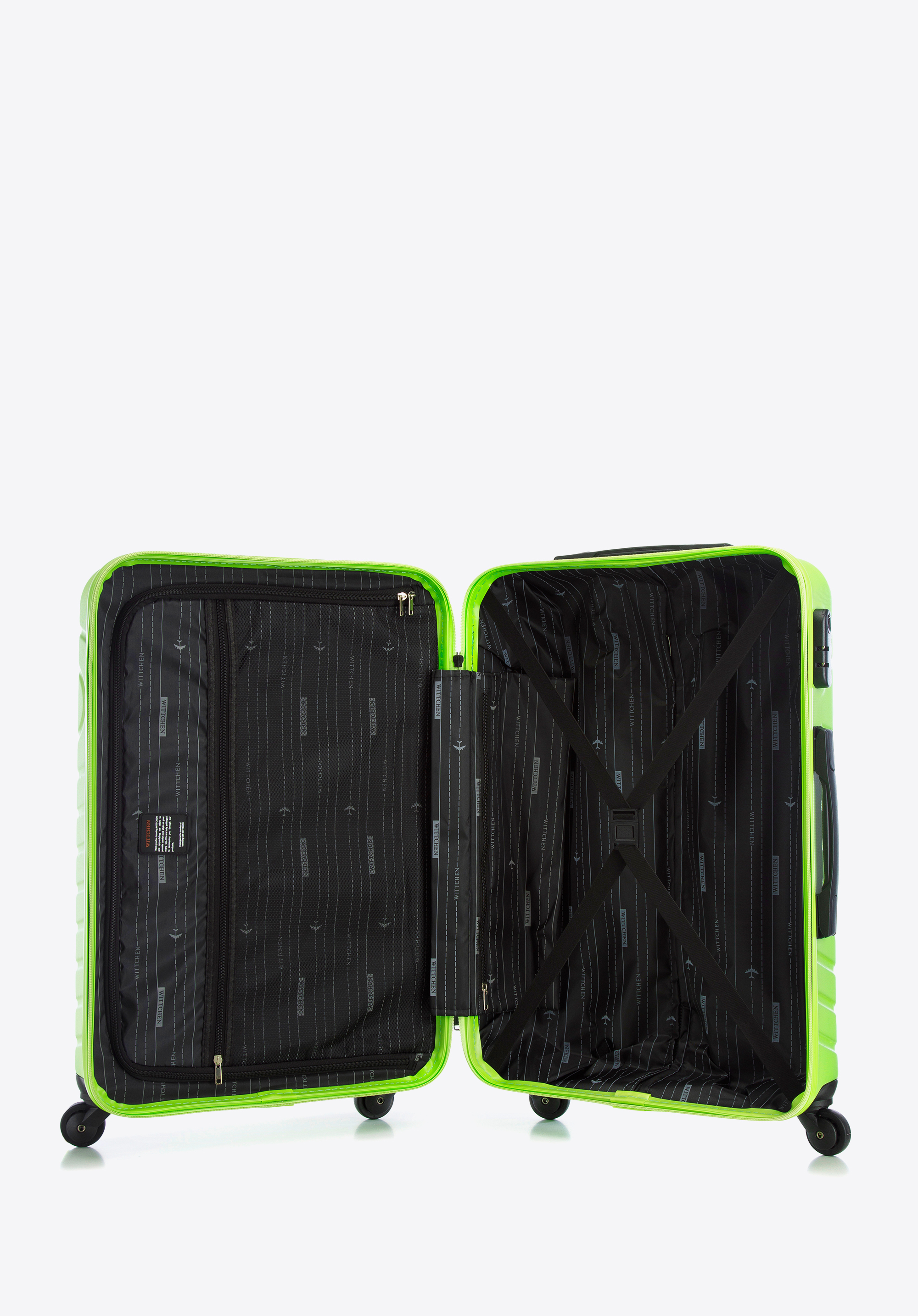 Ez a modern bőrönd sok utazás során hasznos lesz. Durva textúrájú ABS-ből készült. Az egyszerű, geometrikus dombornyomás karaktert ad. Ez a modell négy szimpla kerékkel és egy kihúzható fogantyúval rendelkezik, amellyel kényelmes lesz tolni. A két belső rekeszben könnyedén tarthatsz rendet és mindent bepakolhatsz, ami egy pár napos utazáshoz szükséges. Ez a geometrikus dombornyomású közepes ABS bőrönd egy modern és praktikus kiegészítő, amelyet érdemes magadénak tudnod.