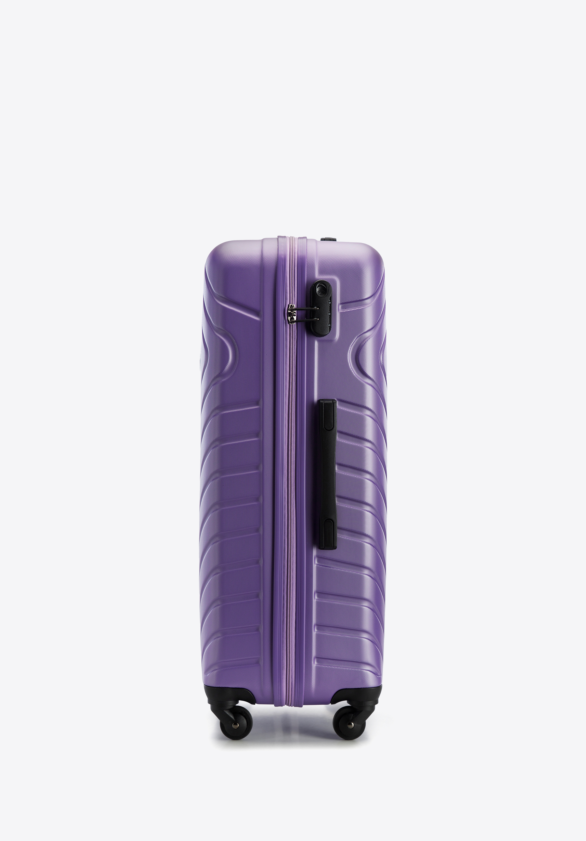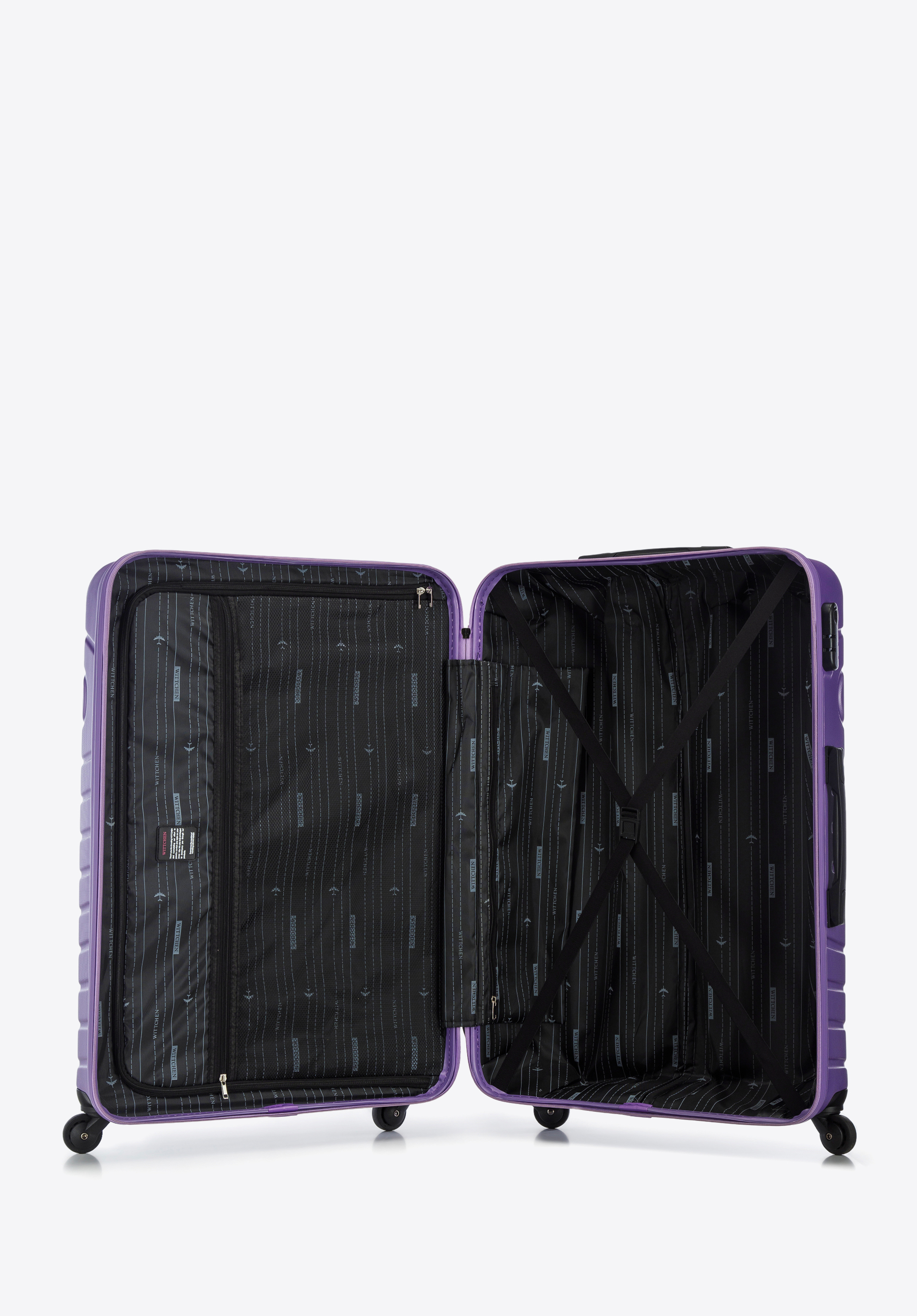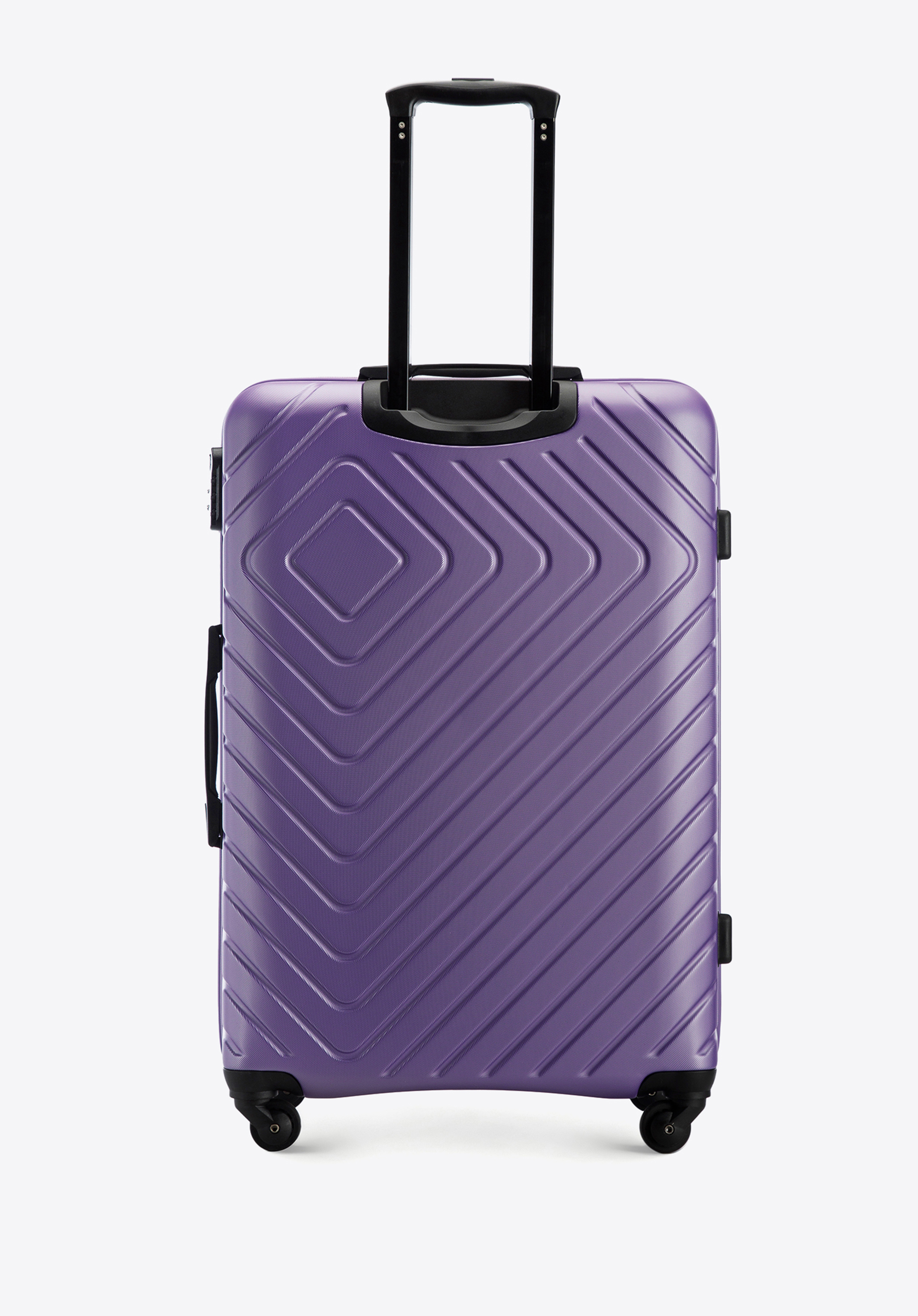 Ez a nagy bőrönd a tökéletes kiegészítő: praktikus és nagyon stílusos. Egyszerű, geometrikus dombornyomással díszített. A teleszkópos fogantyúnak és a négy szimpla keréknek köszönhetően kényelmes lesz haladni vele. Ez a modell érdekes textúrájú ABS-ből készült .Tágas, két részre osztható belsővel rendelkezik, amelybe könnyedén bepakolhat minden szükséges dolgot és rendet tarthat. A geometrikus dombornyomású ABS-ből készült nagy bőrönd sok-sok hosszú nyaraláshoz remek választás.