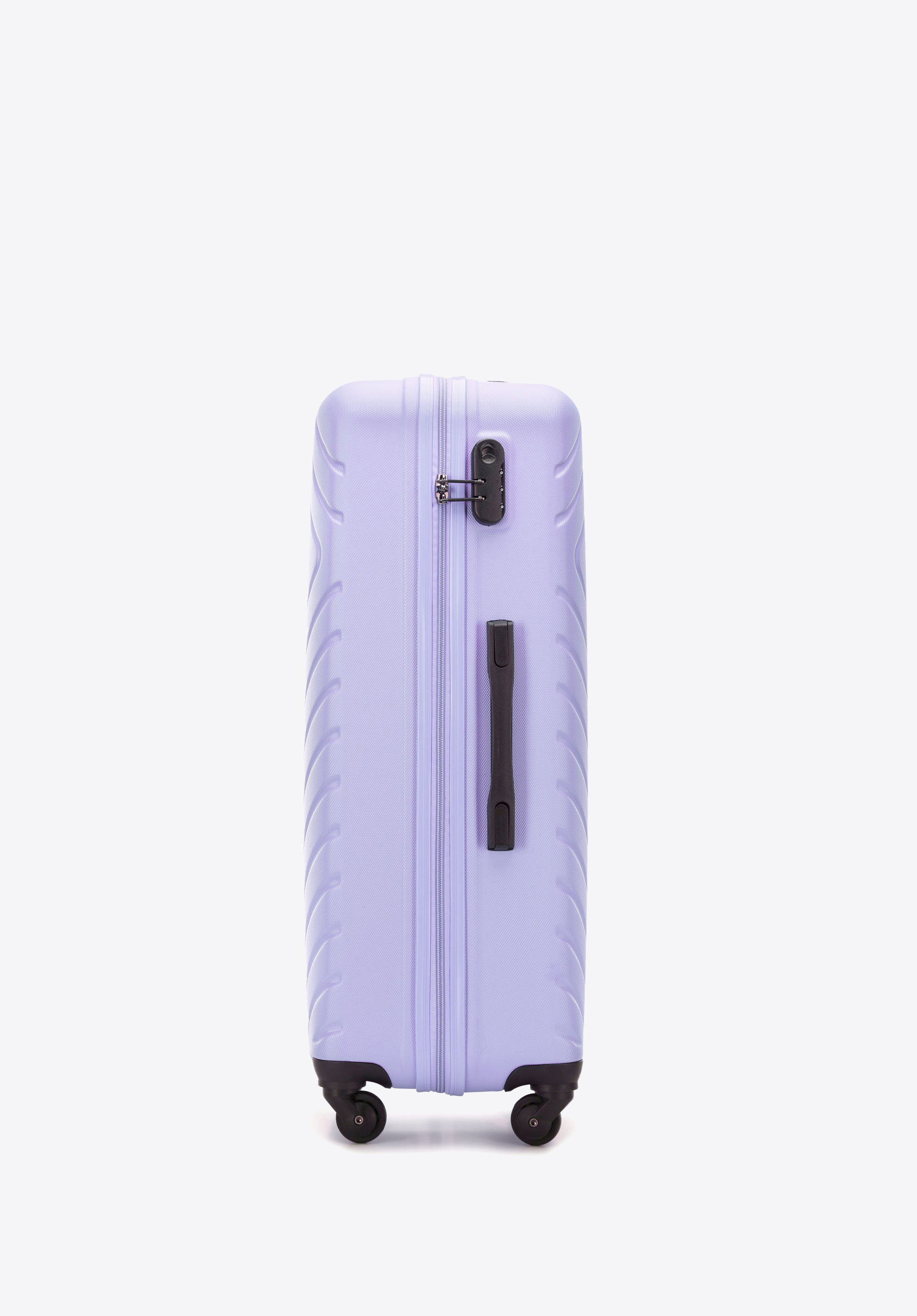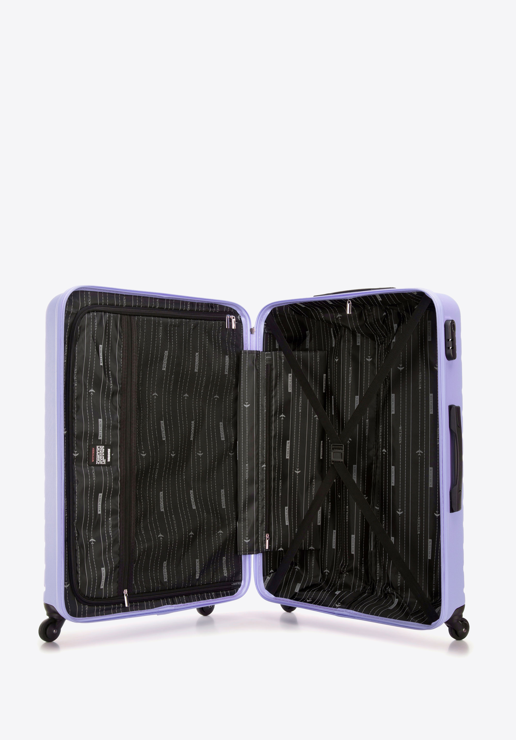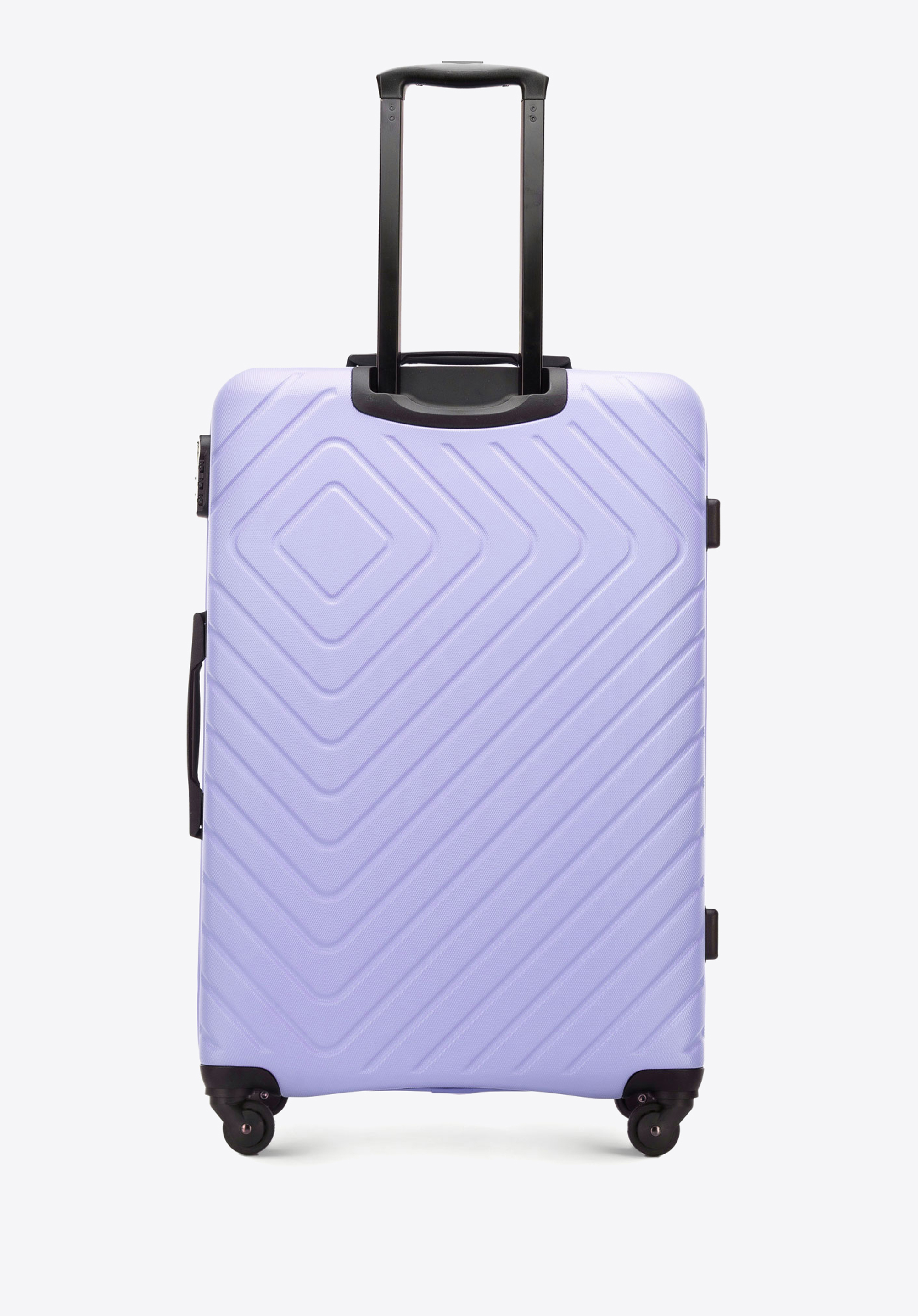 Ez a nagy bőrönd a tökéletes kiegészítő: praktikus és nagyon stílusos. Egyszerű, geometrikus dombornyomással díszített. A teleszkópos fogantyúnak és a négy szimpla keréknek köszönhetően kényelmes lesz haladni vele. Ez a modell érdekes textúrájú ABS-ből készült .Tágas, két részre osztható belsővel rendelkezik, amelybe könnyedén bepakolhat minden szükséges dolgot és rendet tarthat. A geometrikus dombornyomású ABS-ből készült nagy bőrönd sok-sok hosszú nyaraláshoz remek választás.