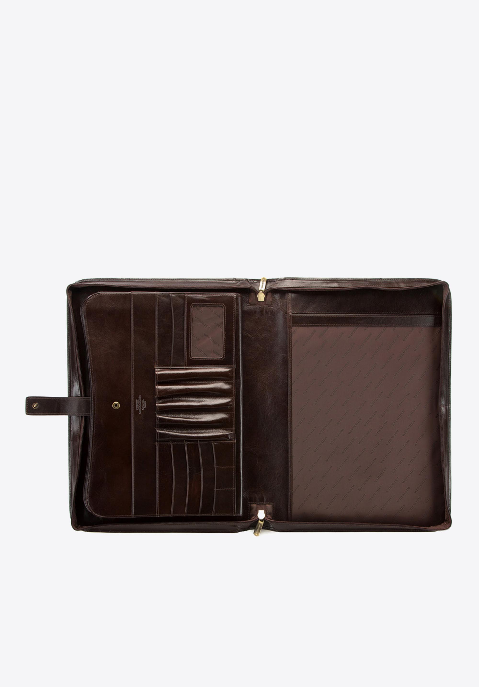 Dokumentumtartó az arizonai gyűjteményből . Nagyon óvatosan és gyönyörűen kézműves tartós, kissé fényes borjúbőrből. Ez a termék egy kis fémlemezzel büszkélkedhet, amelyen a WITTCHEN emblémája van, arany színben.