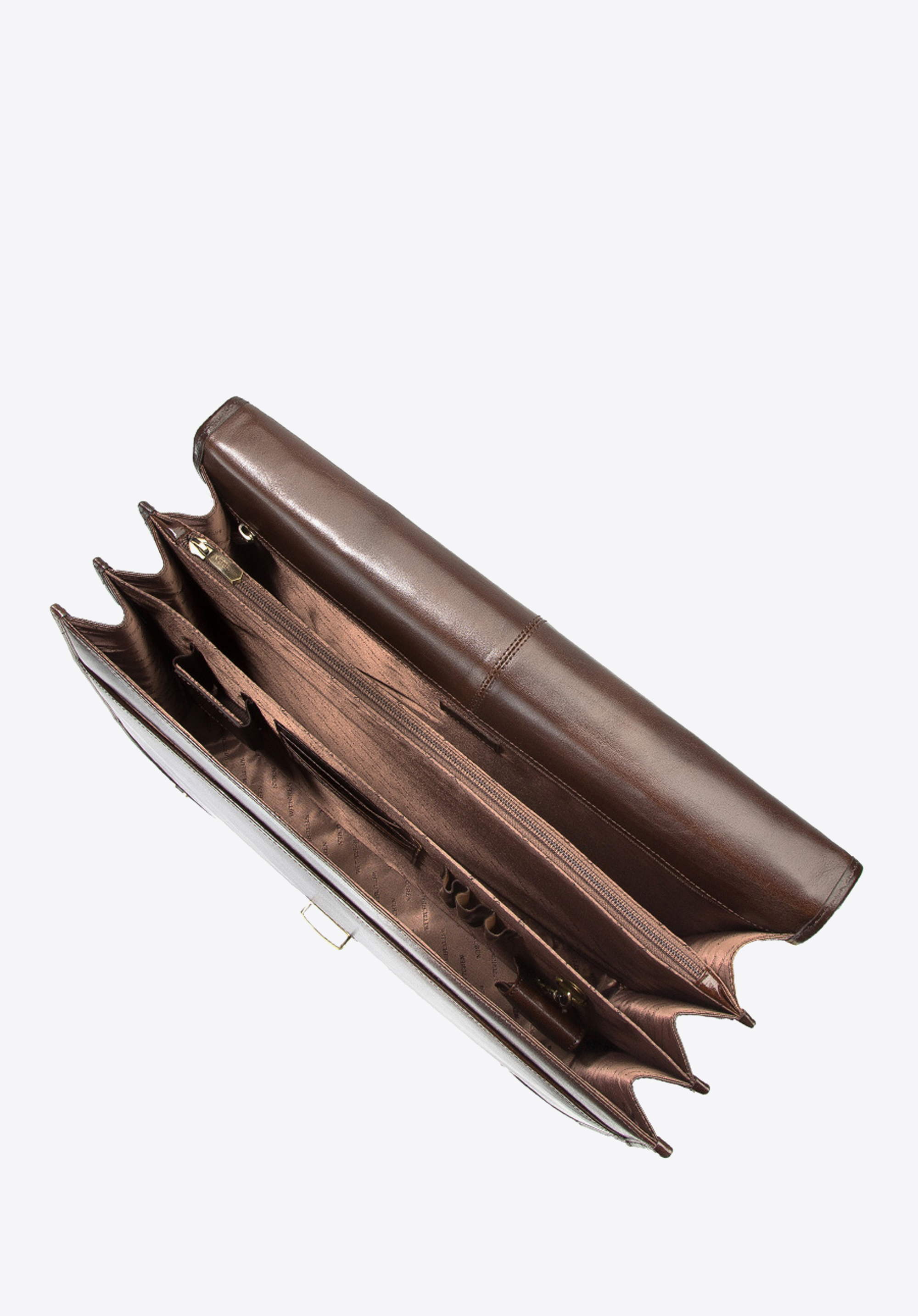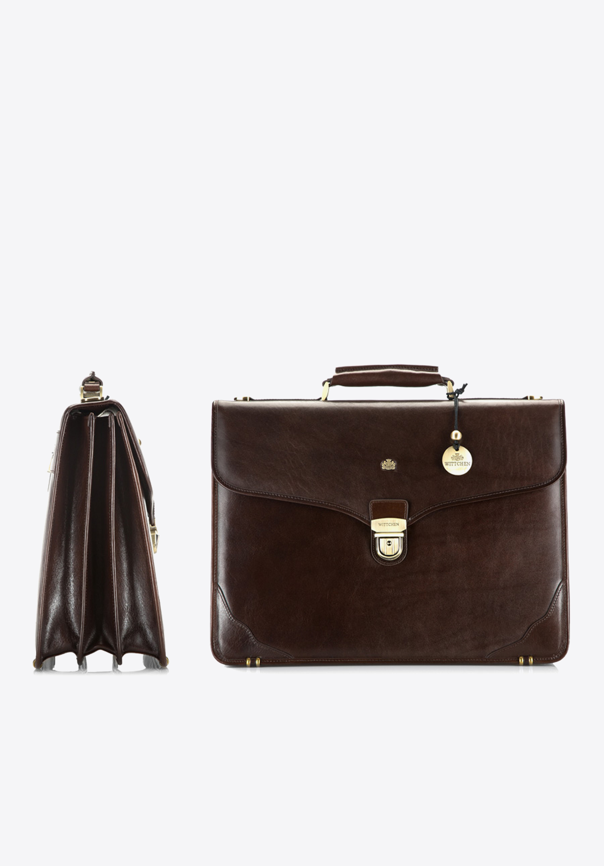 Exkluzív bőr aktatáska, professzionális viselet stílusos kiegészítője. Elegáns, klasszikus üzleti aktatáska, melybe belefér a notebook, és levehető pántjával vállon is hordható.