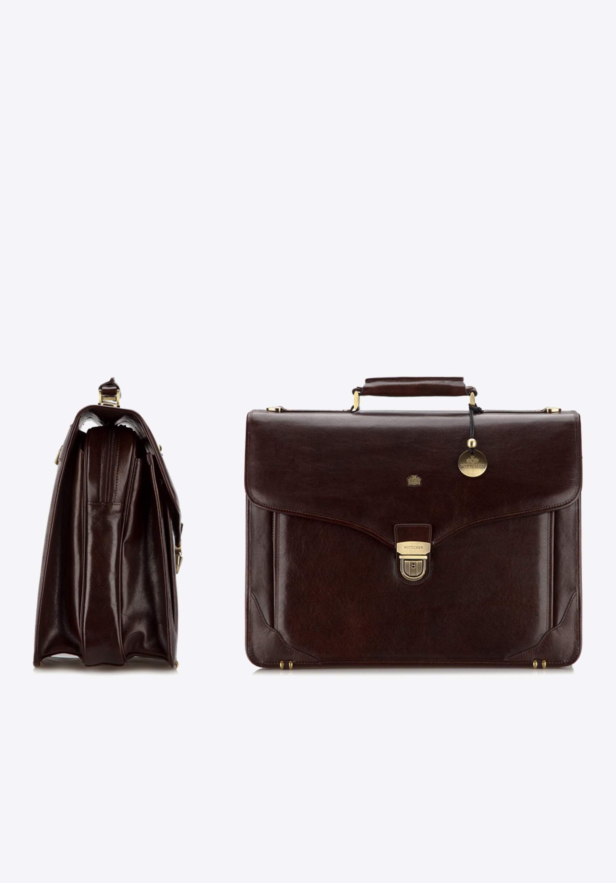 Bőr irattáska kézzel készítve tartós, enyhén fényes borjúbőrből, azoknak ajánljuk, akik értékelik a magas minőséget. Racionális rekeszes elosztásának köszönhetően könnyű benne szép rendet tartani.