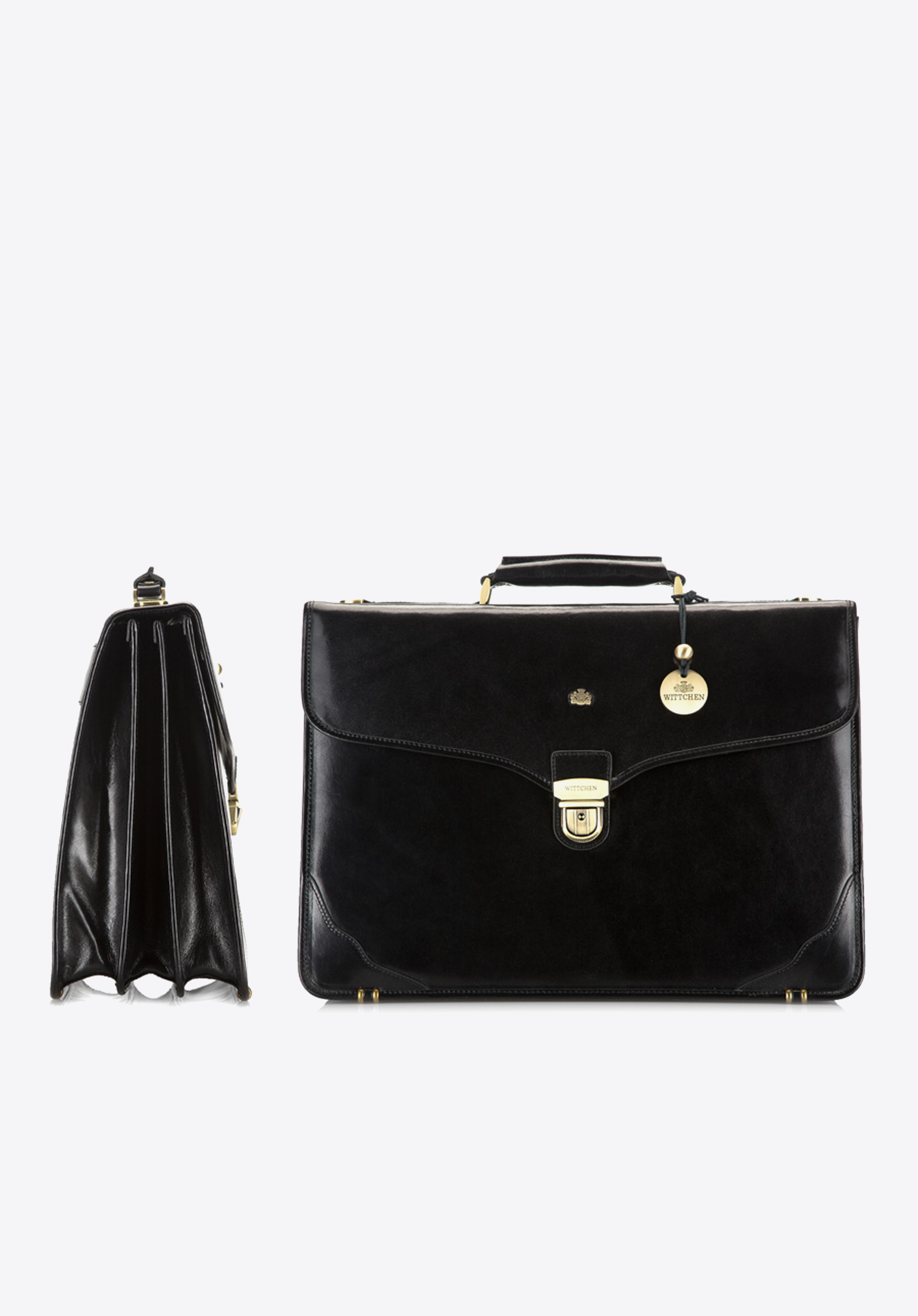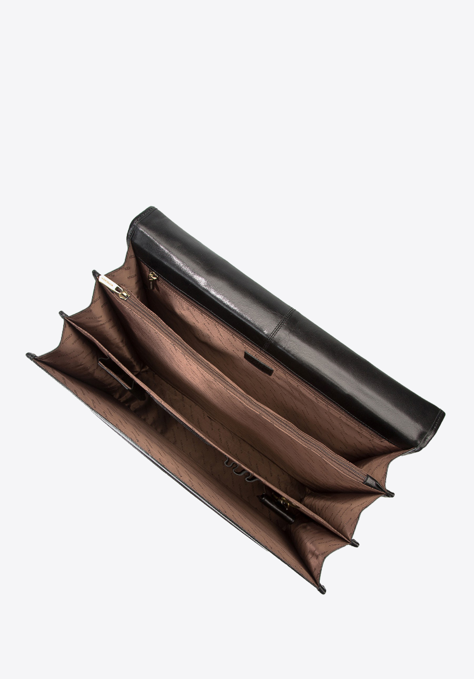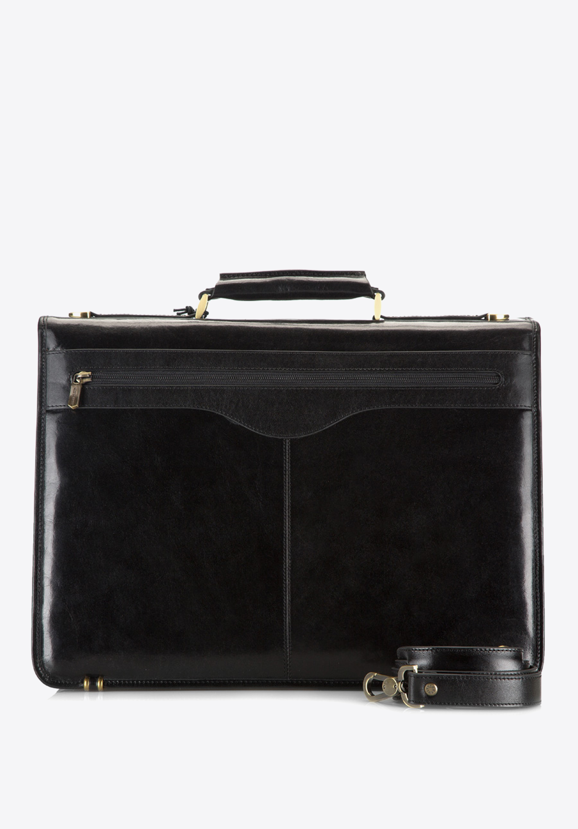 Exkluzív bőr aktatáska, professzionális viselet stílusos kiegészítője. Elegáns, klasszikus üzleti aktatáska, melybe belefér a notebook, és levehető pántjával vállon is hordható.