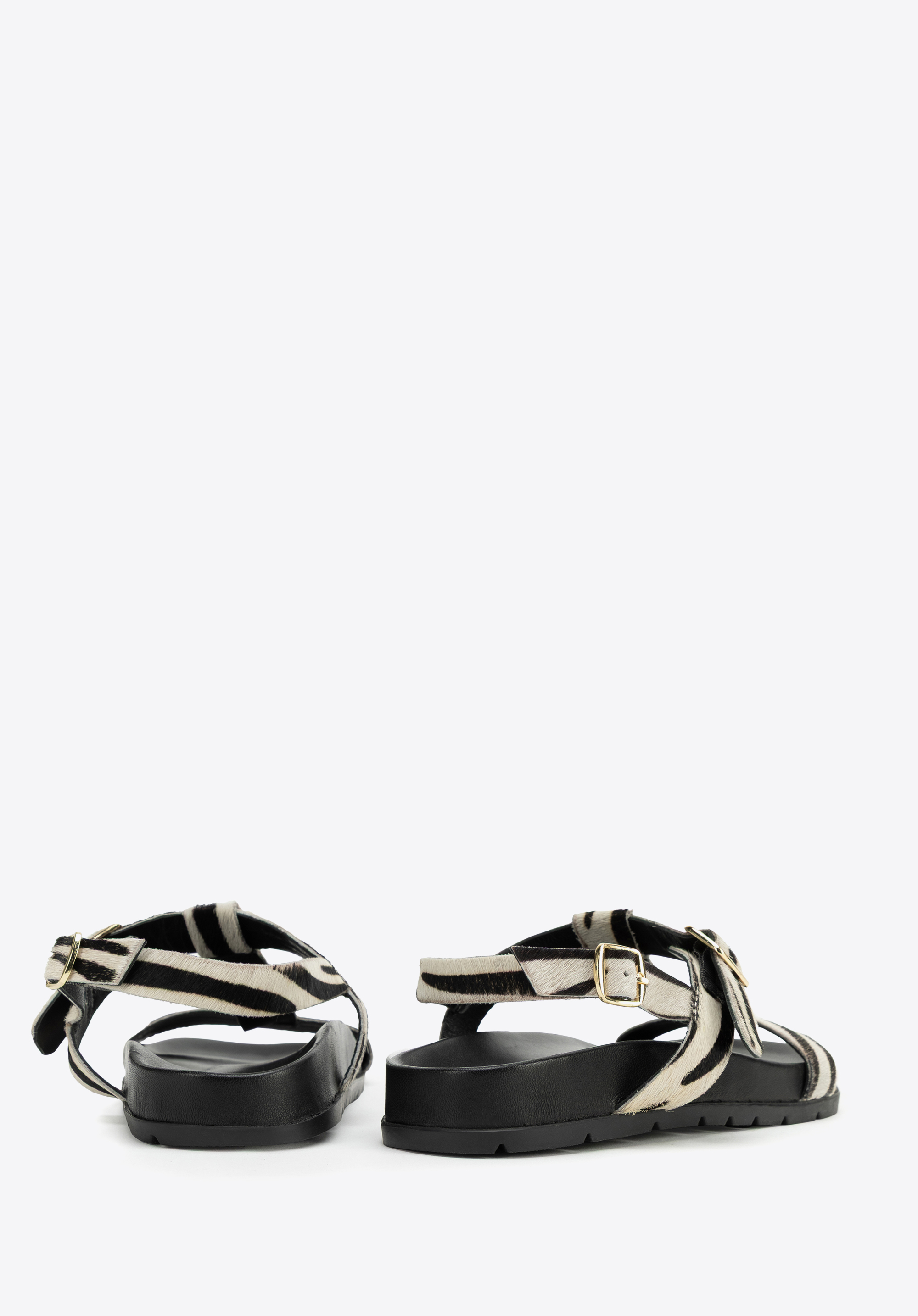 Merülj el a stílus és a kényelem világában a természetes bőrből készült egyedi szandállal, amelyek divatos állatmintájuknak köszönhetően vonzzák a tekintetet. A lekerekített, nyitott orr és az állítható csatos pánt kombinálja az eleganciát a funkcionalitással. A puha bőrbélés és a talpbetét egész napos kényelmet biztosít, míg a stabil platform kényelmes tartást és könnyű lépést garantál. Mindezt tartós TPR talp koronázza meg, amely nagyszerű tapadást és kopásállóságot ad.