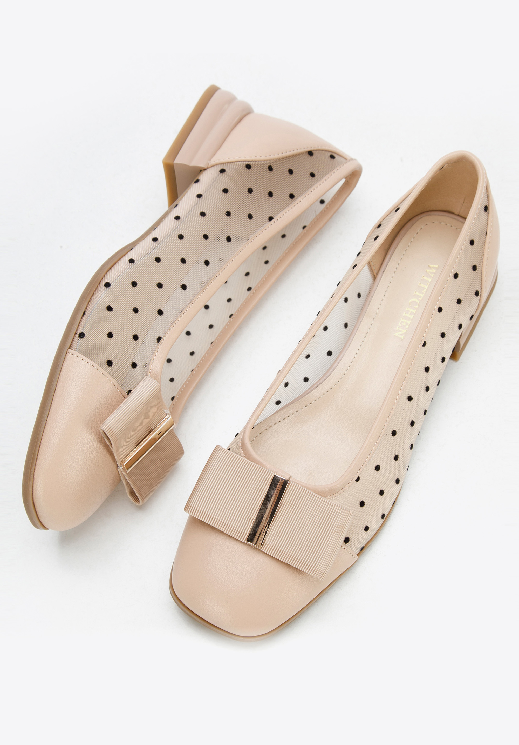áttört hálóval készült, a lábfej és a sarok valódi bőrrel van szegélyezve.
