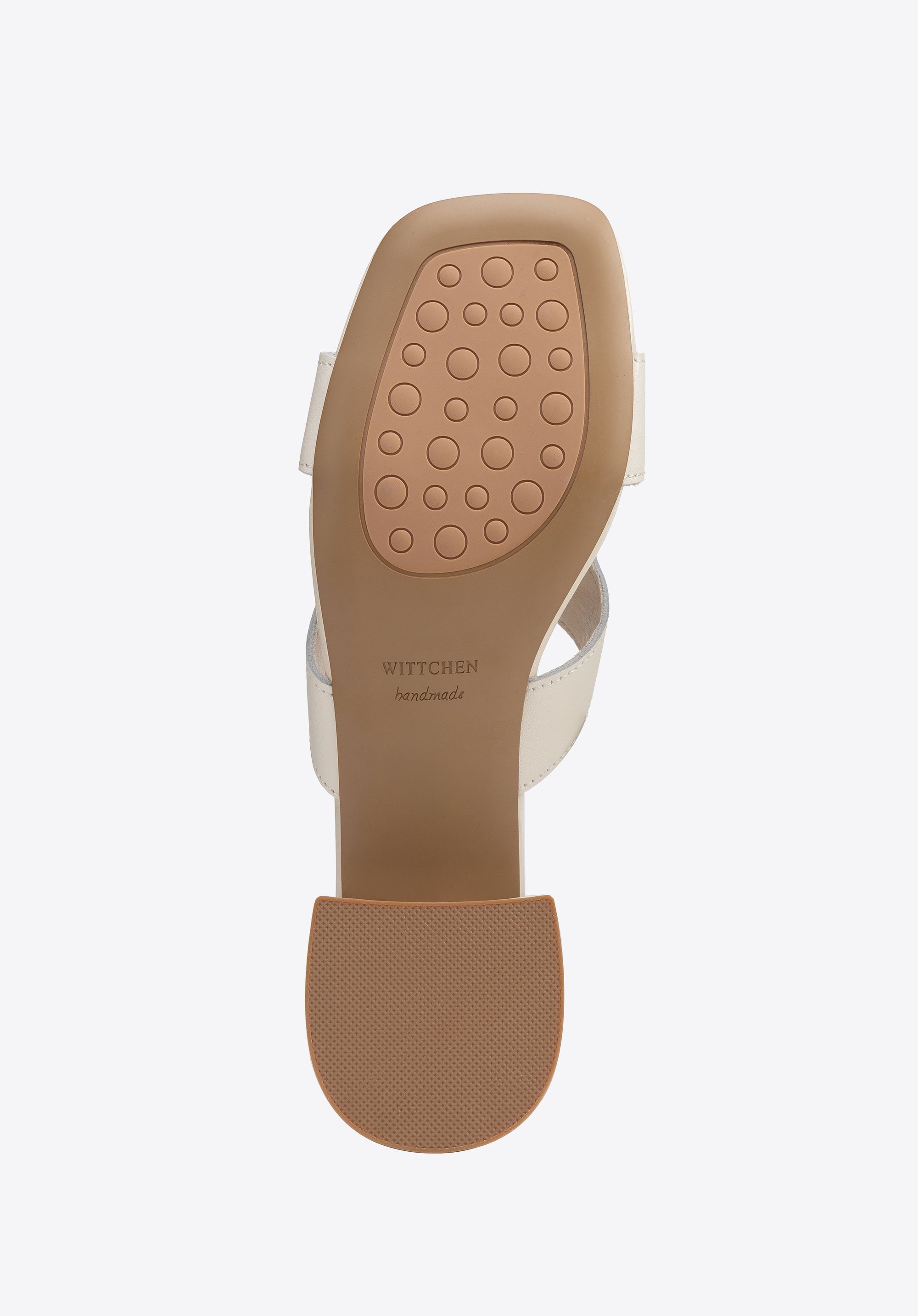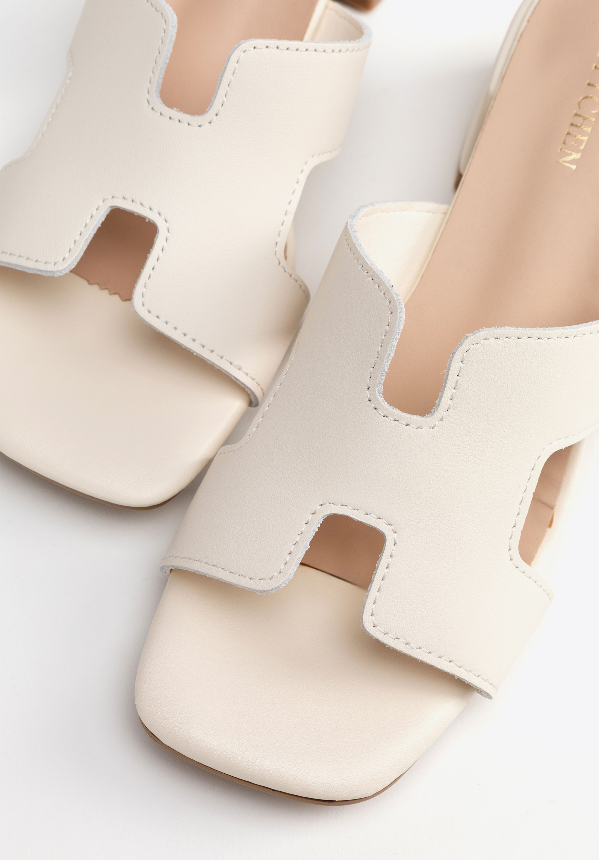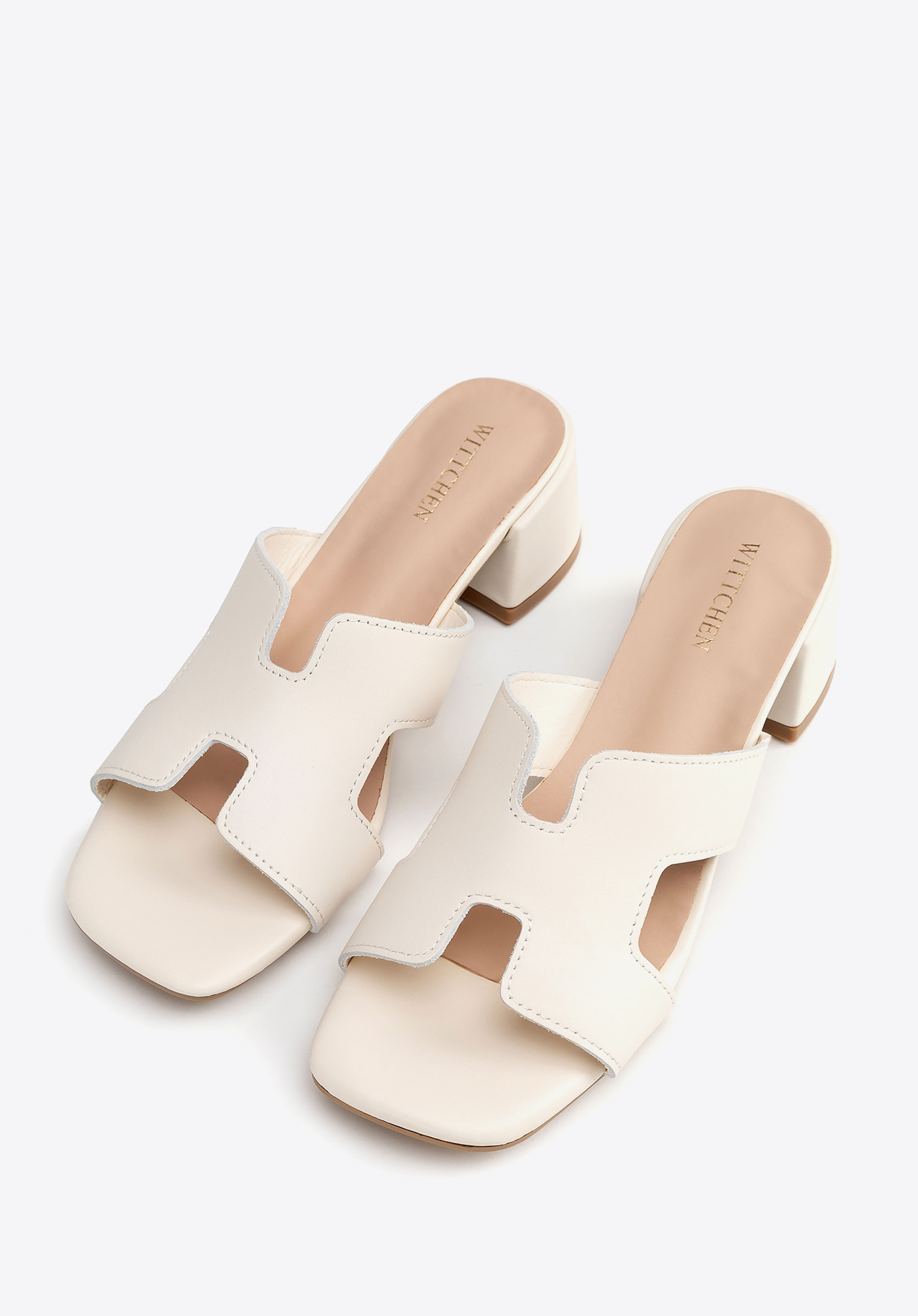 Bőr blokksarkú szandál H alakú kivágással bézs