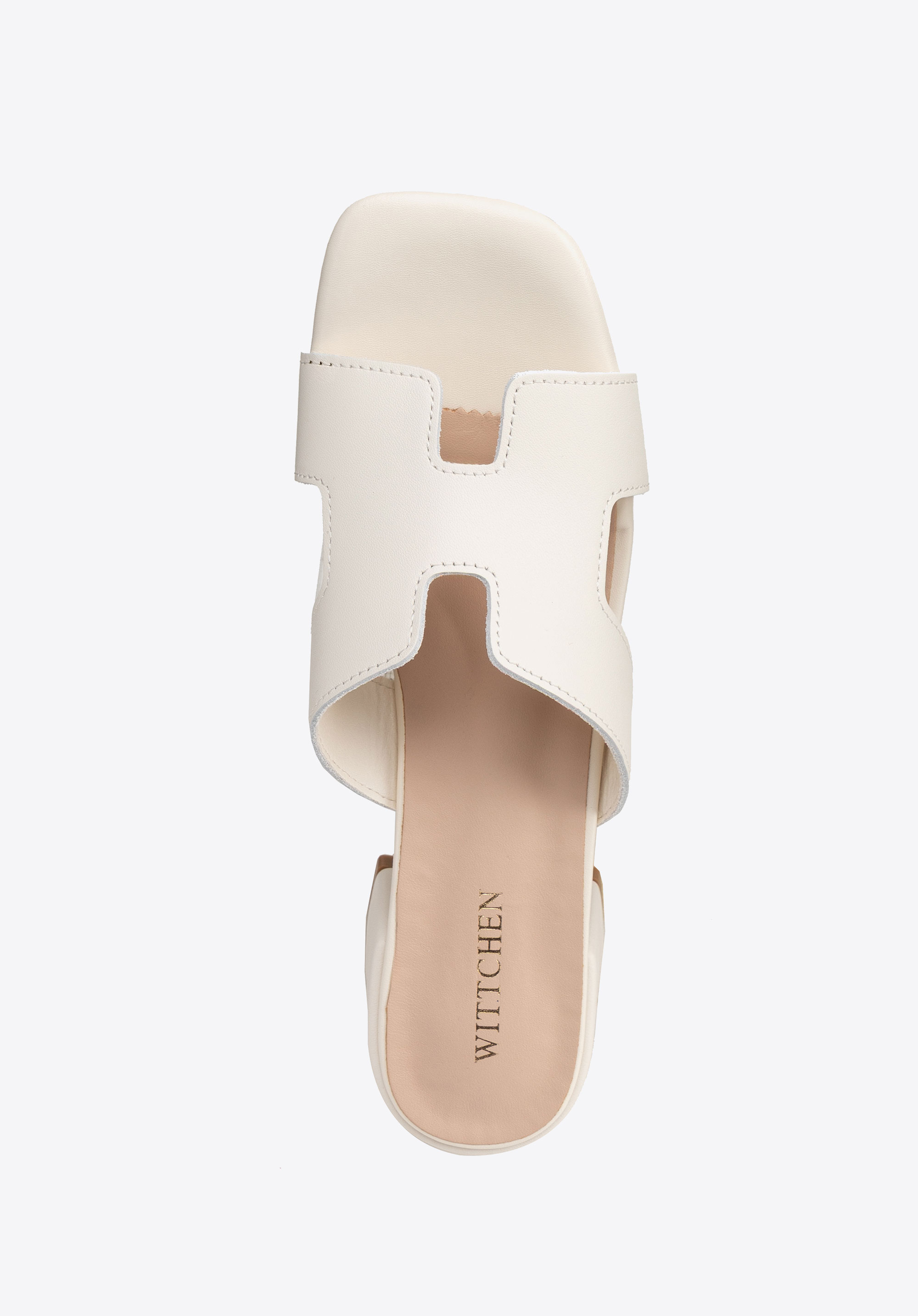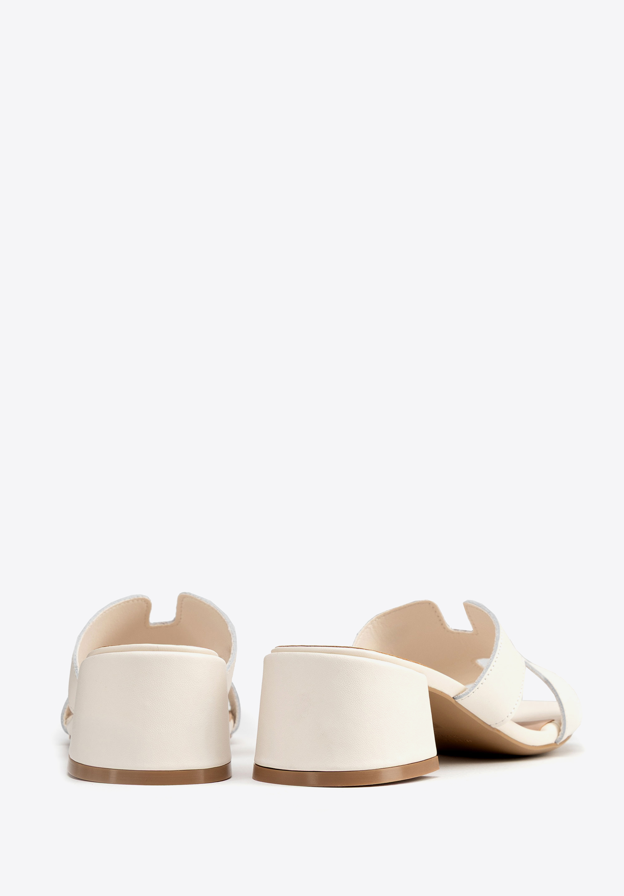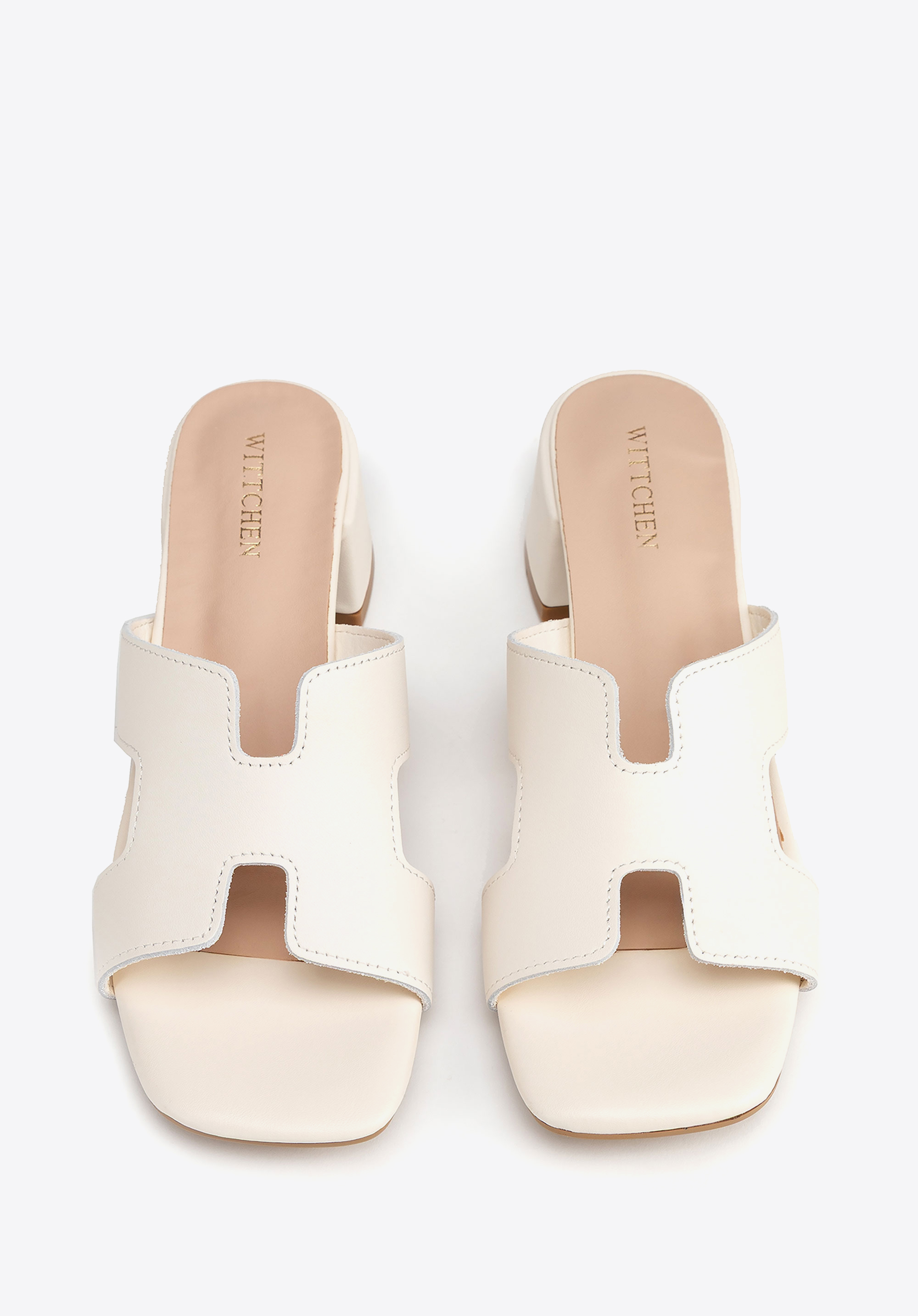 Bőr blokksarkú szandál H alakú kivágással bézs