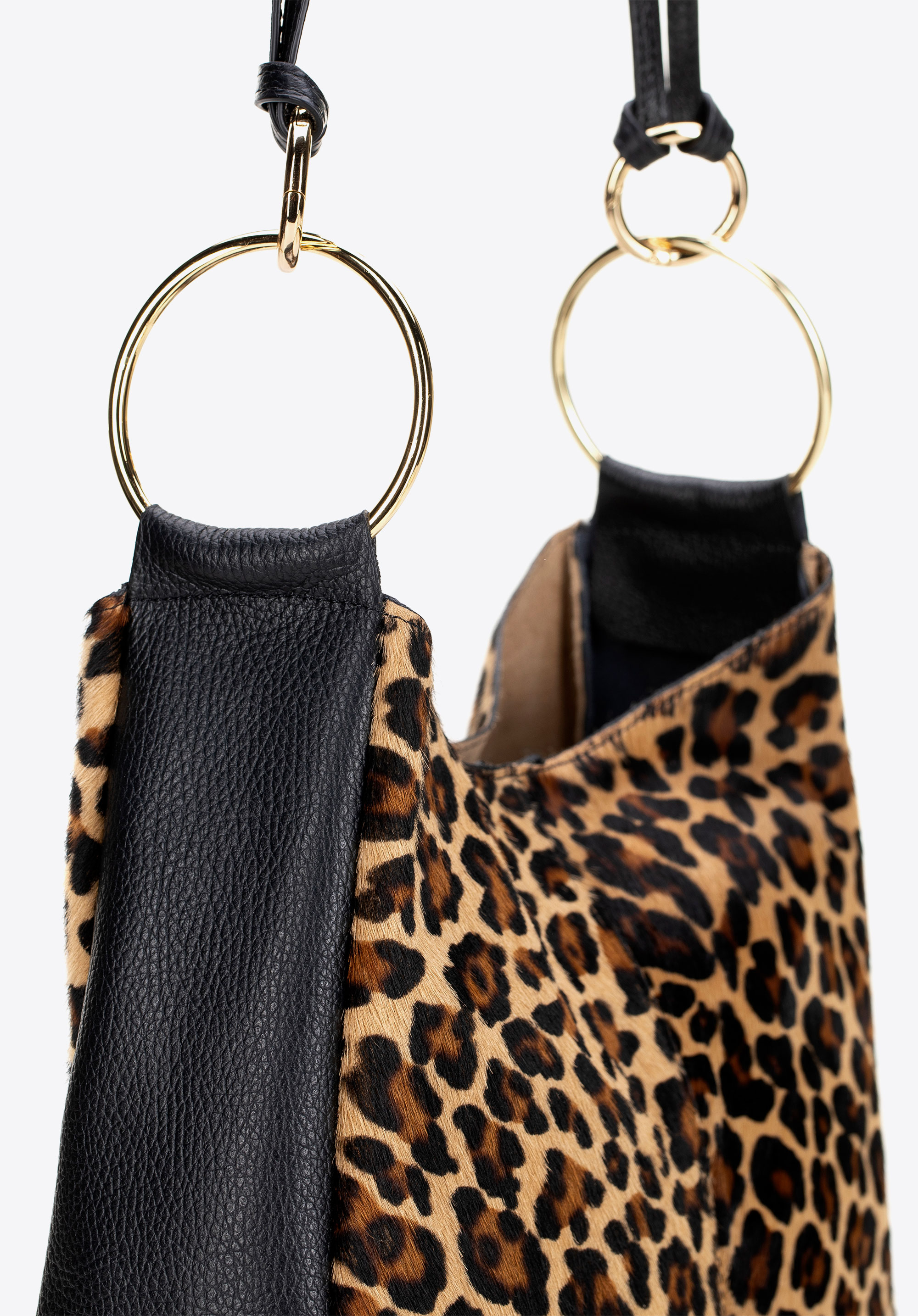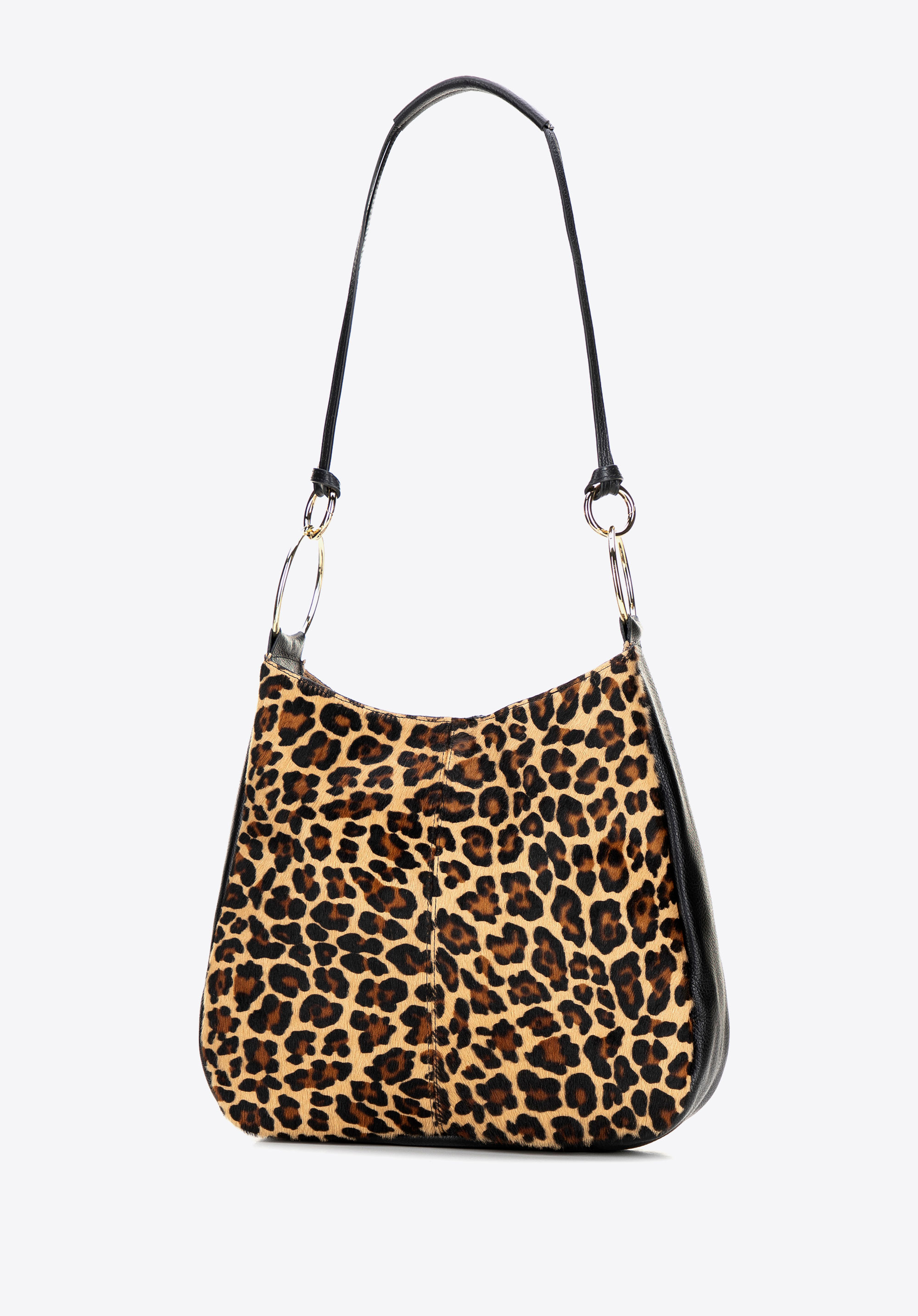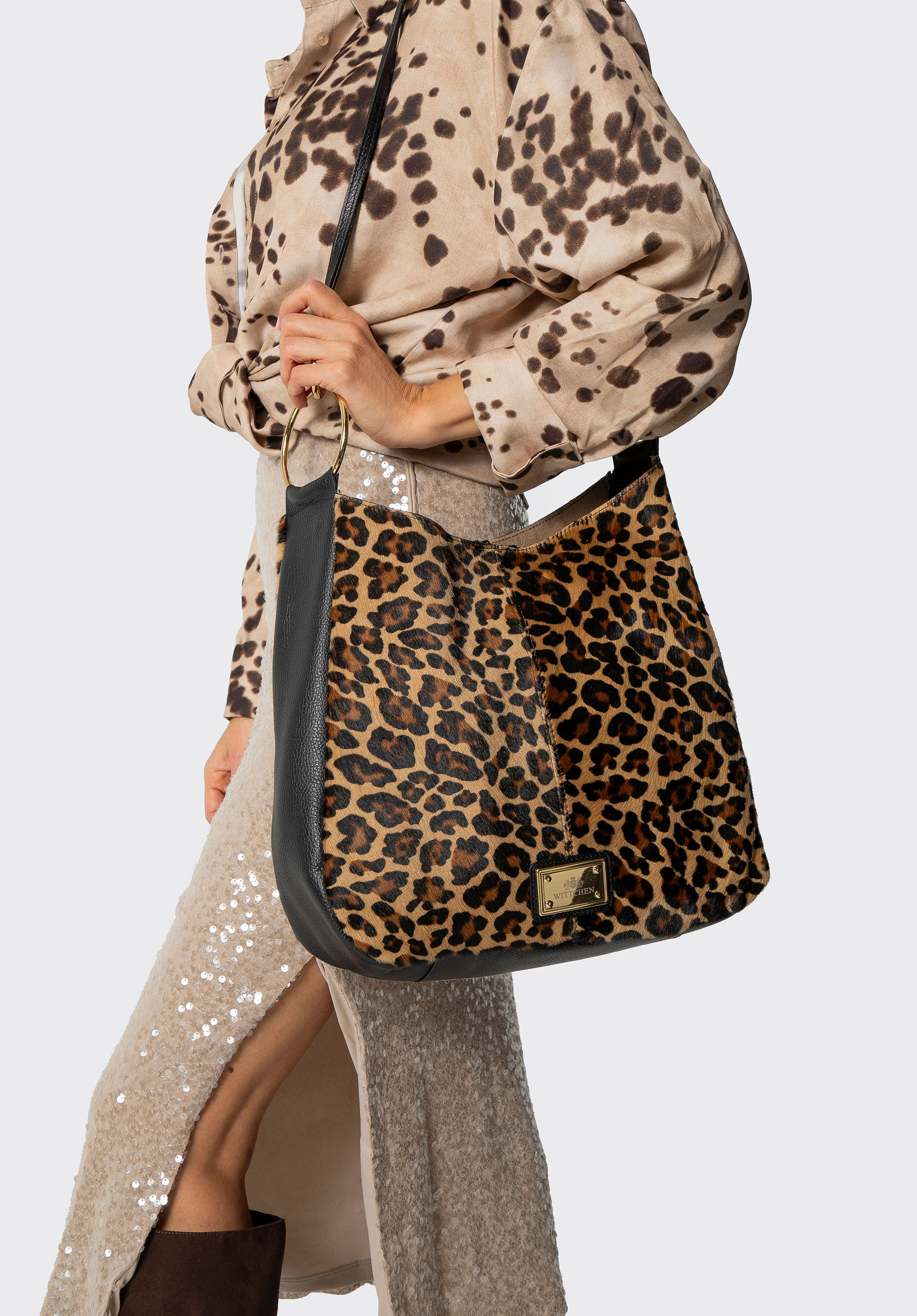 Vigyél egy csipetnyi vad eleganciát a megjelenésedbe! Ez az olasz válltáska, természetes szőrös borjúbőrből készült, puhaságával, finom fényével és állatmintájával nyűgöz le, amely jellegzetes karaktert kölcsönöz neki. A mágneses zár gyors hozzáférést biztosít a táska belsejéhez, míg a levehető, díszes gyűrűkkel ellátott fogantyú lehetővé teszi, hogy a kézitáskát az öltözékedhez vagy az alkalomhoz igazítsd. Az arany részletek kiemelik a luxus kidolgozást és a kifogástalan olasz kézművességet – egy kézitáska, amely magára vonzza a tekinteteket és meghatározza a stílusodat.