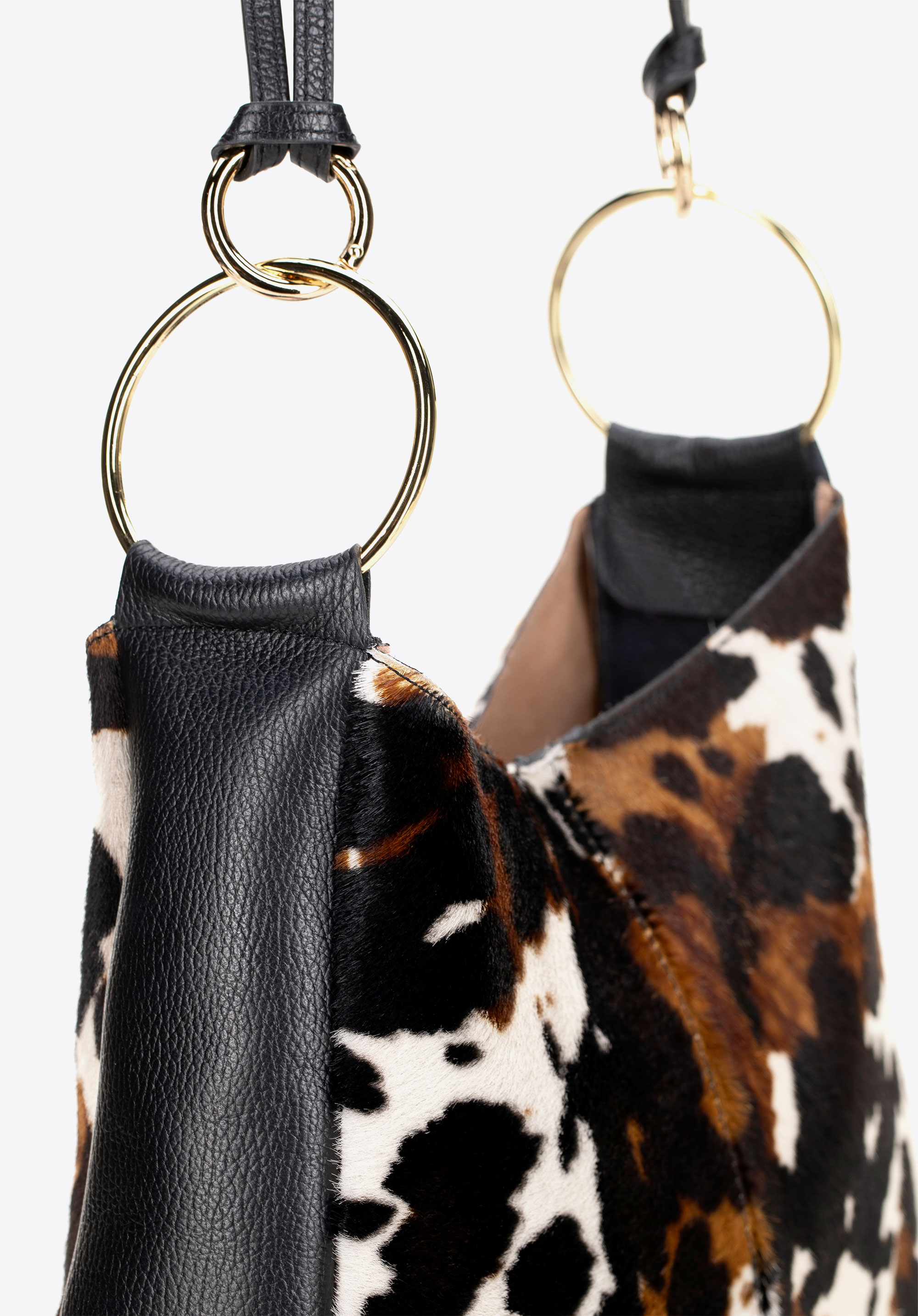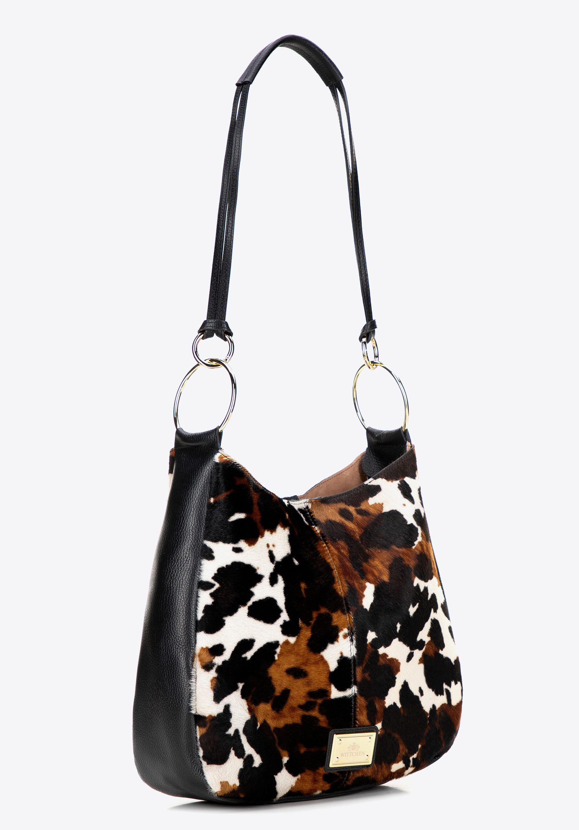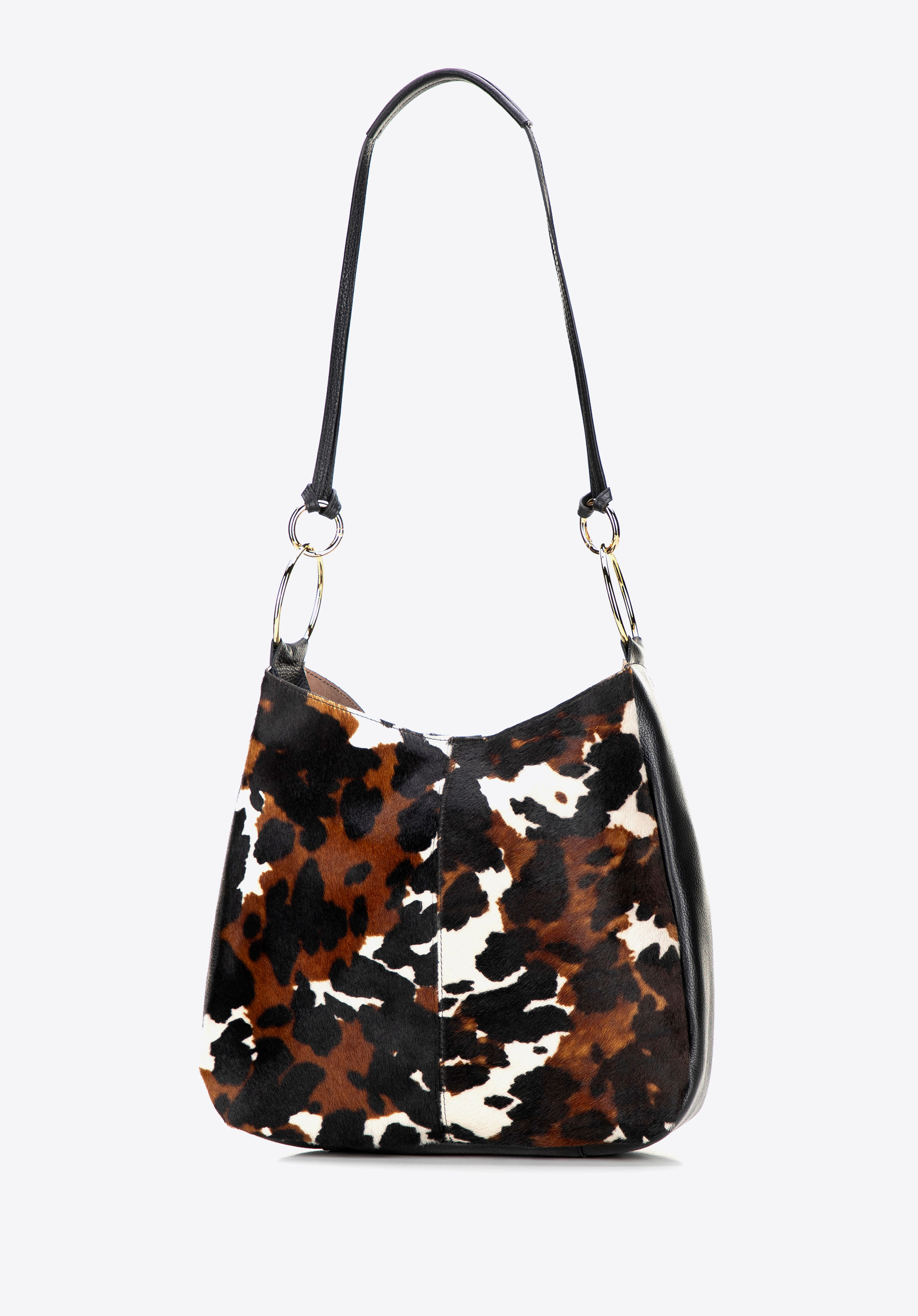 Vigyél egy csipetnyi vad eleganciát a megjelenésedbe! Ez az olasz válltáska, természetes szőrös borjúbőrből készült, puhaságával, finom fényével és állatmintájával nyűgöz le, amely jellegzetes karaktert kölcsönöz neki. A mágneses zár gyors hozzáférést biztosít a táska belsejéhez, míg a levehető, díszes gyűrűkkel ellátott fogantyú lehetővé teszi, hogy a kézitáskát az öltözékedhez vagy az alkalomhoz igazítsd. Az arany részletek kiemelik a luxus kidolgozást és a kifogástalan olasz kézművességet – egy kézitáska, amely magára vonzza a tekinteteket és meghatározza a stílusodat.