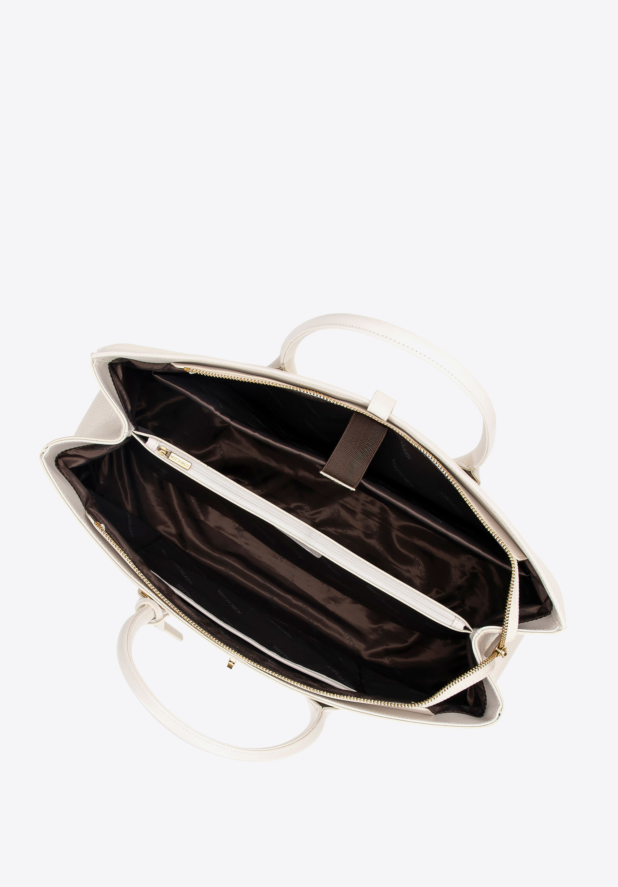 Ez az elegáns, természetes bőrből készült, mikroszálas pánttal ellátott táska az időtlen stílust és a kivételes funkcionalitást ötvözi. Két tágas rekesszel rendelkezik, és az egész cipzárral és csatos pánttal zárható a biztonságos tárolás érdekében. Belül egy cipzáras zseb és egy külön rekesz található az elektronikus eszközök számára (max. 23 × 33 cm, 15"). Tökéletes választás azoknak, akik tágas és elegáns hétköznapi táskát keresnek.