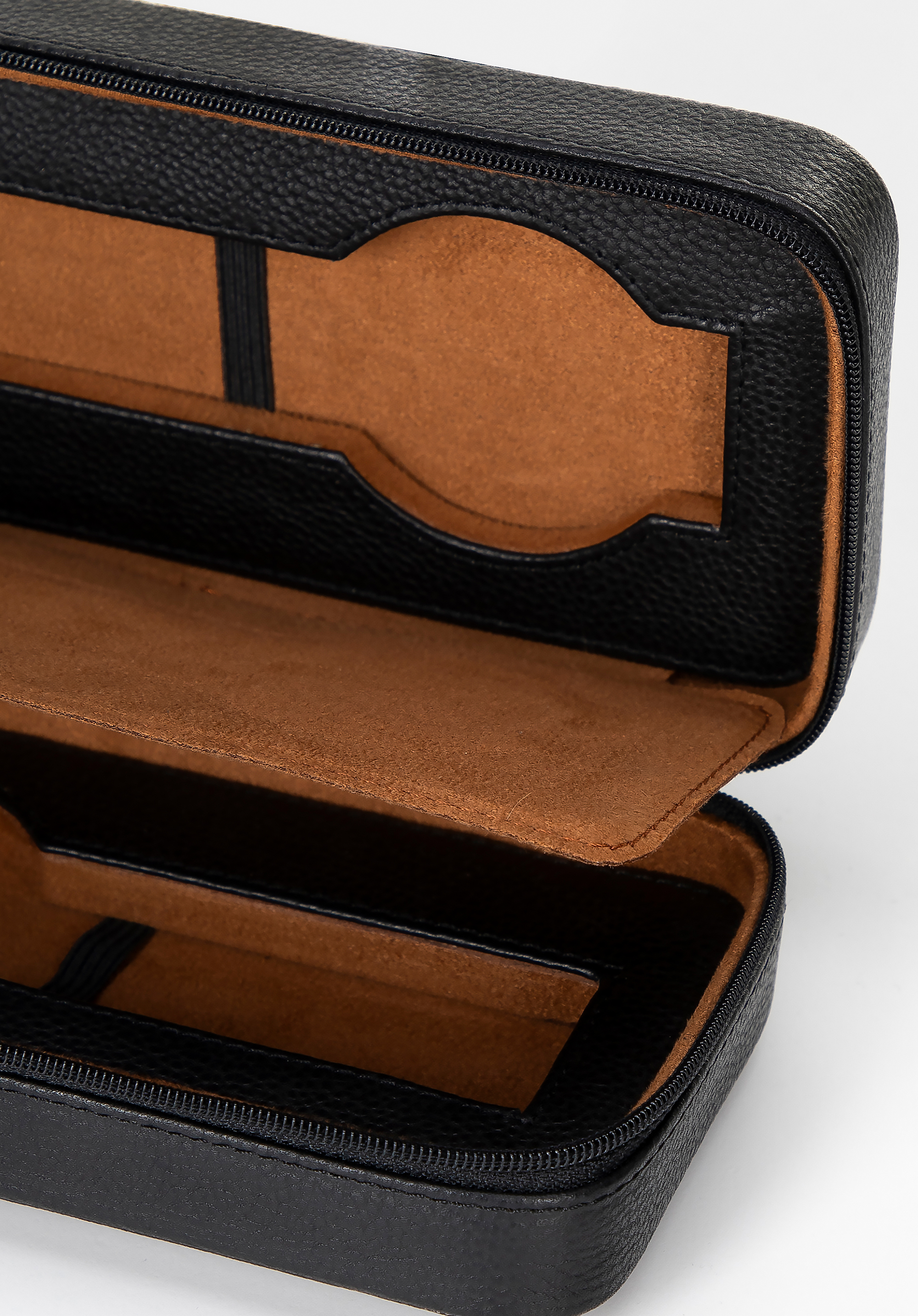 Egyedülálló módot keresel kedvenc óráid tárolására? Ez az elegáns, természetes bőrből készült óratok ötvözi a funkcionalitást a kifinomult dizájnnal. Az elülső varrással ellátott steppelt textúra karaktert kölcsönöz neki, míg a finom márkalogó kiemeli luxus stílusát. A puha bőrrel bevont belső rész gondoskodik arról, hogy óráid biztonságban, védve legyenek a karcolásoktól. A mozgatható elválasztó távol tartja egymástól az órákat. A tok cipzárral záródik, így biztos lehetsz benne, hogy óráid mindig jól védettek – otthon és útközben egyaránt.