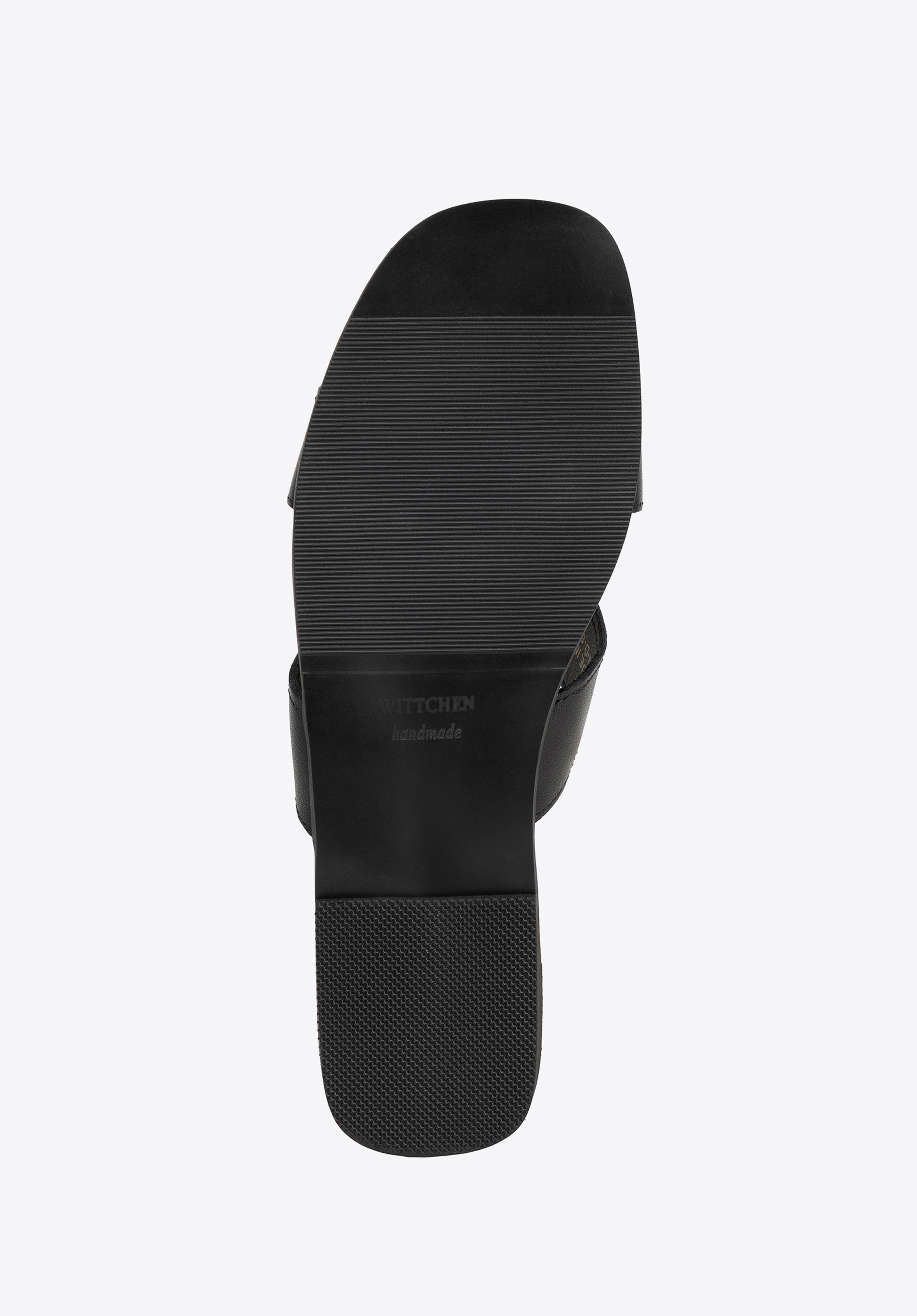 Geometrikus elegancia: Bőr papucs H alakú kivágással