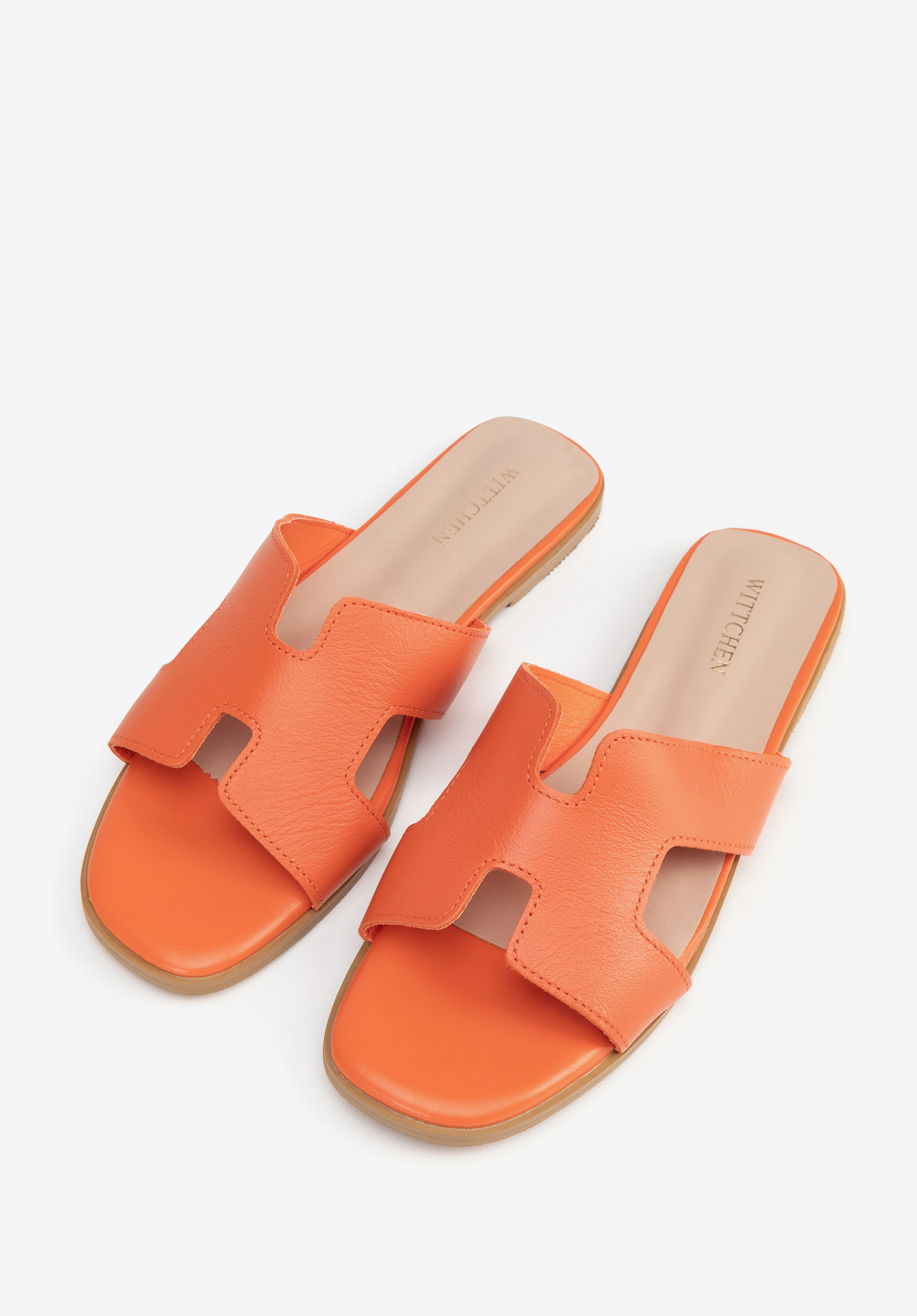 Geometrikus elegancia: Bőr papucs H alakú kivágással