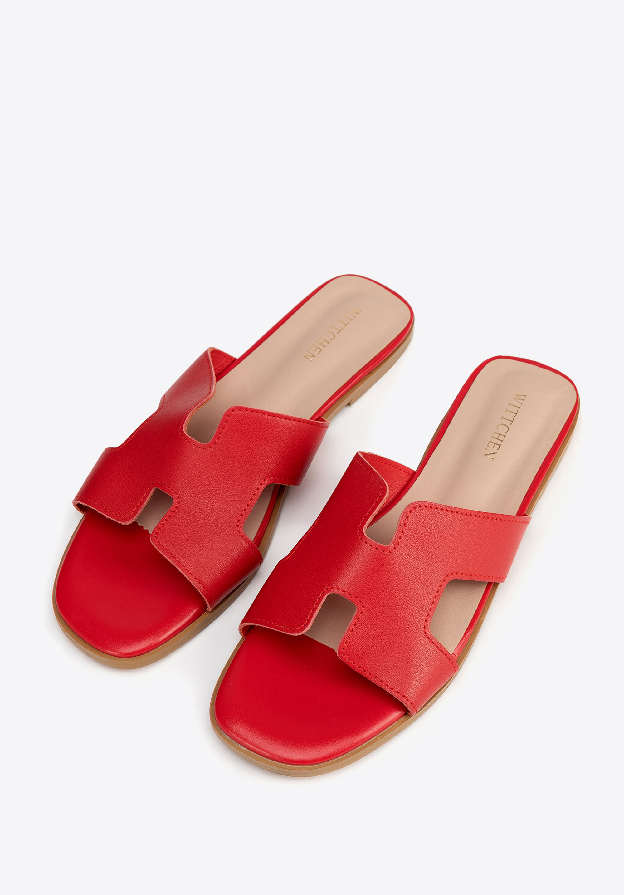 Geometrikus elegancia: Bőr papucs H alakú kivágással