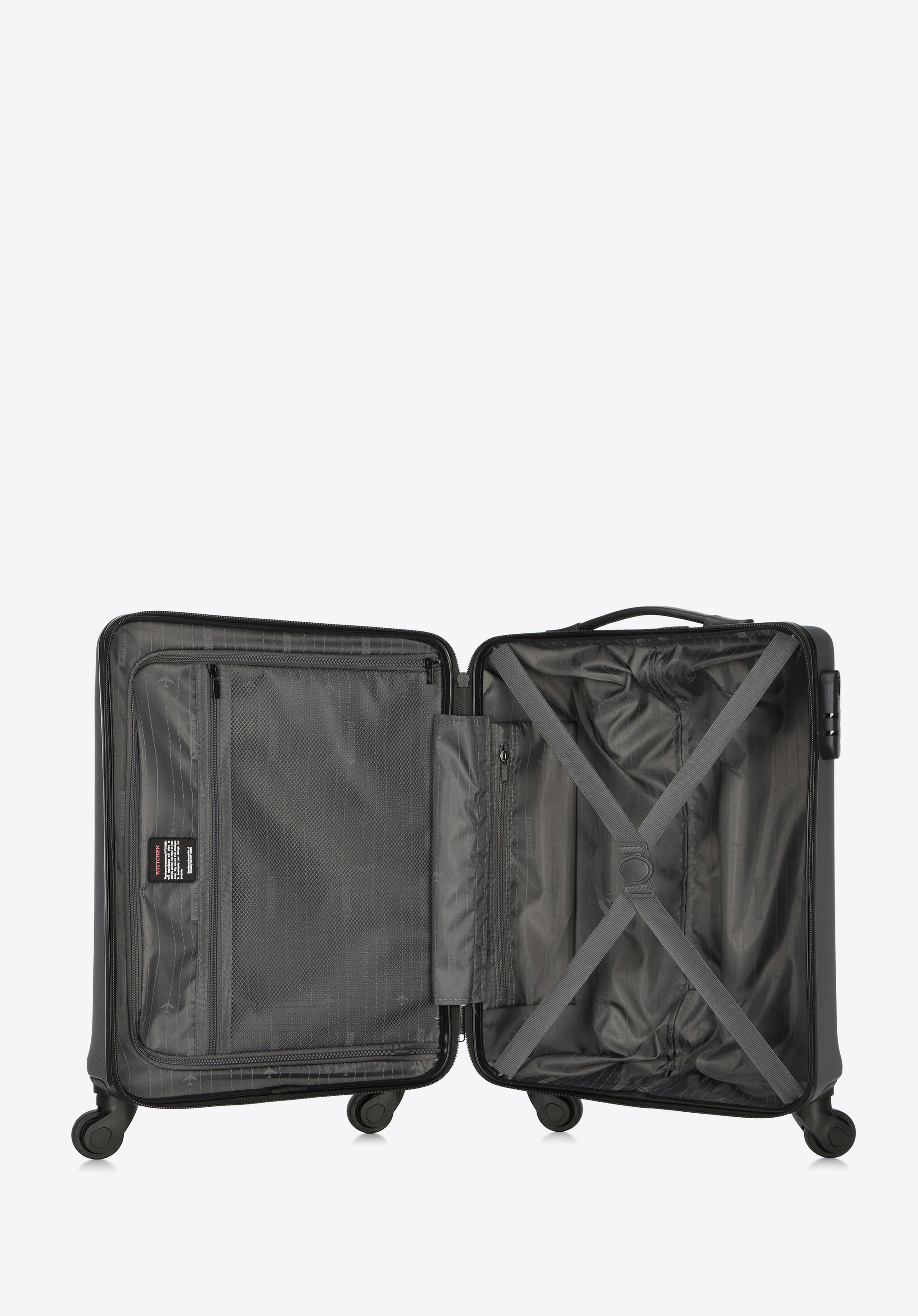 Ez a kis ABS- ből készült bőrönd , texturált felülettel és azonosító címkével , tökéletes útra kész készlet az utazások szerelmeseinek. A kialakítás kombinált zárral, alumíniummal, visszahúzható teleszkópos fogantyúval és gumi markolattal rendelkezik a könnyű kezelés érdekében. Függőleges dombornyomással rendelkezik, amely egyedi karaktert kölcsönöz a bőröndnek. A bőrönd megfelel a legtöbb fapados légitársaság kézipoggyász követelményeinek.