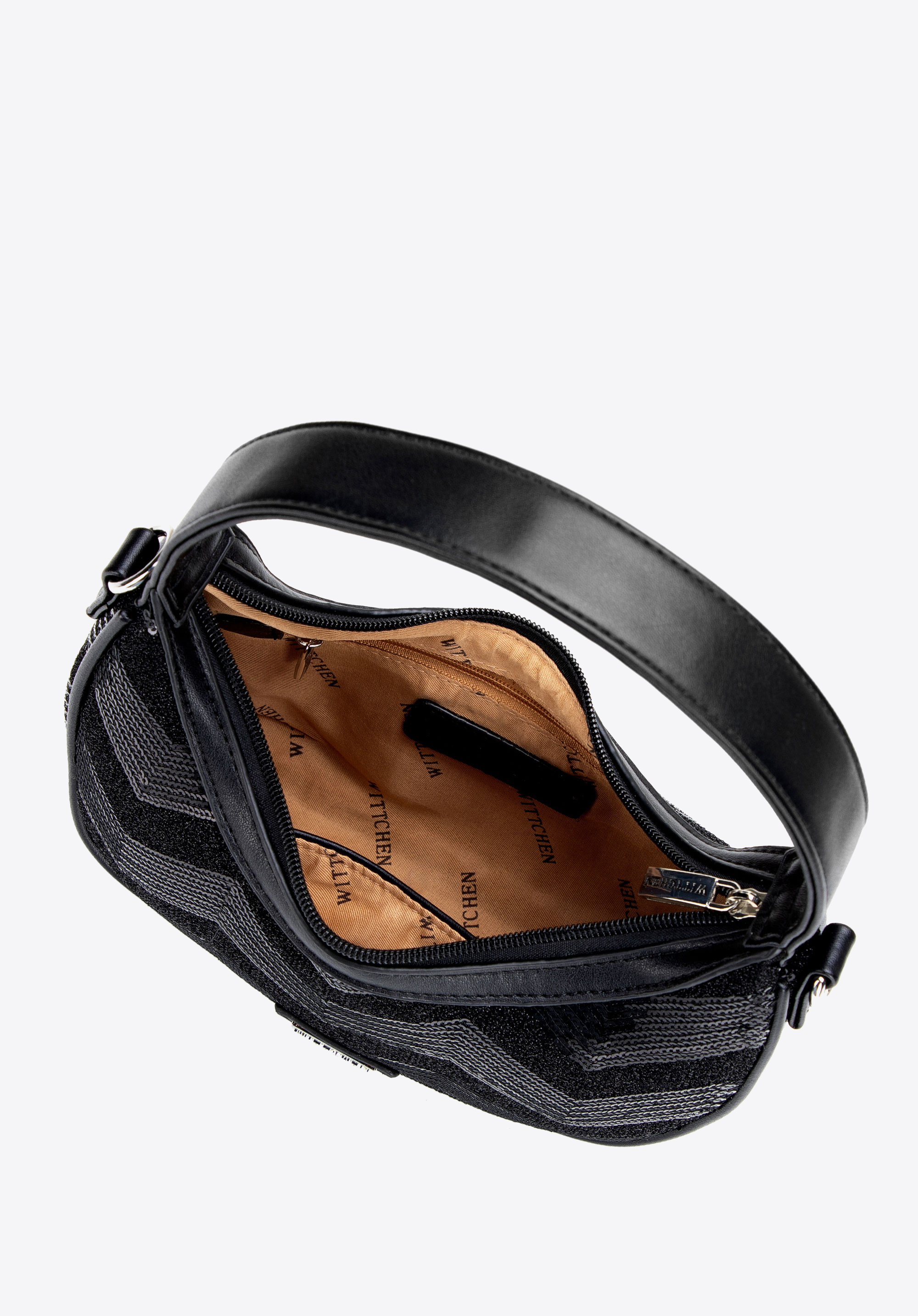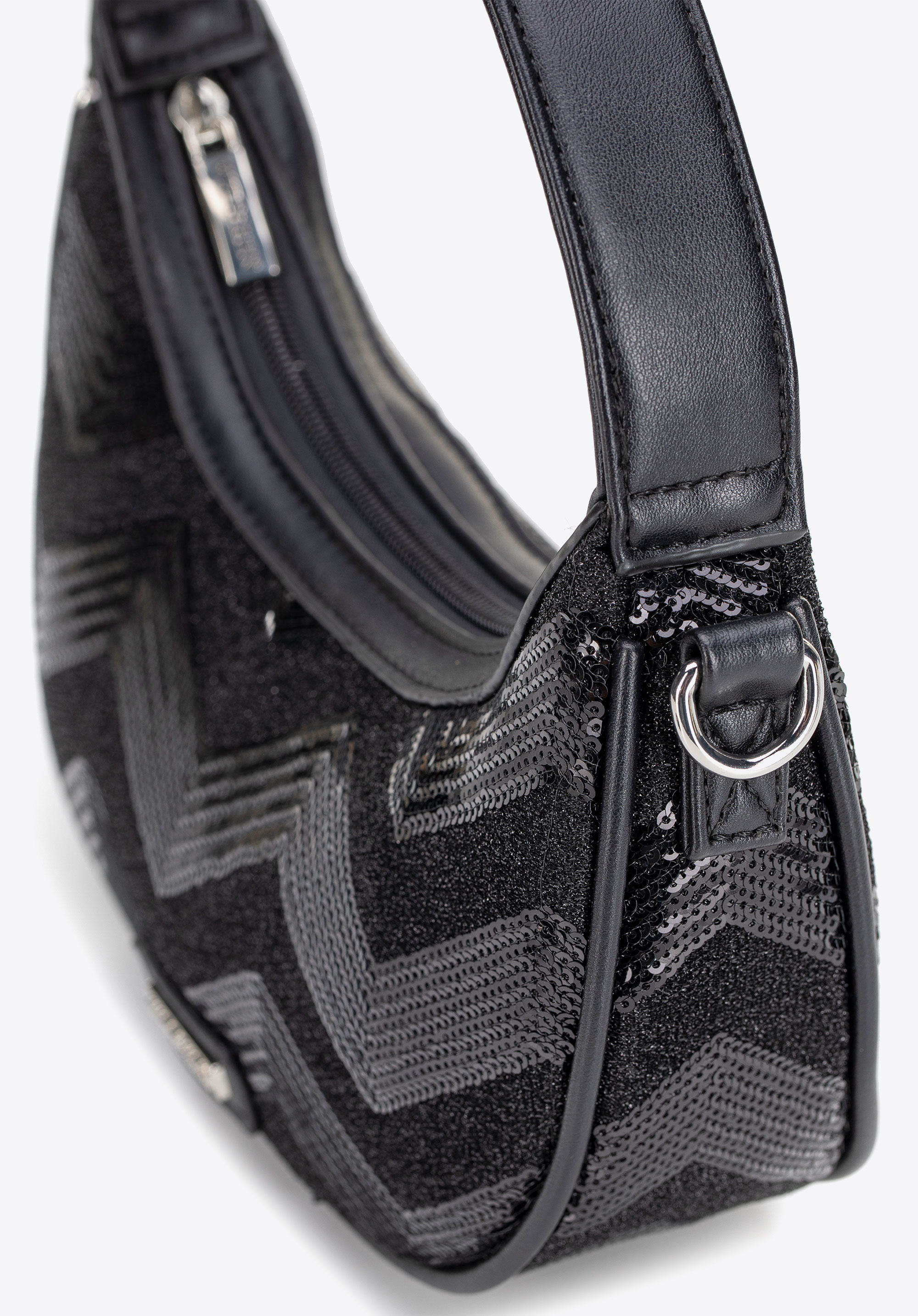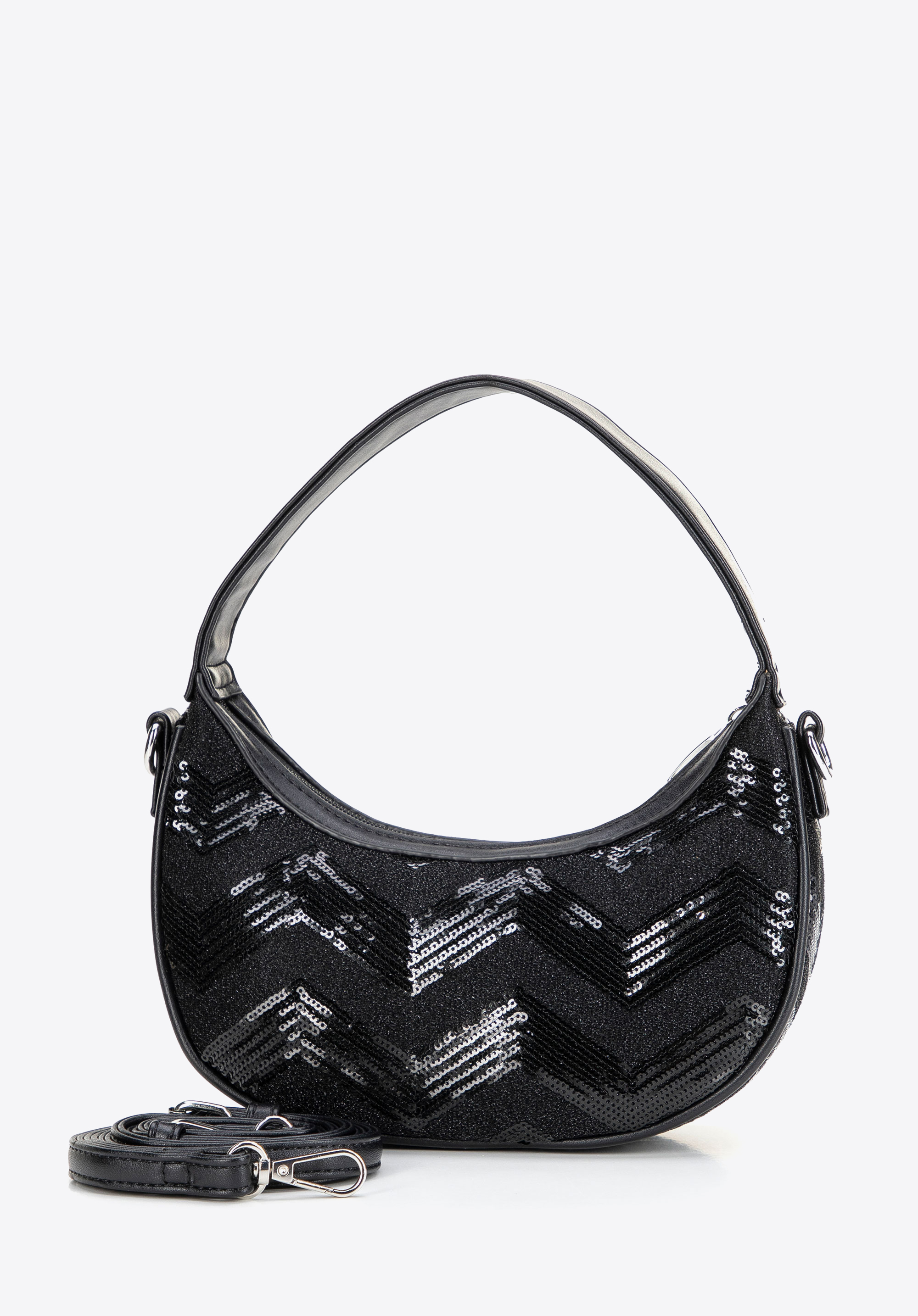 Stílusos, funkcionális és csillogó – ez a félhold alakú, flitteres kézitáska minden alkalomra a kedvenc kiegészítőd lesz.