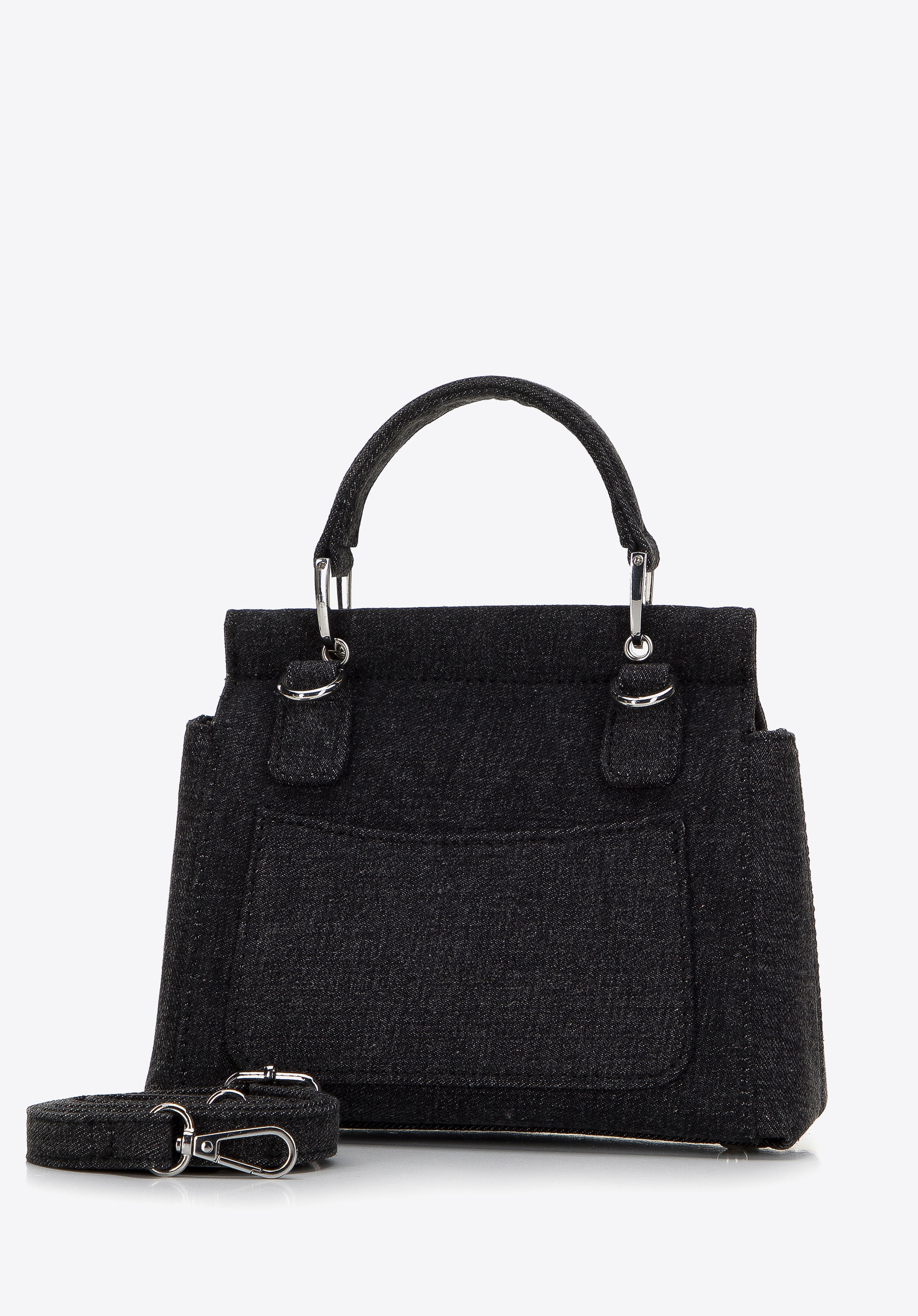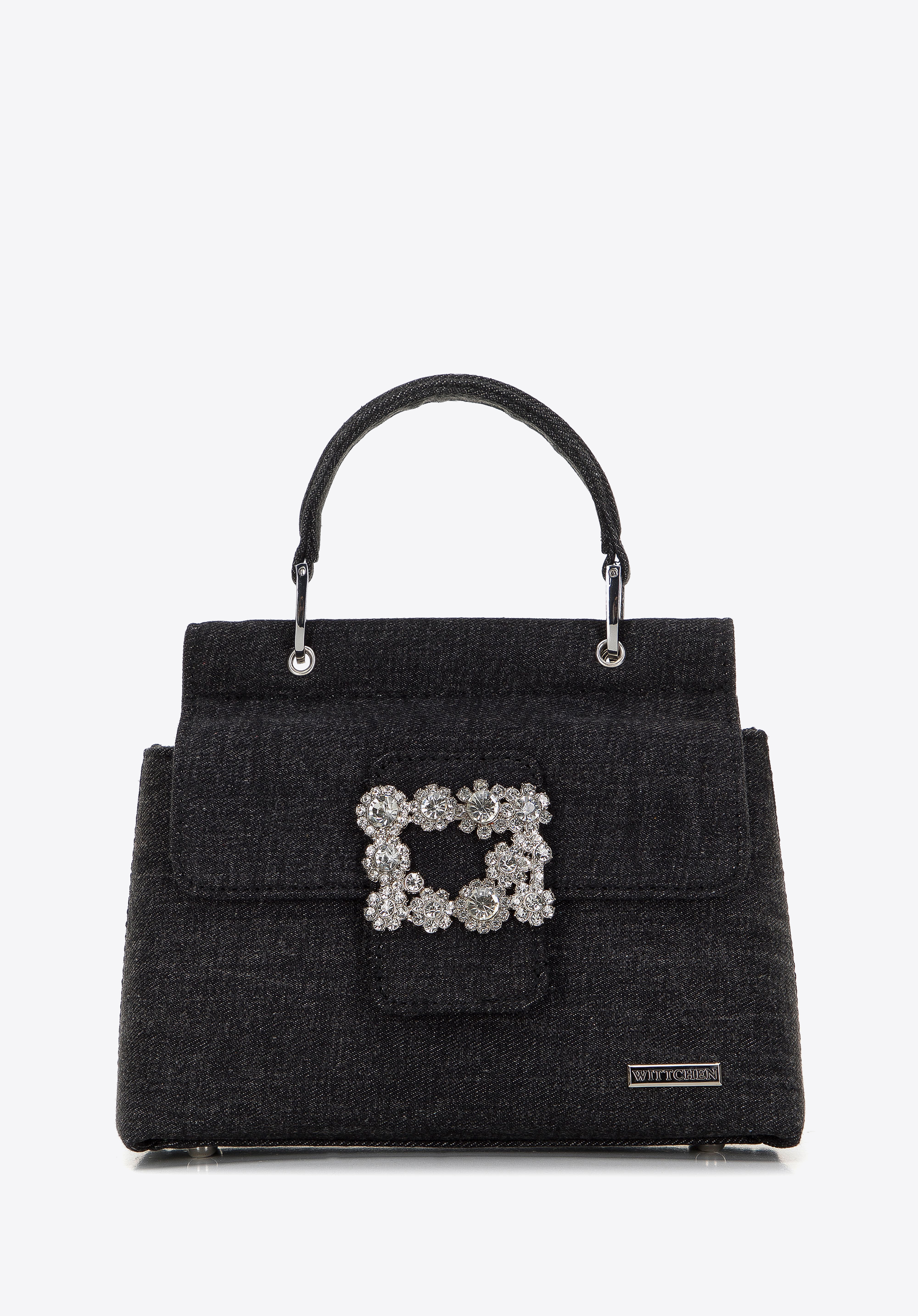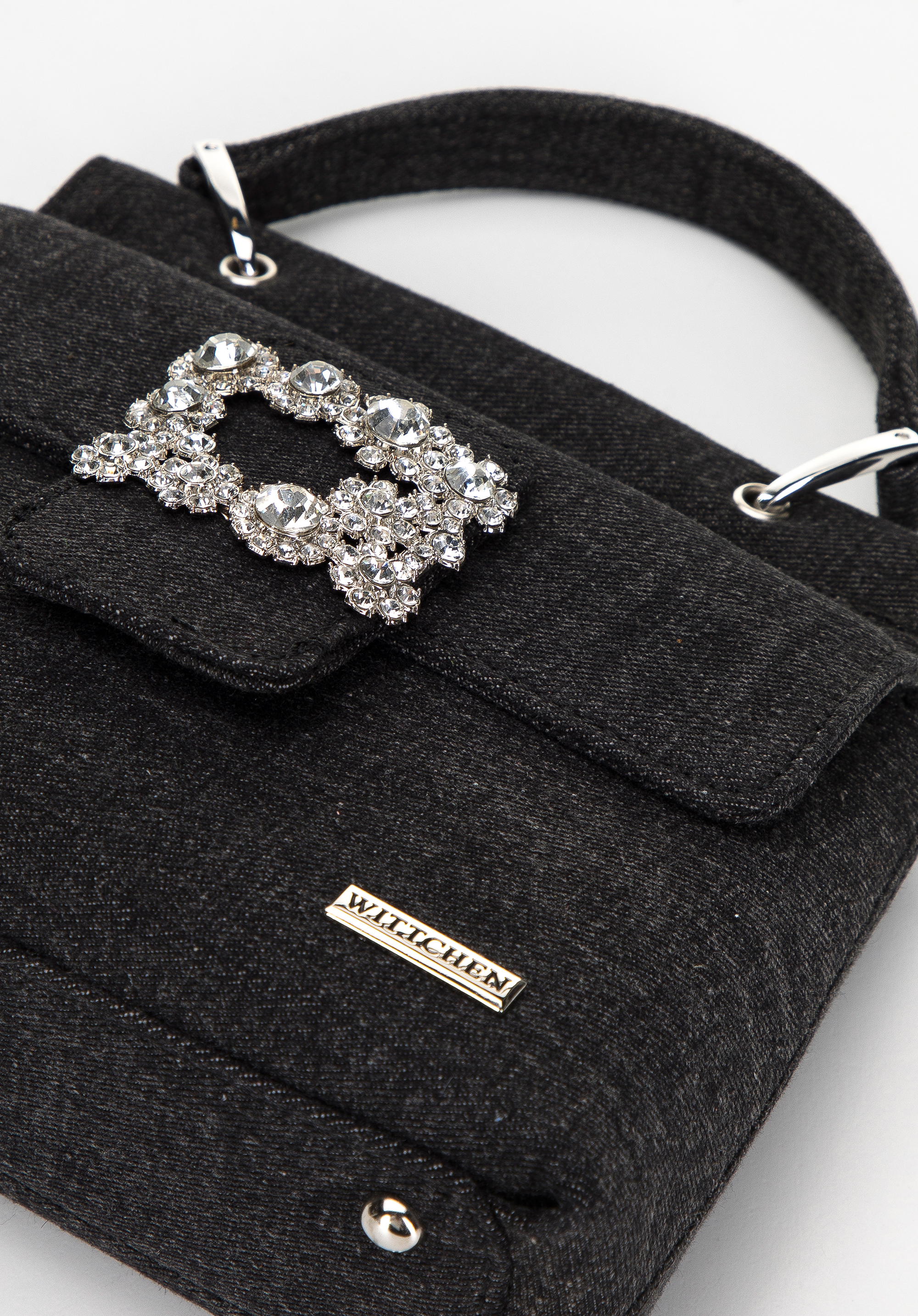 Ez a stílusos kézitáska több tekintetet is rád fog vonzni. Kicsi és eredeti formájú, így változatossá teszi bármelyik öltözéked: legyen az egy nyári miniruha vagy egy őszi trencskabát és csizma. A farmer modellt egy fényes, kristályokkal kirakott geometrikus csat egészíti ki. Belsejében elfér egy telefon, tárca, kézápoló és még néhány apróság - ideális egy sétához, barátokkal való kiruccanáshoz vagy a moziba. A fényes csattal ellátott farmer mini táska minden divatrajongó számára remek választás.