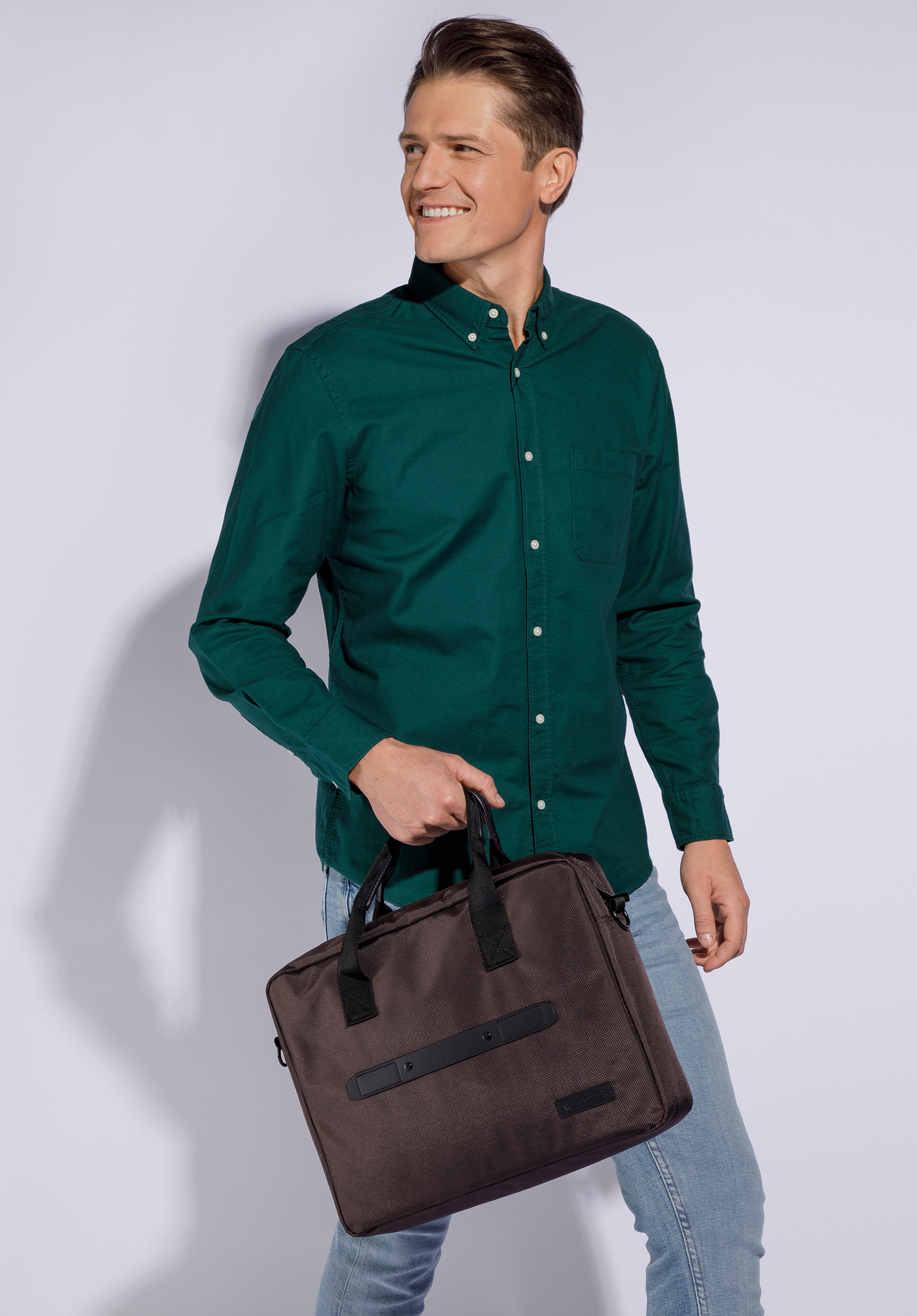 Közepes méretű laptoptáska a kényelmet értékelő férfiak számára. Klasszikus modell, amely tökéletesen illeszkedik a városi élet ritmusába, és nem foglal sok helyet. A fő rekesz cipzárral záródik, és szivaccsal párnázott, hogy megvédje a kisebb mechanikai sérülésektől. Ezen kívül belül három zseb és egy tépőzárral zárható rekesz található. A táskához dombornyomott logóval ellátott pánt tartozik. Ennek köszönhetően teljessé teszi városi megjelenését. Tökéletes ajándék egy férfinak, aki nagy jelentőséget tulajdonít a termékek minőségének.