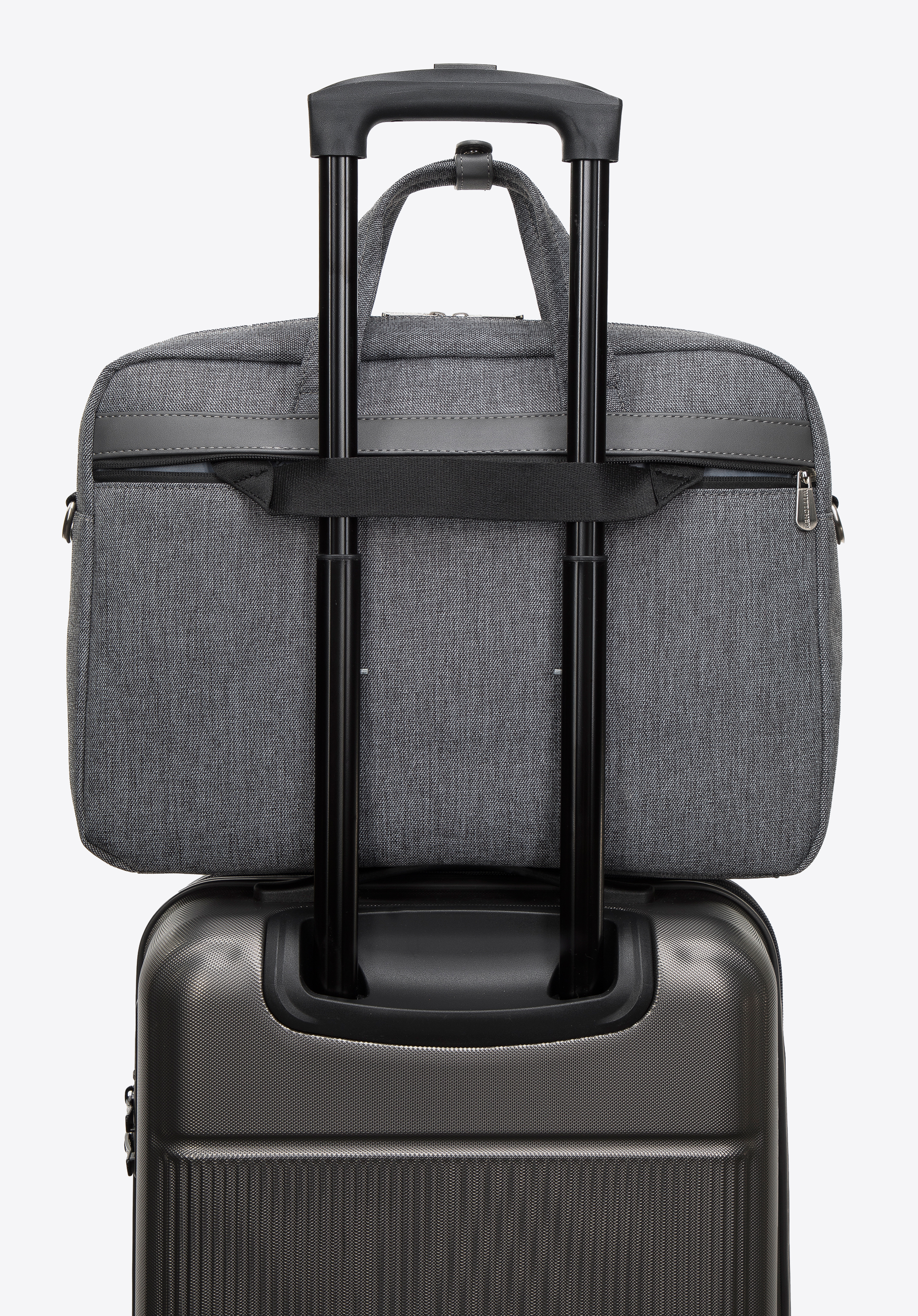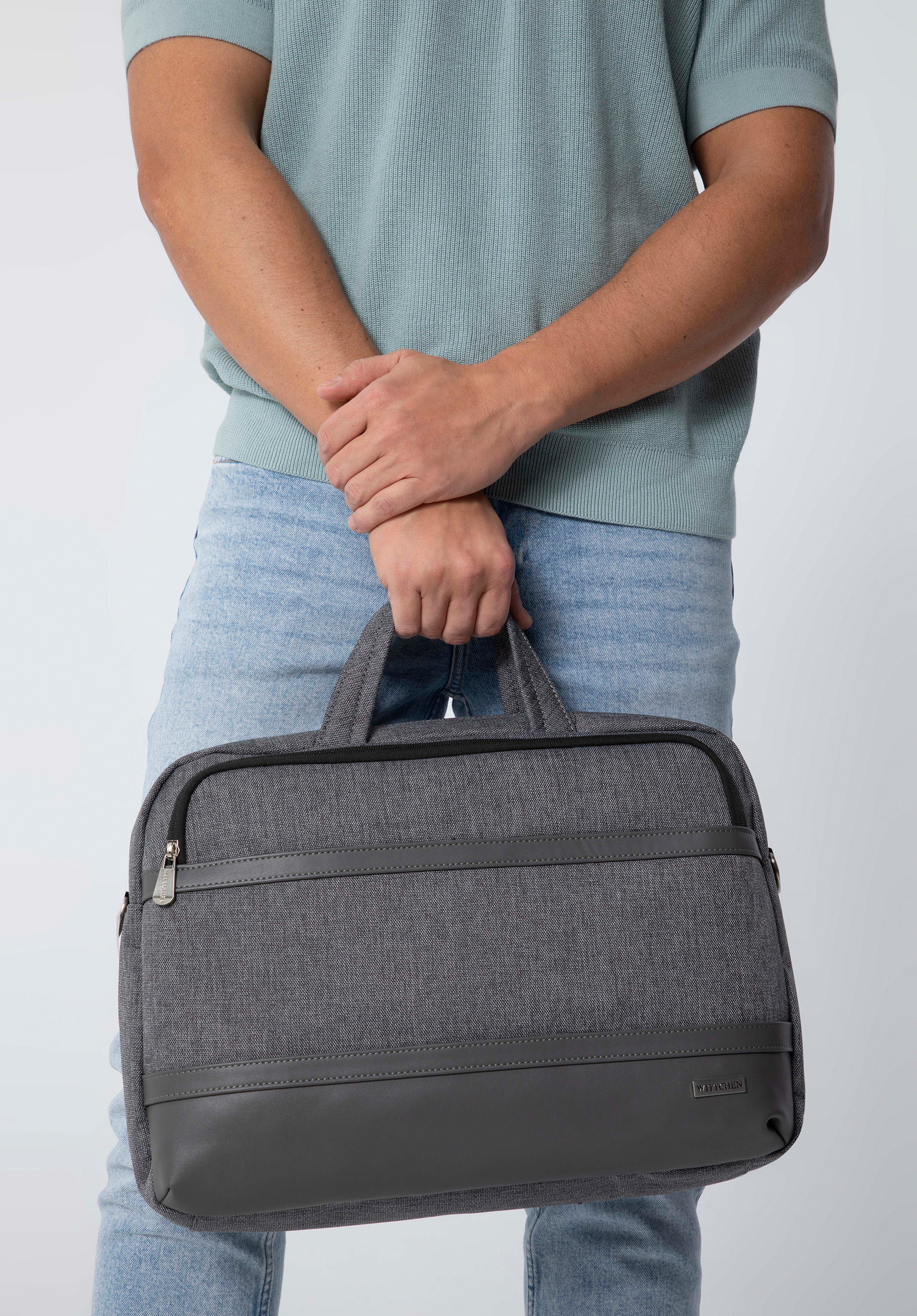 Ez a stílusos és praktikus laptop táska remek választás munkába és az után is. Tartós poliészterből készült, amelyet kiváló minőségű műbőrből készült szegélyek egészítenek ki. Kézben hordhatod, vagy az állítható pántot felcsatolva átvetheted a válladon. Belsejében egy puhán párnázott zseb található egy elektronikus eszköz számára melynek maximális mérete: 37 cm x 27 cm. Ezenkívül A4-es dokumentumok és kisebb elektronikai eszközök is elférnek benne. A testoldali zsebben biztonságosan tárolhatók például a fontos dokumentumok. A férfi laptop táska műbőr díszítéssel egy olyan mindennapi kiegészítő, amely több évszakon át hasznos lesz.