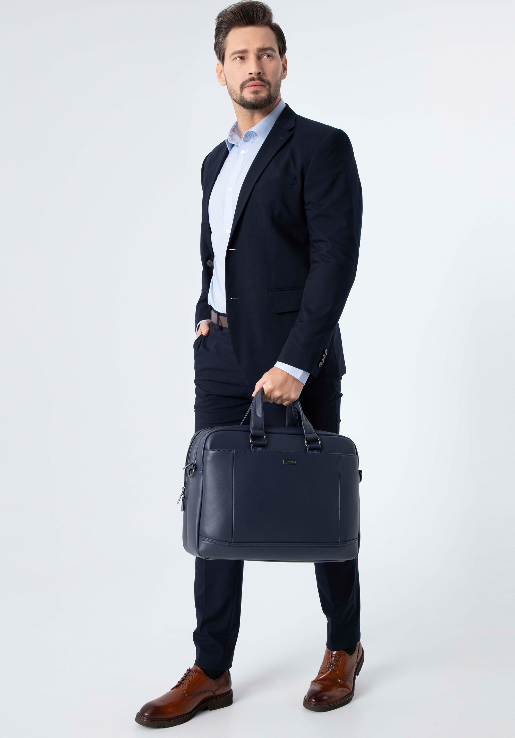 Ez a nagyméretű férfi táska praktikus és stílusos kiegészítő minden férfi számára. Kellemes tapintású műbőrből készült. Két rekeszének köszönhetően könnyedén rendet tarthatsz benne: az egyikben egy puhán párnázott zseb van egy elektronikus eszköz számára, max: 37 cm x 27 cm, míg a másikban elfér egy naptár, kisebb elektronikai eszközök és apró tárgyak. Az elülső és hátsó külső zsebekben könnyen tárolhatod azokat a dolgokat, amelyekhez nap, mint nap hozzá szeretnél férni. A férfi 15,6” méretű, kétrekeszes, műbőrből készült, kétrekeszes laptop táska kiváló választás a napi ingázáshoz és egy rövid üzleti útra is.
