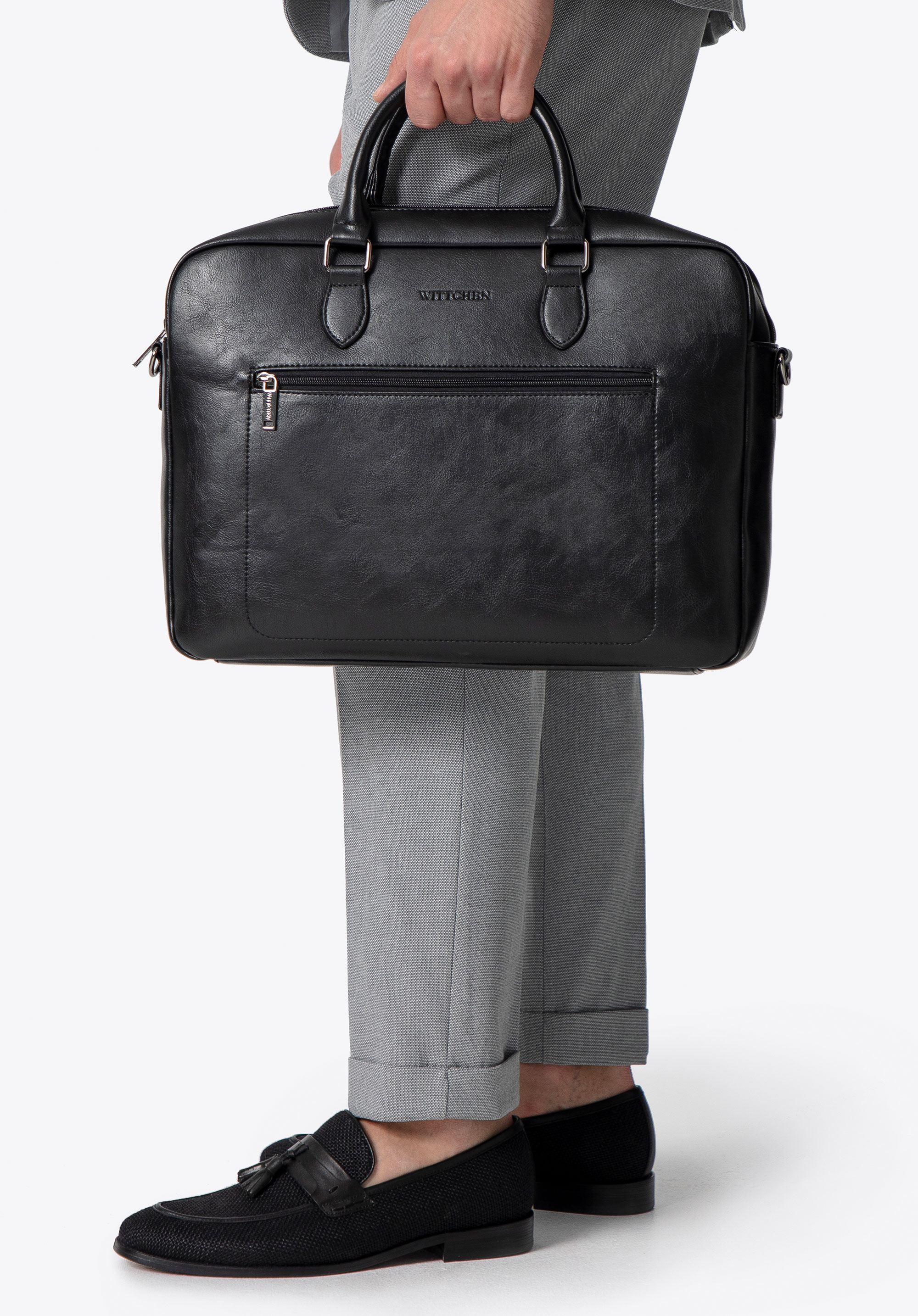Férfi 16”-os laptoptáska ökobőrből fekete