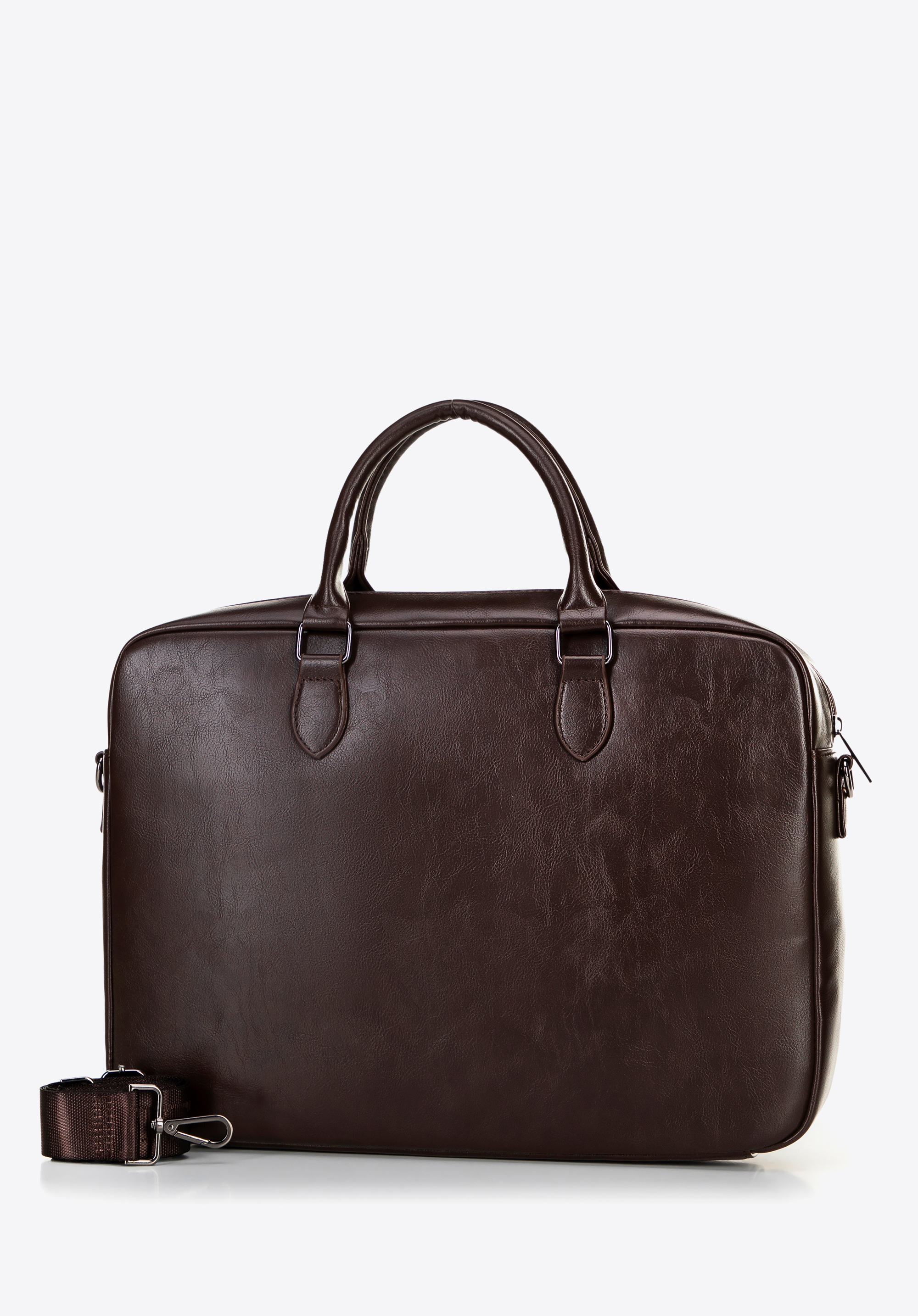 Elegáns, 16"-os laptoptáskánk a funkcionalitást a kifinomultsággal ötvözi. Ökobőrből készült, cipzárral rögzítve hatékonyan védi készülékét. Két fogantyúval és levehető, állítható pánttal ellátott, kézben vagy vállon is hordható. A táska elején egy cipzáras zseb található, míg a belsejében három 2 × 7 cipzáras laptop található. rekesz biztosítja, hogy készüléke biztonságosan a helyén maradjon.